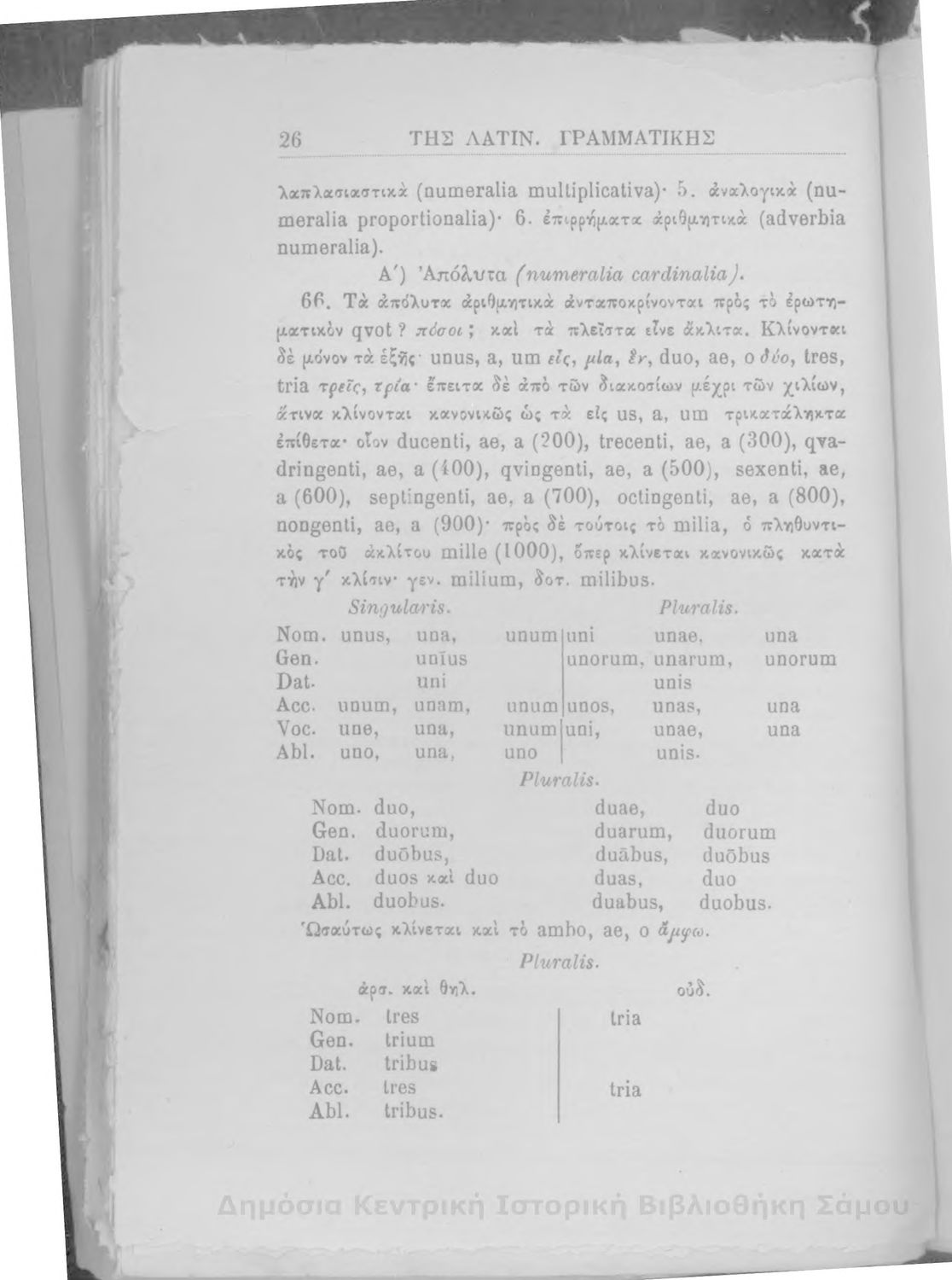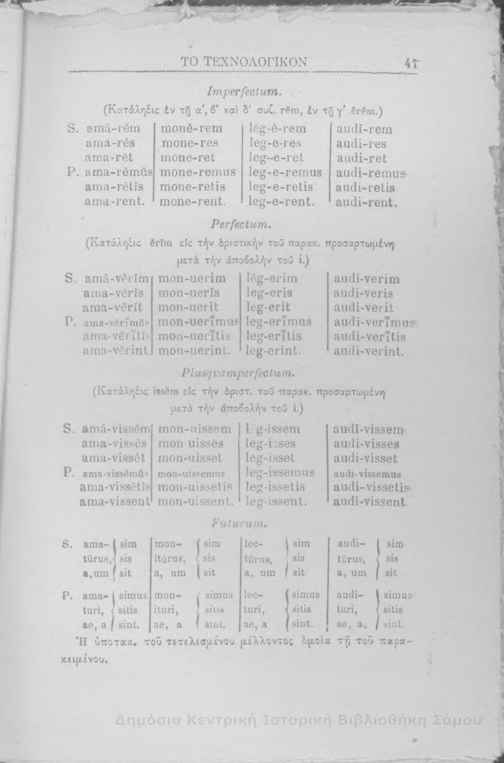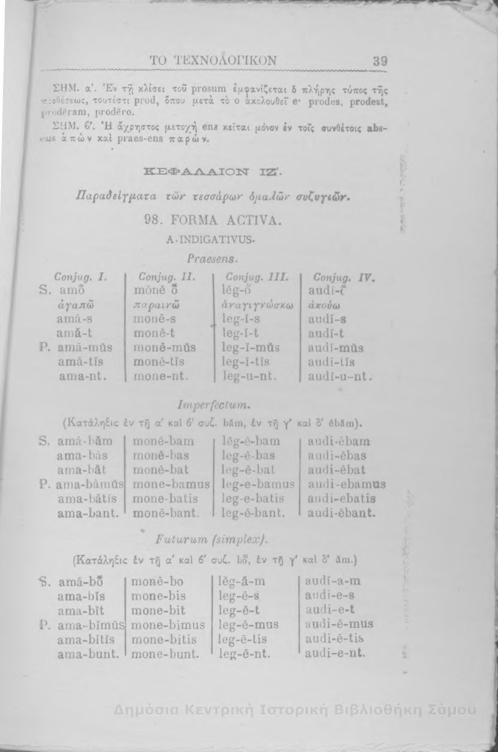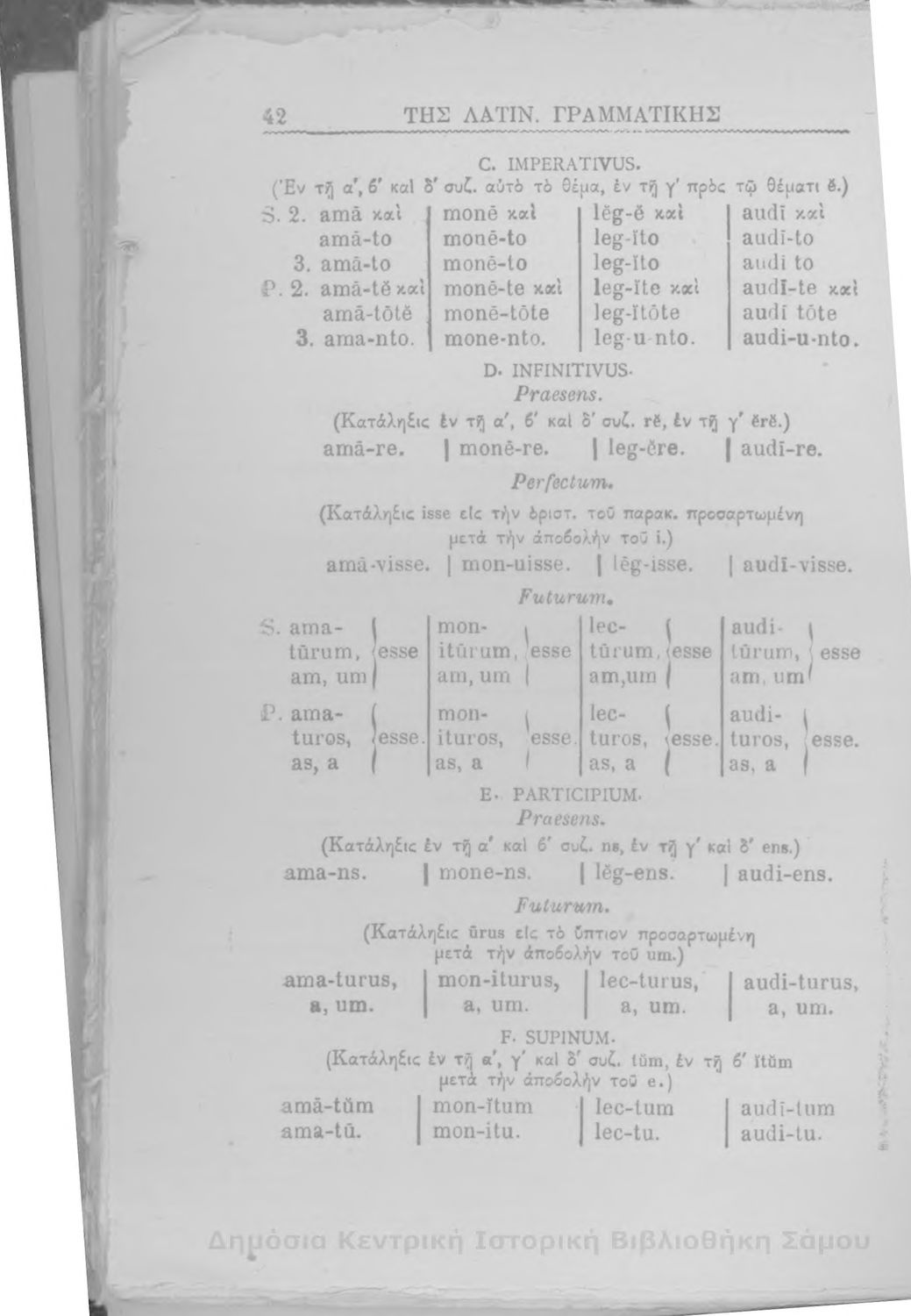 Σχολικό εγχειρίδιο Λατινικών για τα Ελληνικά Σχολεία που περιλαμβάνει τους γραμματικούς κανόνες.