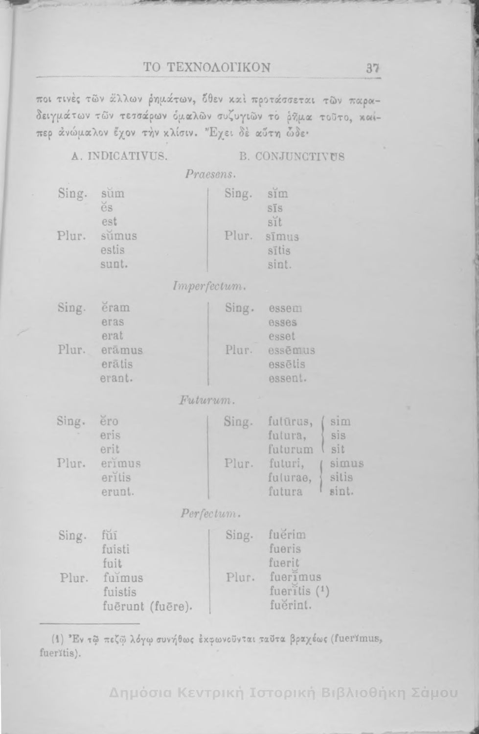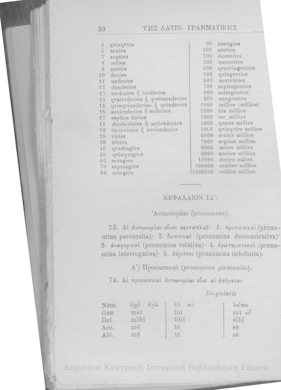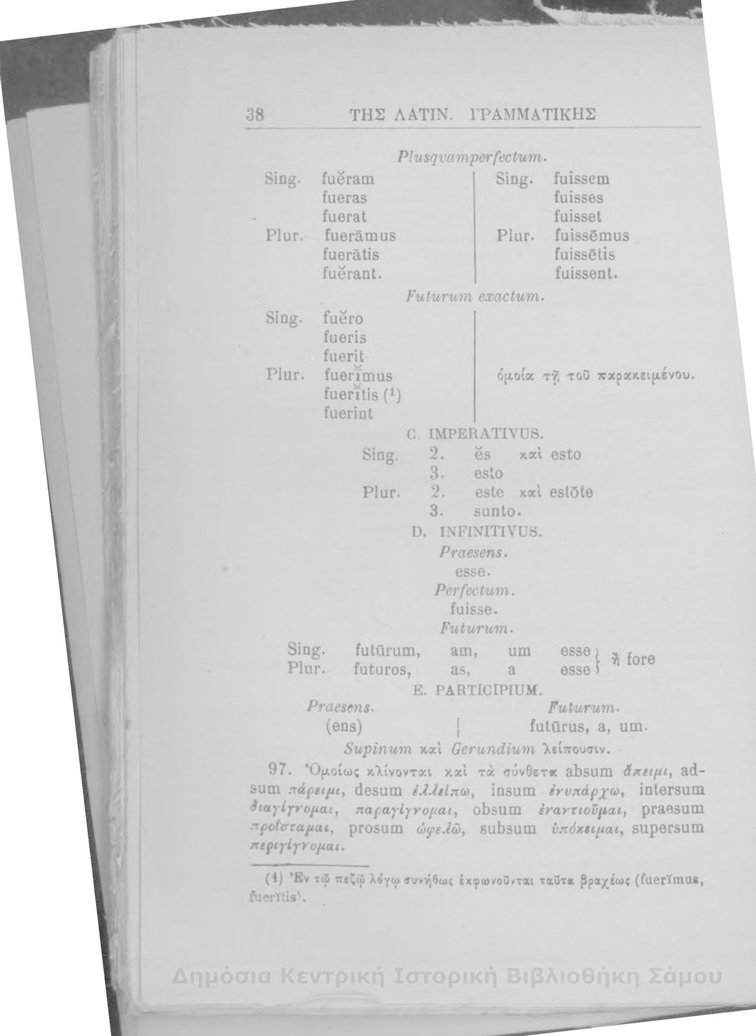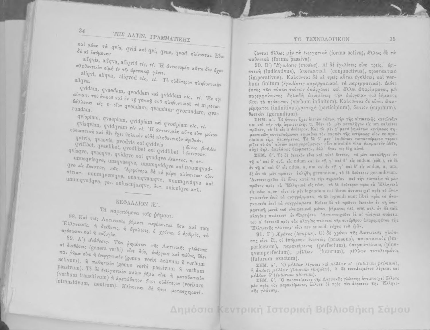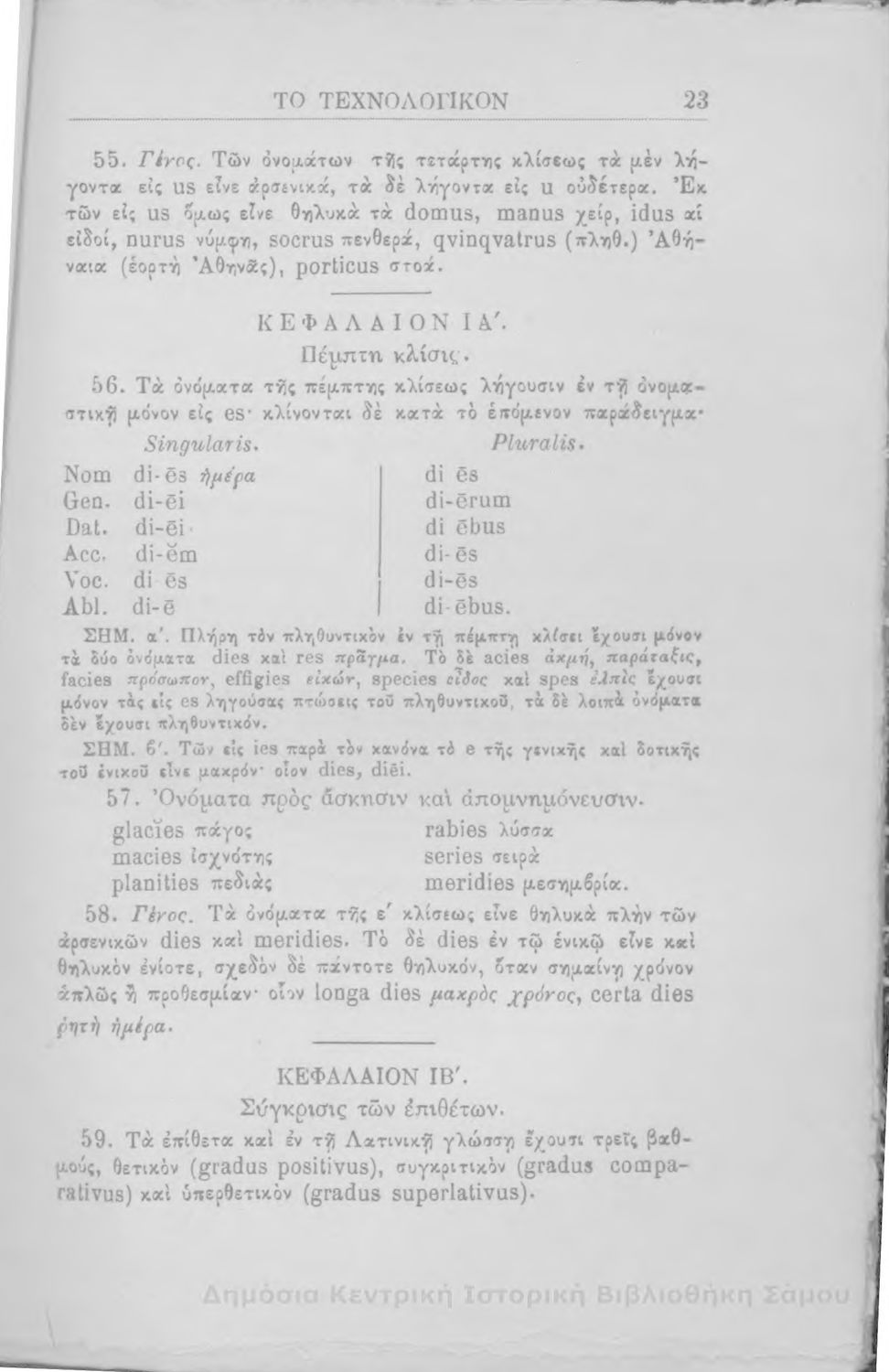 Σχολικό εγχειρίδιο Λατινικών για τα Ελληνικά Σχολεία που περιλαμβάνει τους γραμματικούς κανόνες.