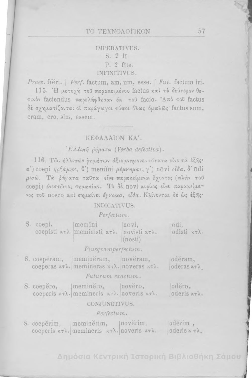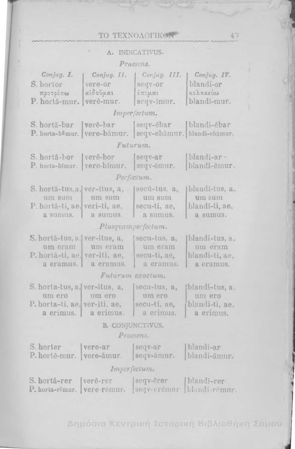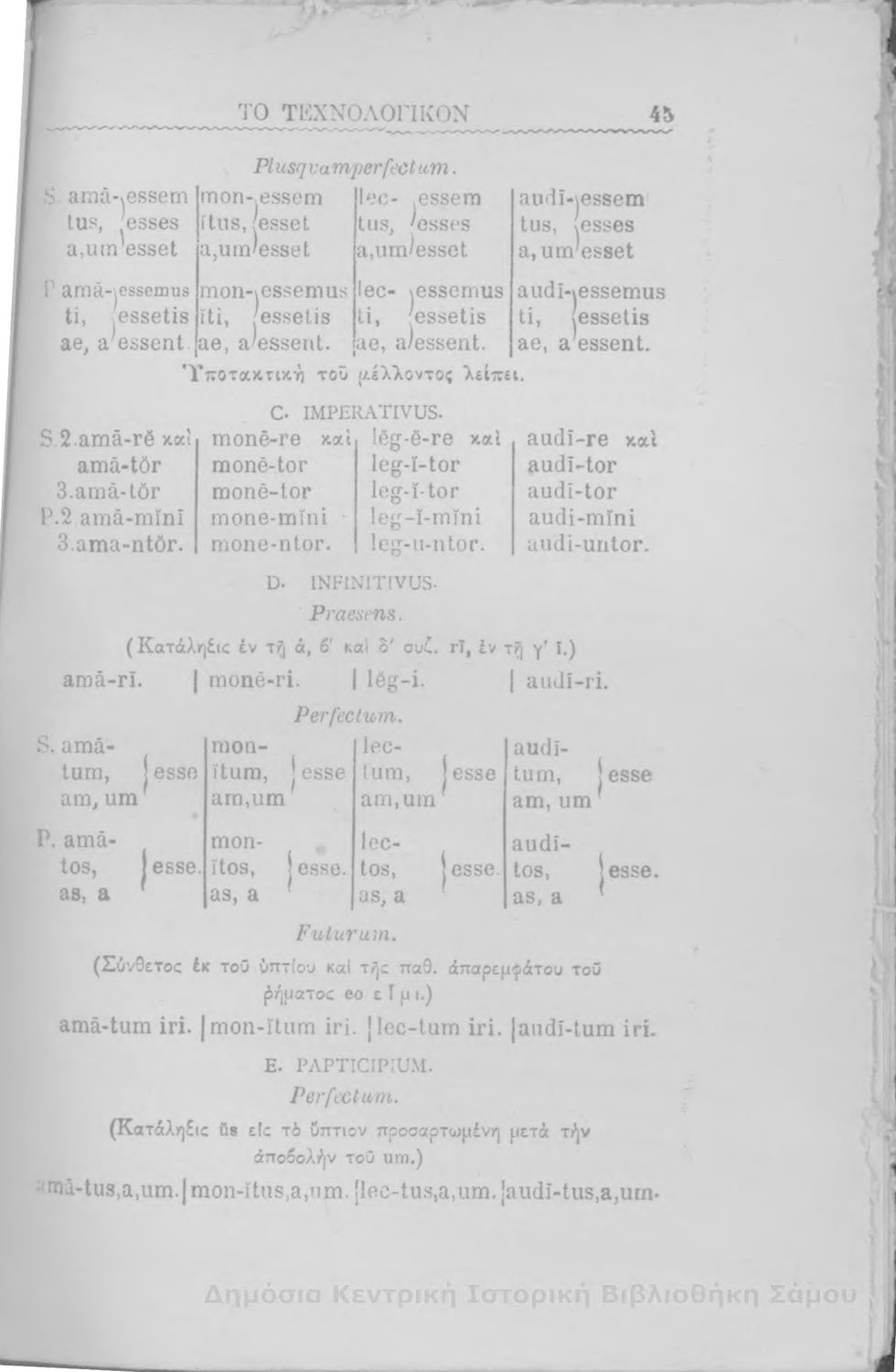 Σχολικό εγχειρίδιο Λατινικών για τα Ελληνικά Σχολεία που περιλαμβάνει τους γραμματικούς κανόνες.