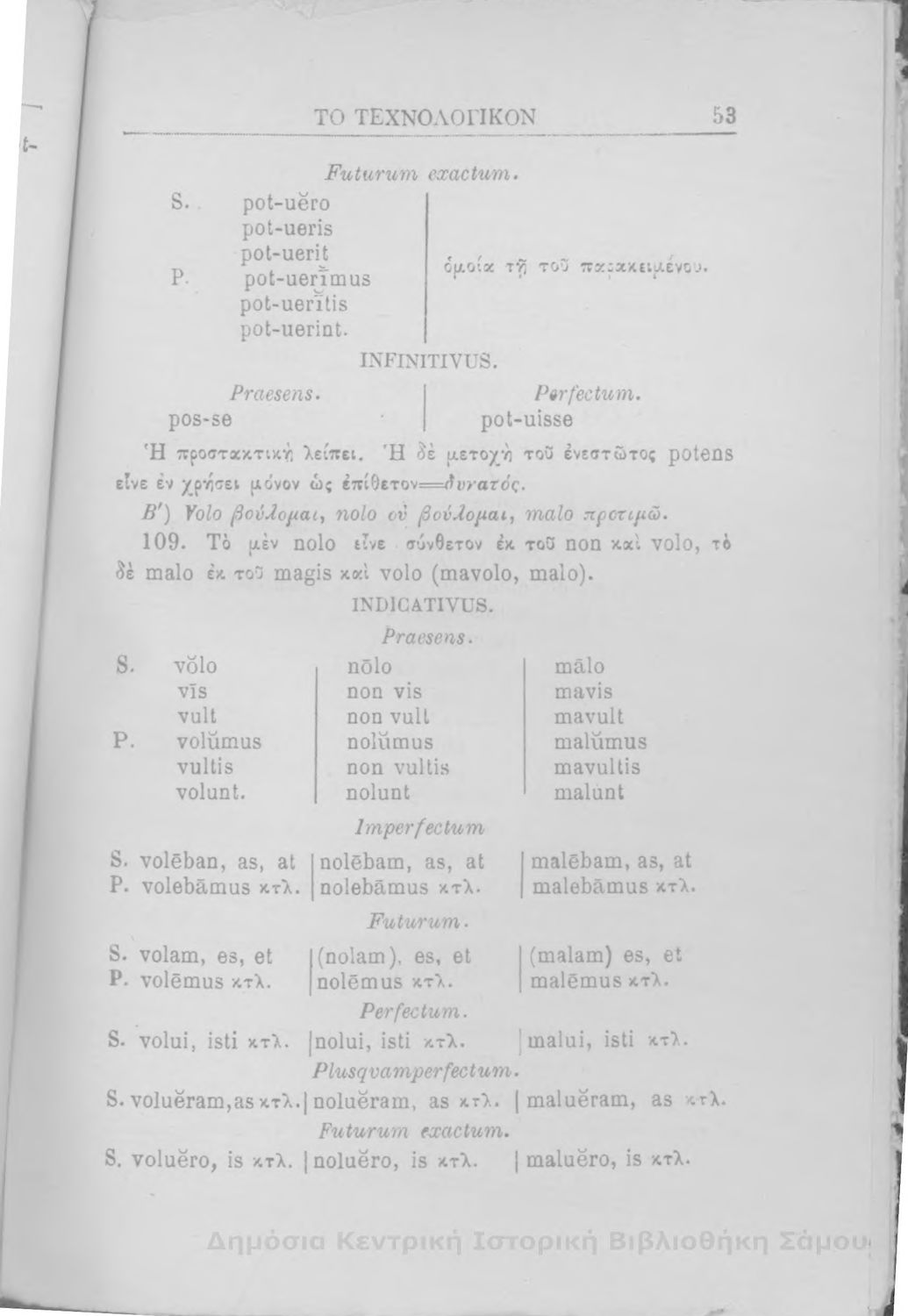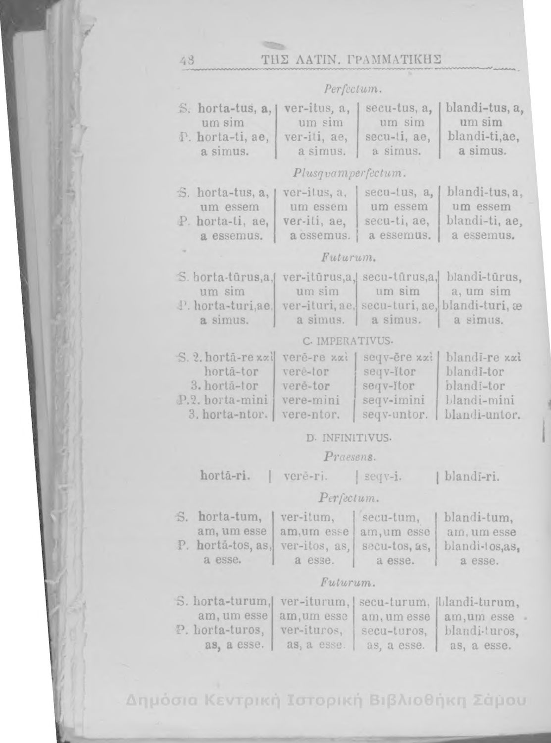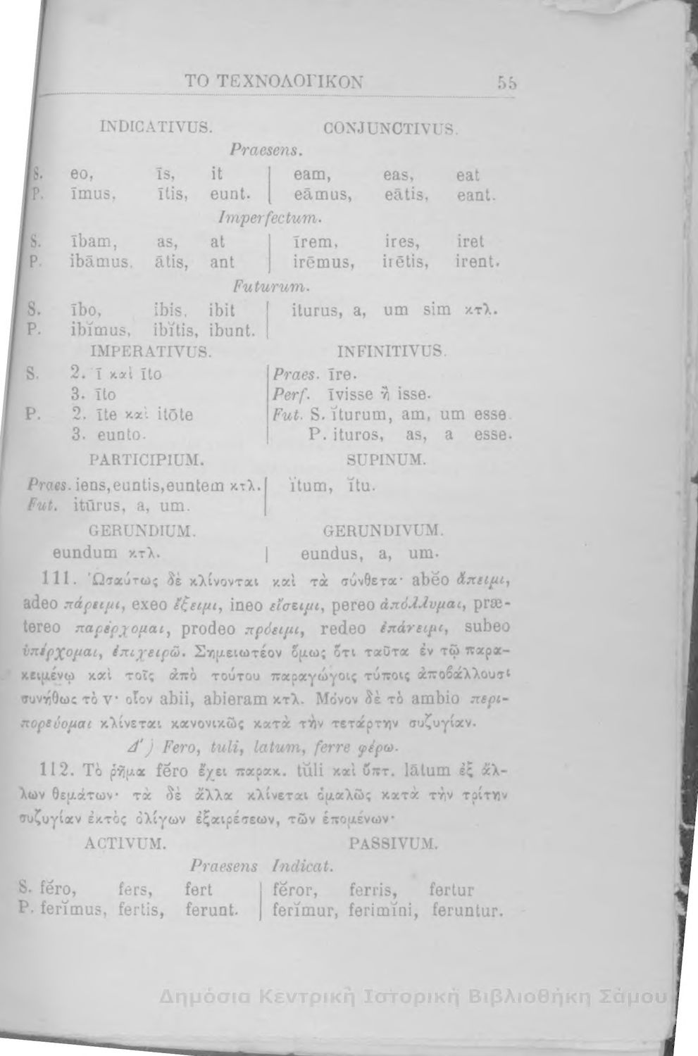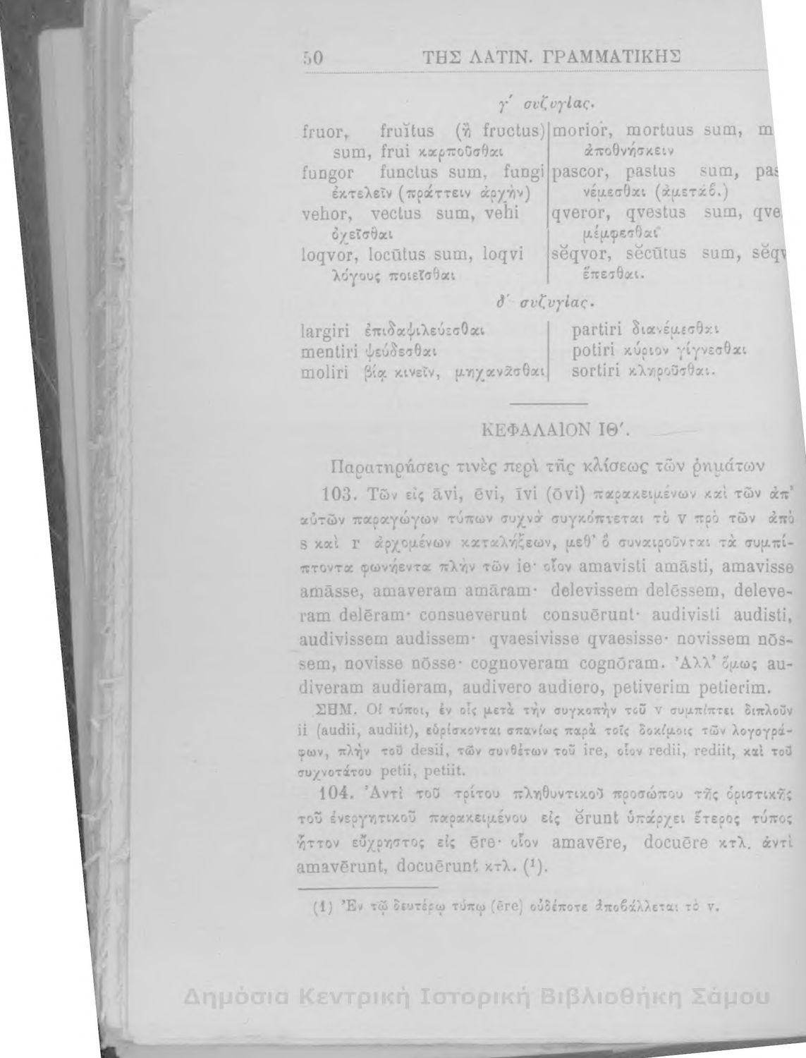 Σχολικό εγχειρίδιο Λατινικών για τα Ελληνικά Σχολεία που περιλαμβάνει τους γραμματικούς κανόνες.