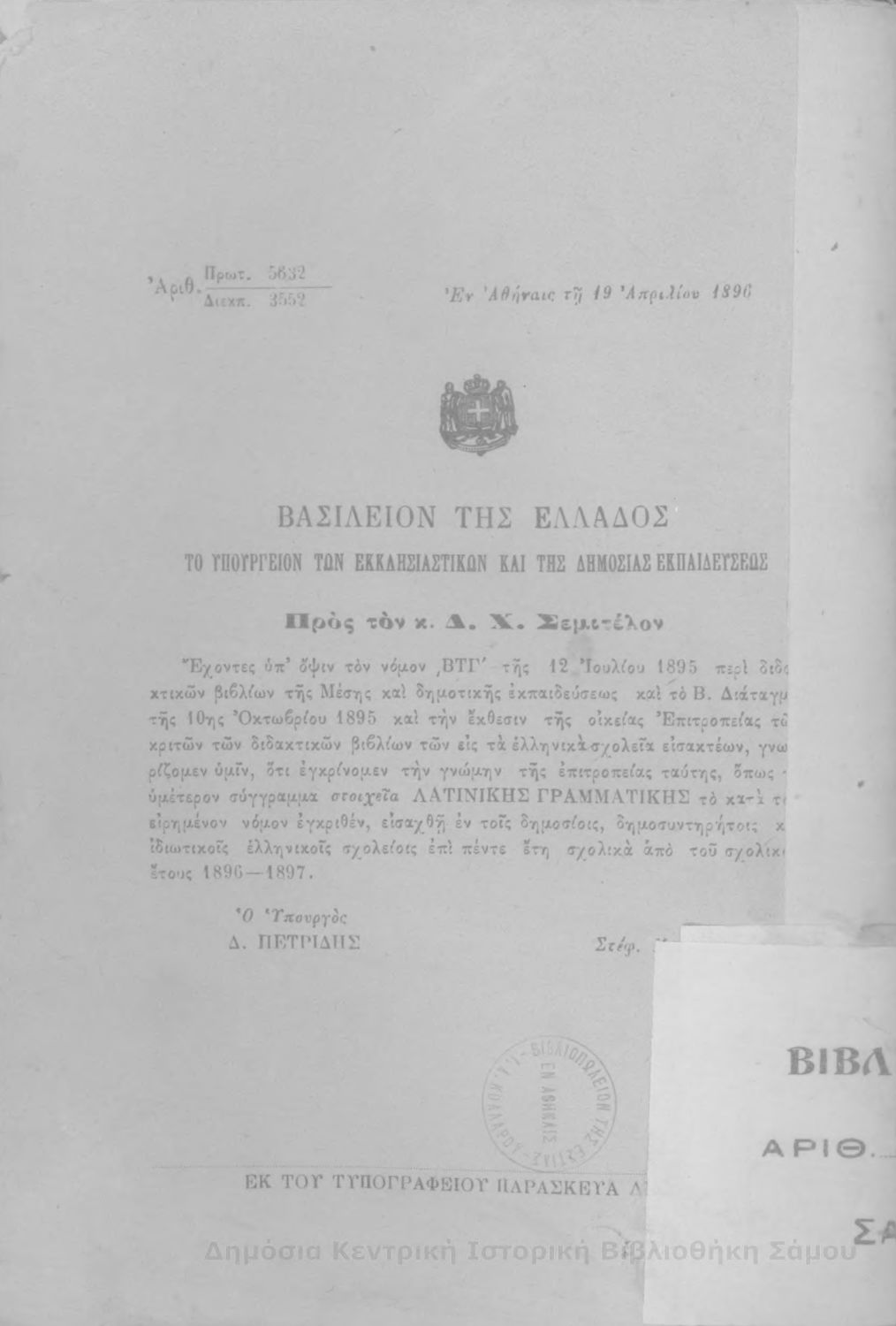 Εντοπισμός πρωτοτύπου: Δημόσια Βιβλιοθήκη Σάμου