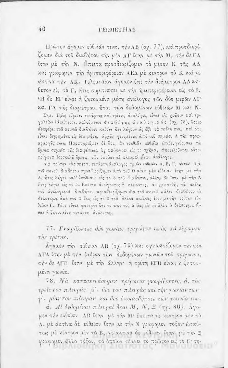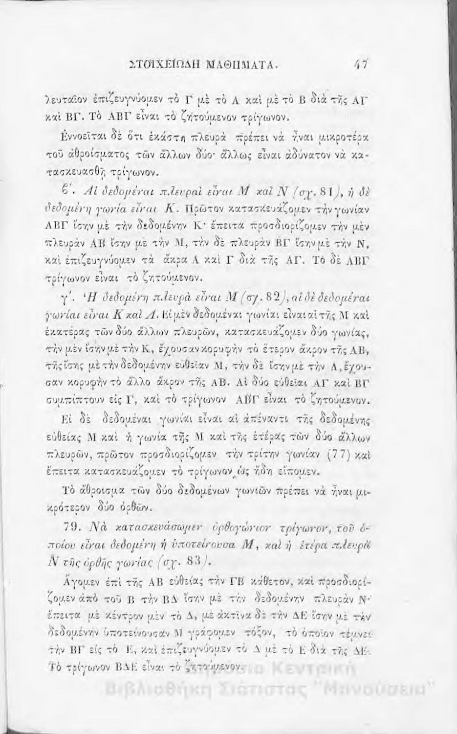 Σχολικό εγχειρίδιο Γεωμετρίας για την Α΄, Β΄ και Γ΄ τάξη των Ελληνικών και Αστικών Σχολείων και Παρθεναγωγείων που είναι χωρισμένο σε Επιπεδομετρία και Στερεομετρία και περιλαμβάνει θεωρία και ασκήσεις.