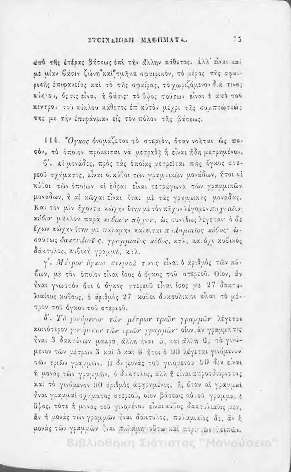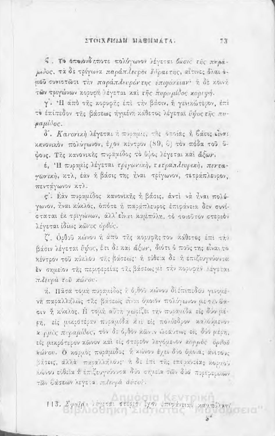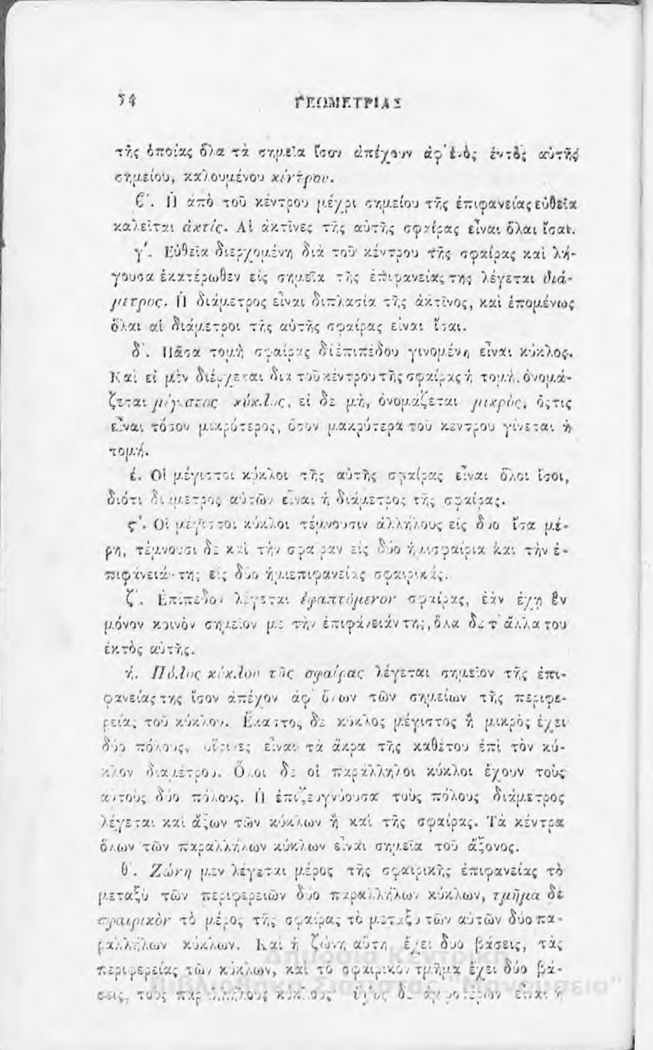 Σχολικό εγχειρίδιο Γεωμετρίας για την Α΄, Β΄ και Γ΄ τάξη των Ελληνικών και Αστικών Σχολείων και Παρθεναγωγείων που είναι χωρισμένο σε Επιπεδομετρία και Στερεομετρία και περιλαμβάνει θεωρία και ασκήσεις.