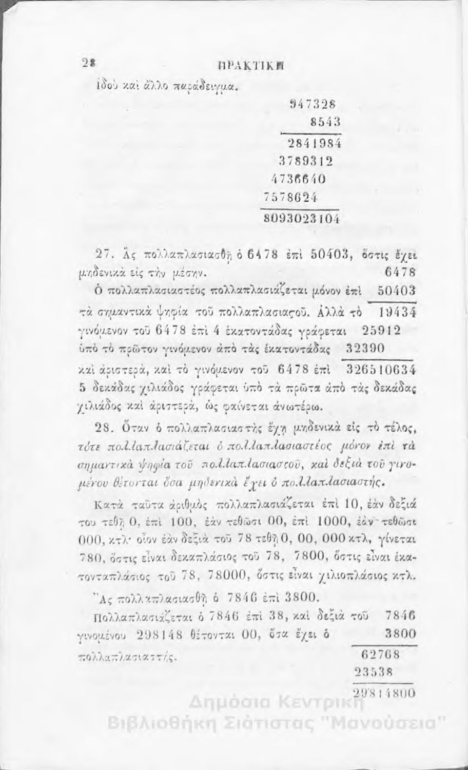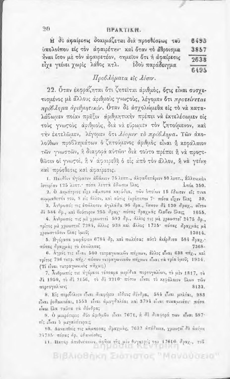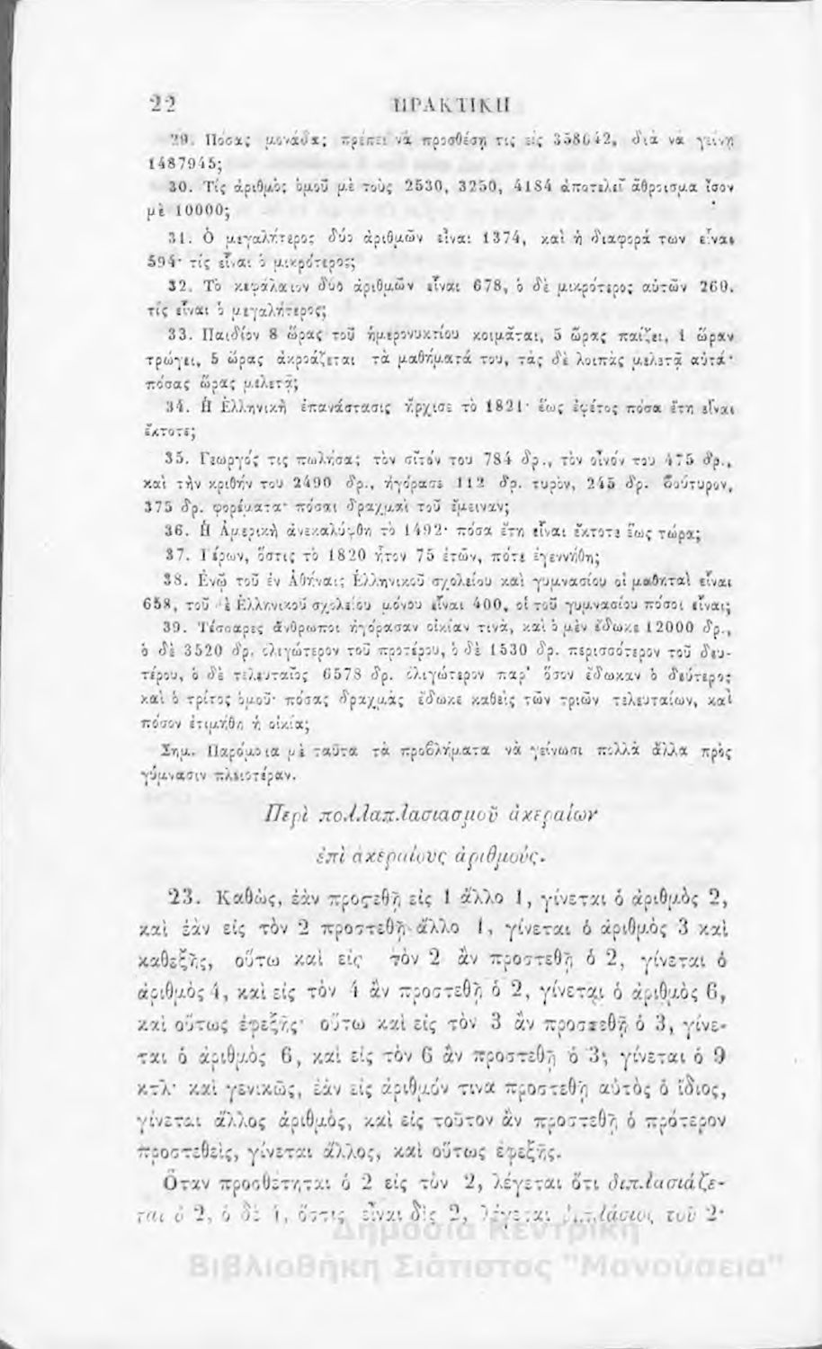 Πρακτική αριθμητική : προς χρήσιν των μαθητευόντων εις την κατωτέραν τάξιν των ελληνικών σχολείων της Ελλάδος