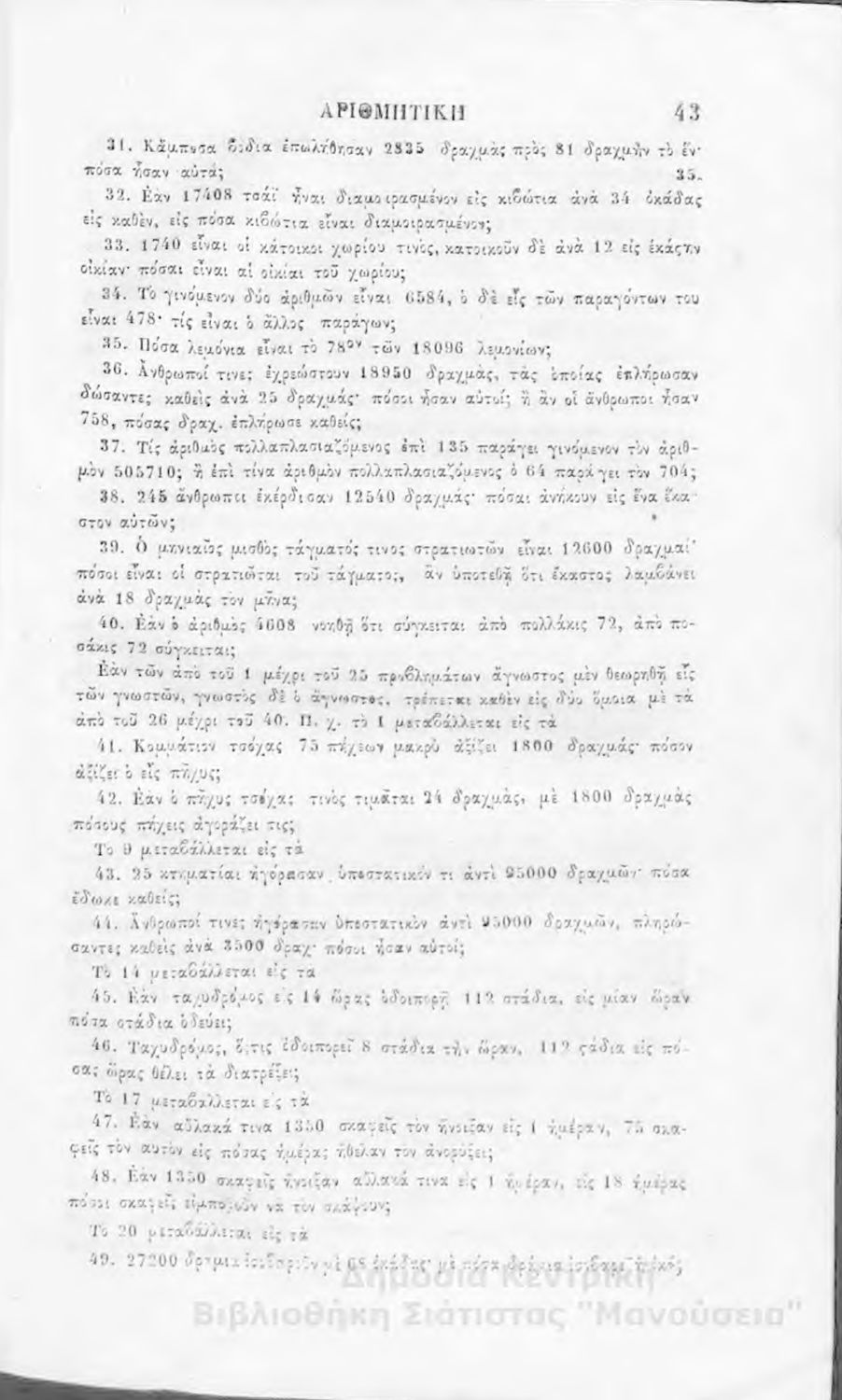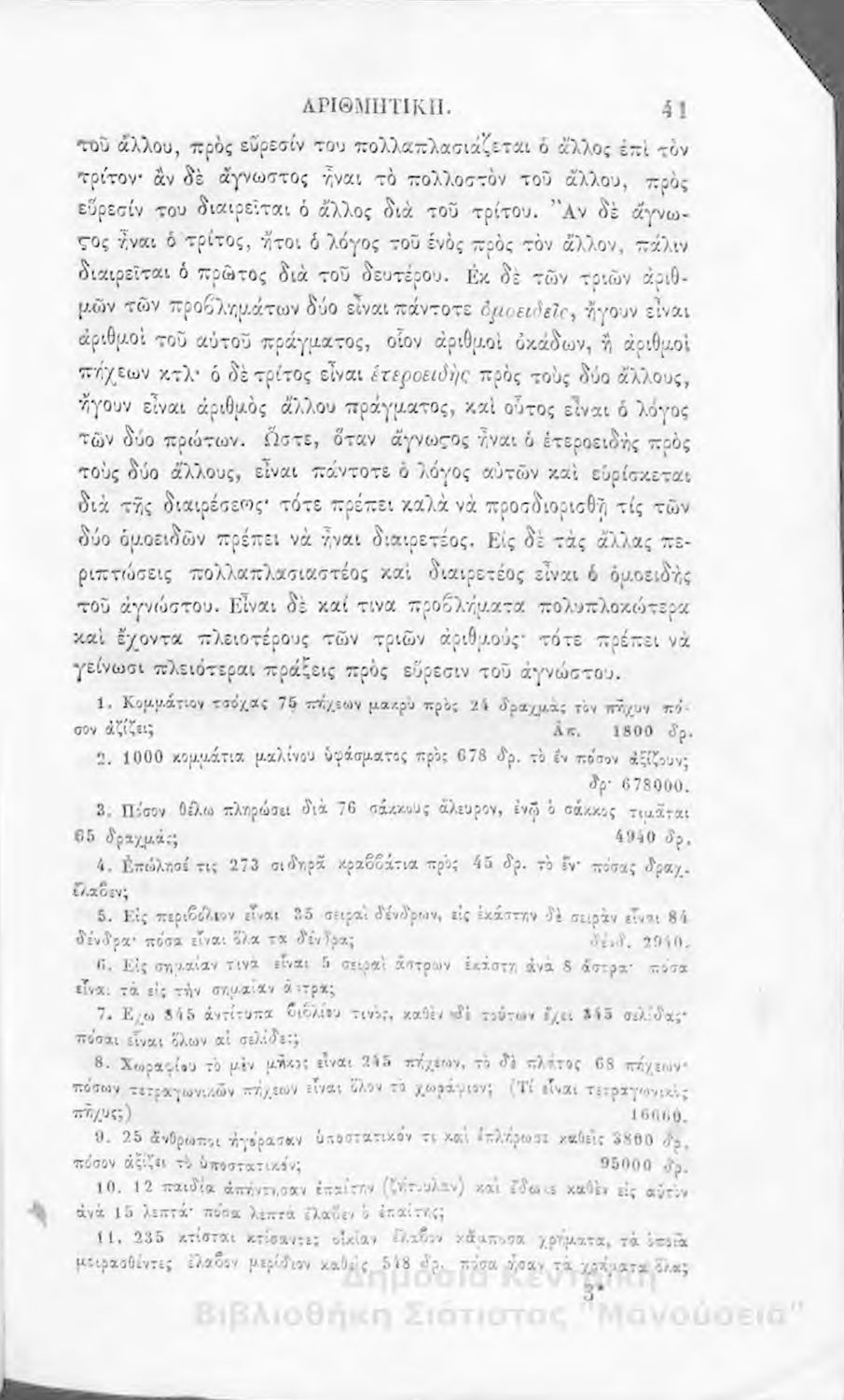 Μαθητικό βοήθημα Μαθηματικών για τους μαθητές των Ελληνικών Σχολείων και των Αστικών Σχολών που περιέχει τις λύσεις ασκήσεων αριθμητικής και γεωμετρίας που περιλαμβάνονται στα βιβλία του Ιωάννη Ν. Χατζηδάκη ...