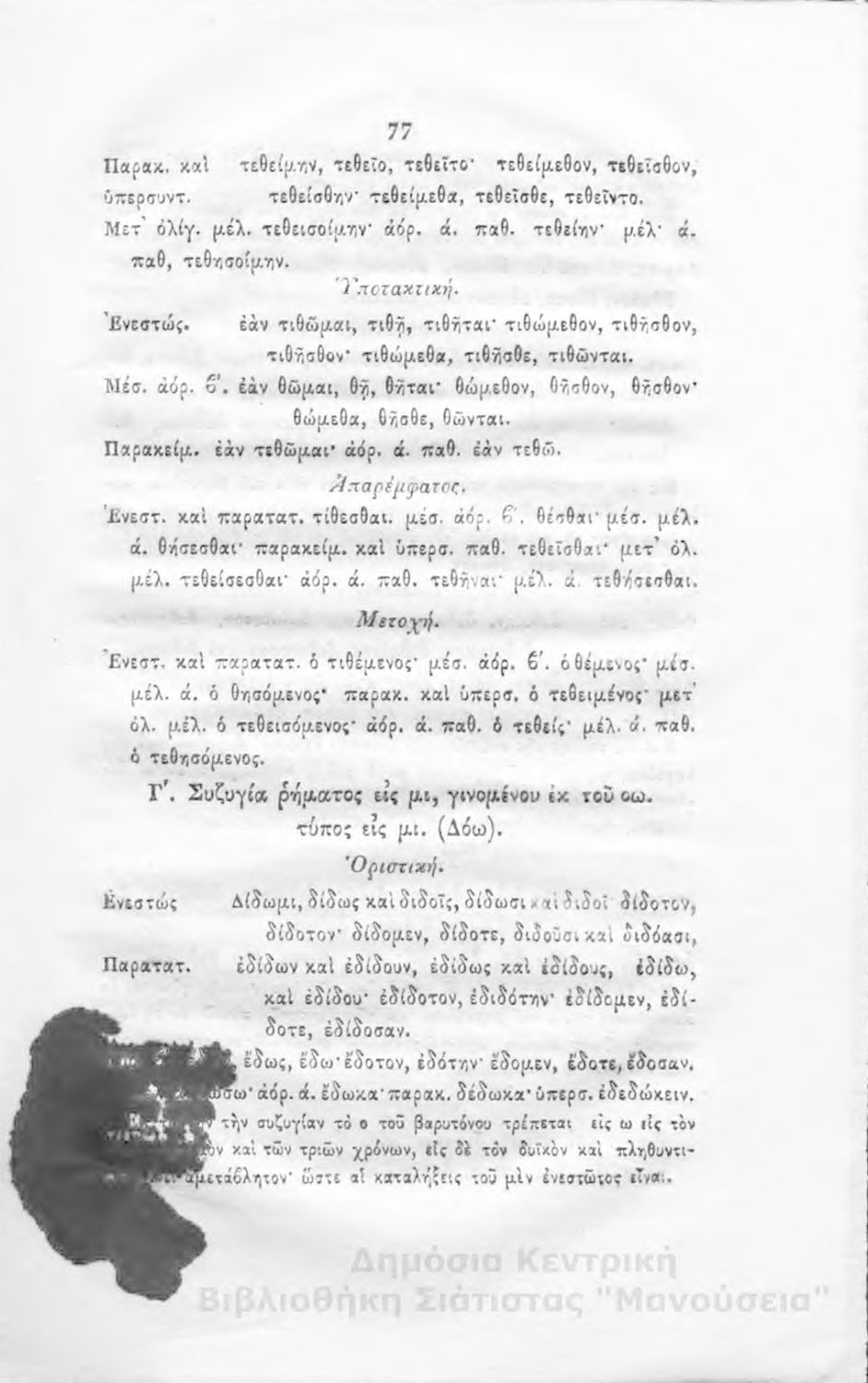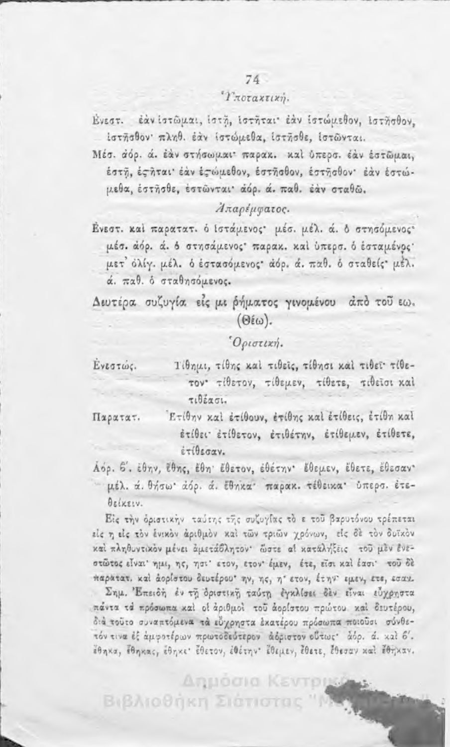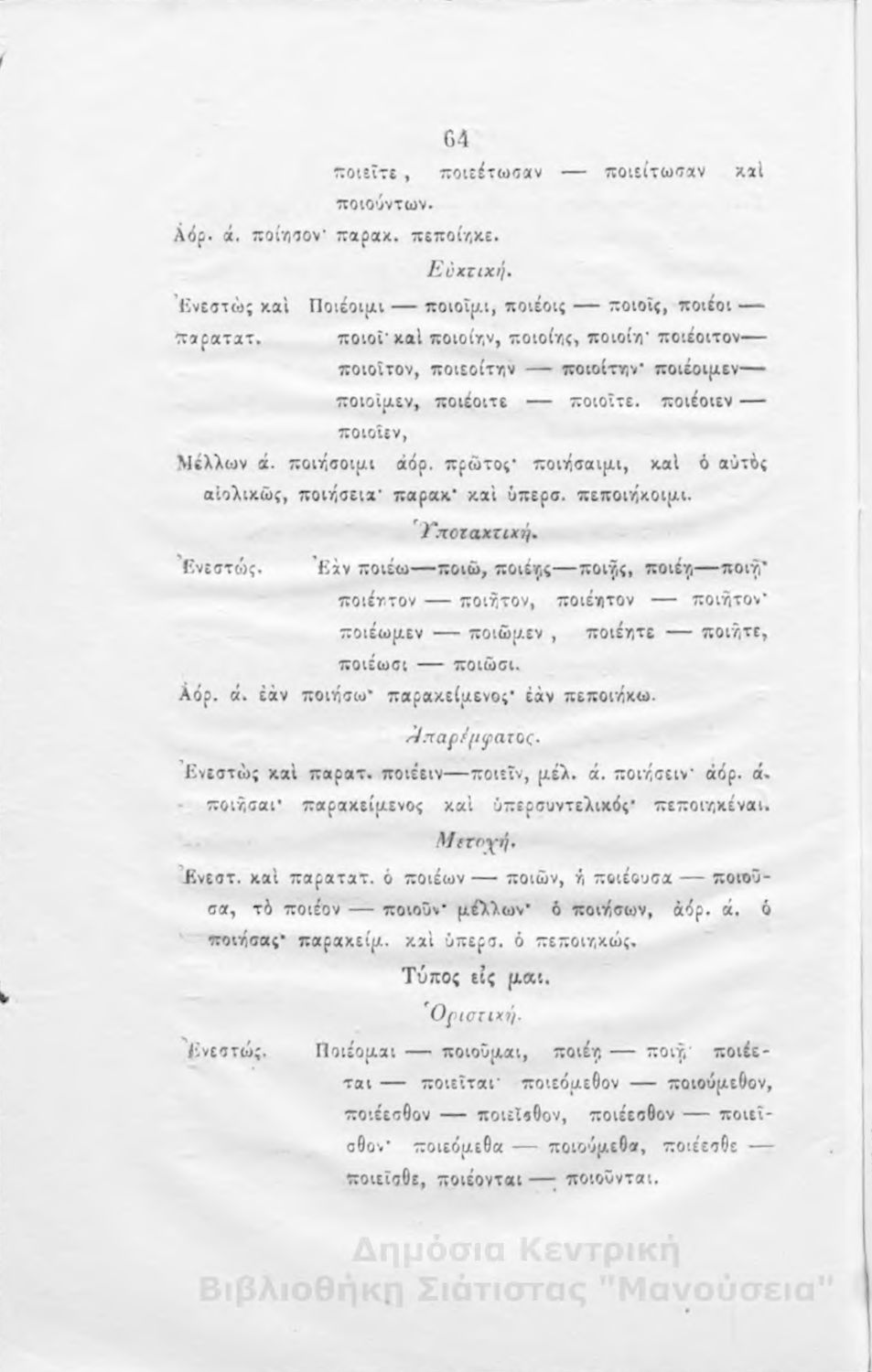 Στοιχεία της ελληνικής γραμματικής: προς χρήσιν των μαθητών του Δ΄ τμήματος των αλληλοδιδακτικών σχολείων