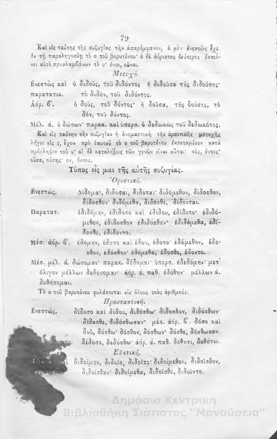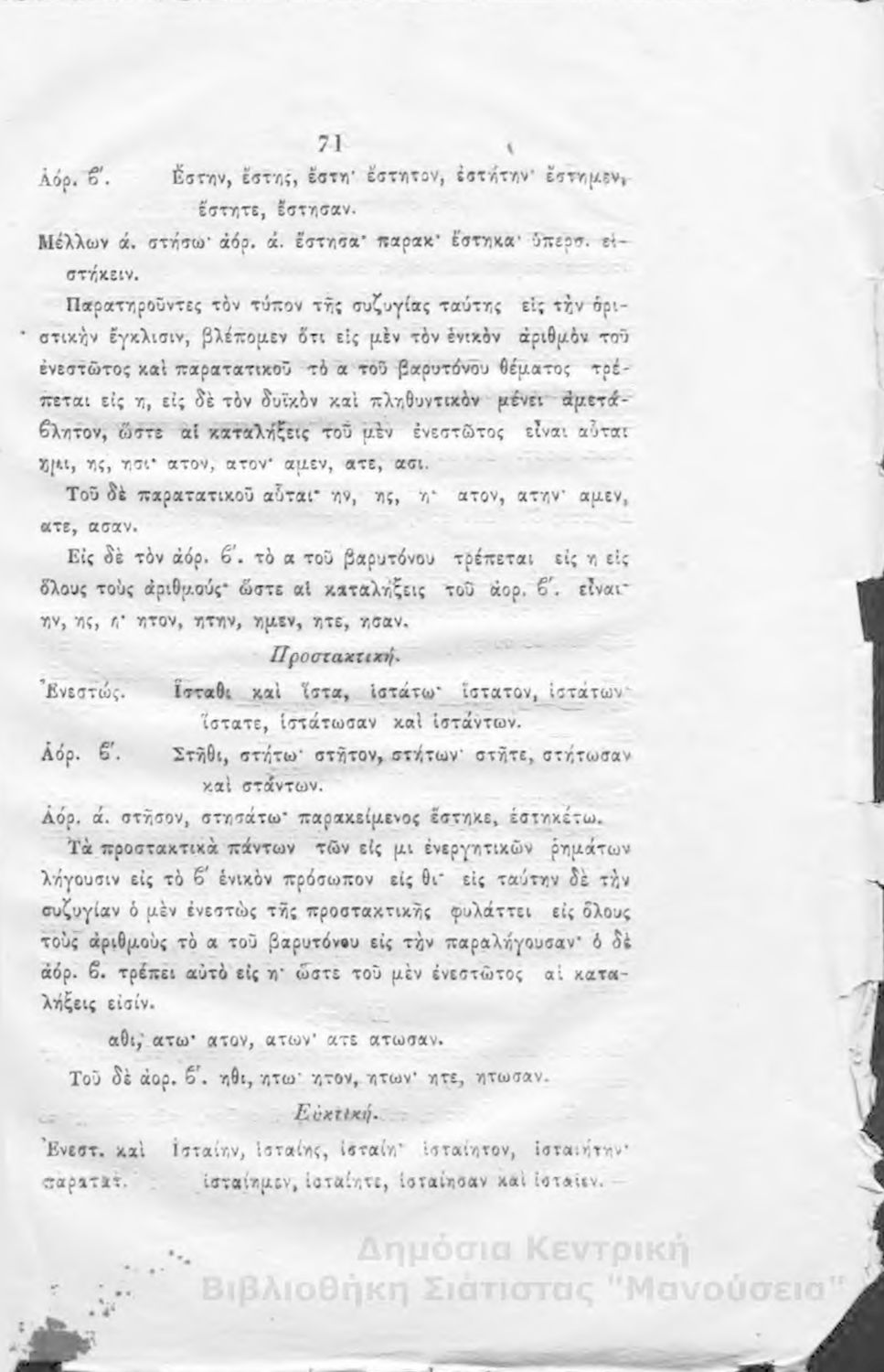 Τίτλος: Στοιχεία της ελληνικής γραμματικής: προς χρήσιν των μαθητών του Δ΄ τμήματος των αλληλοδιδακτικών σχολείων