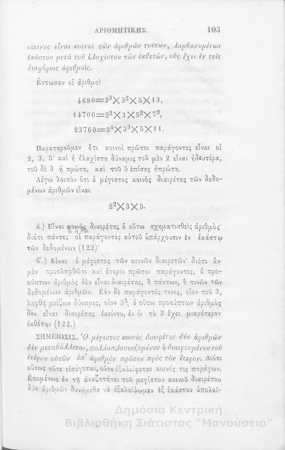 Στοιχεία αριθμητικής: πρός χρήσιν των Γυμνασίων