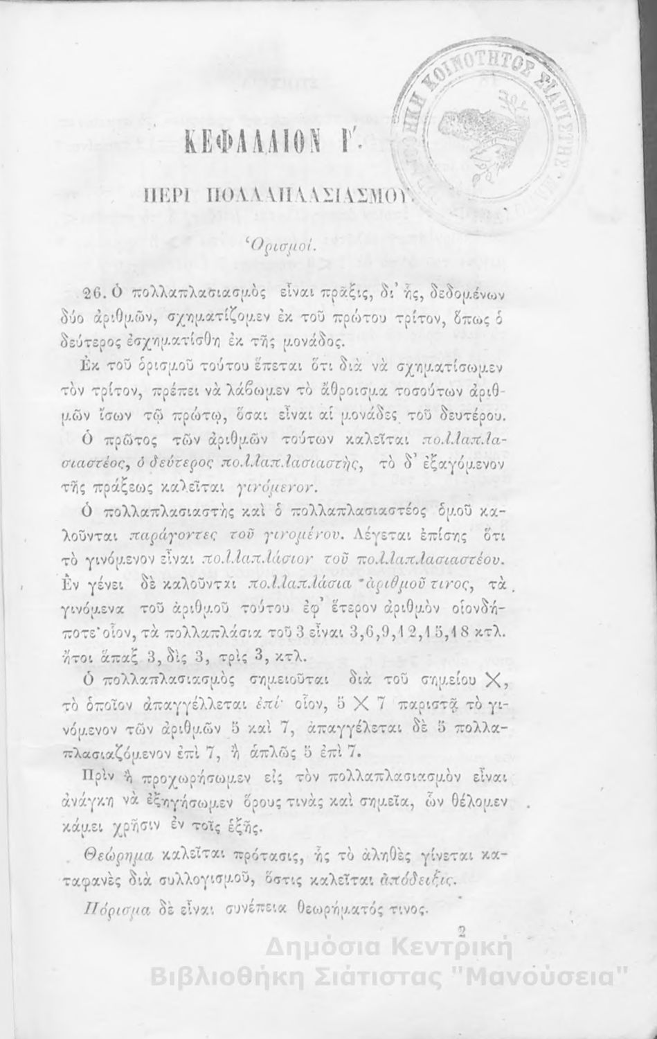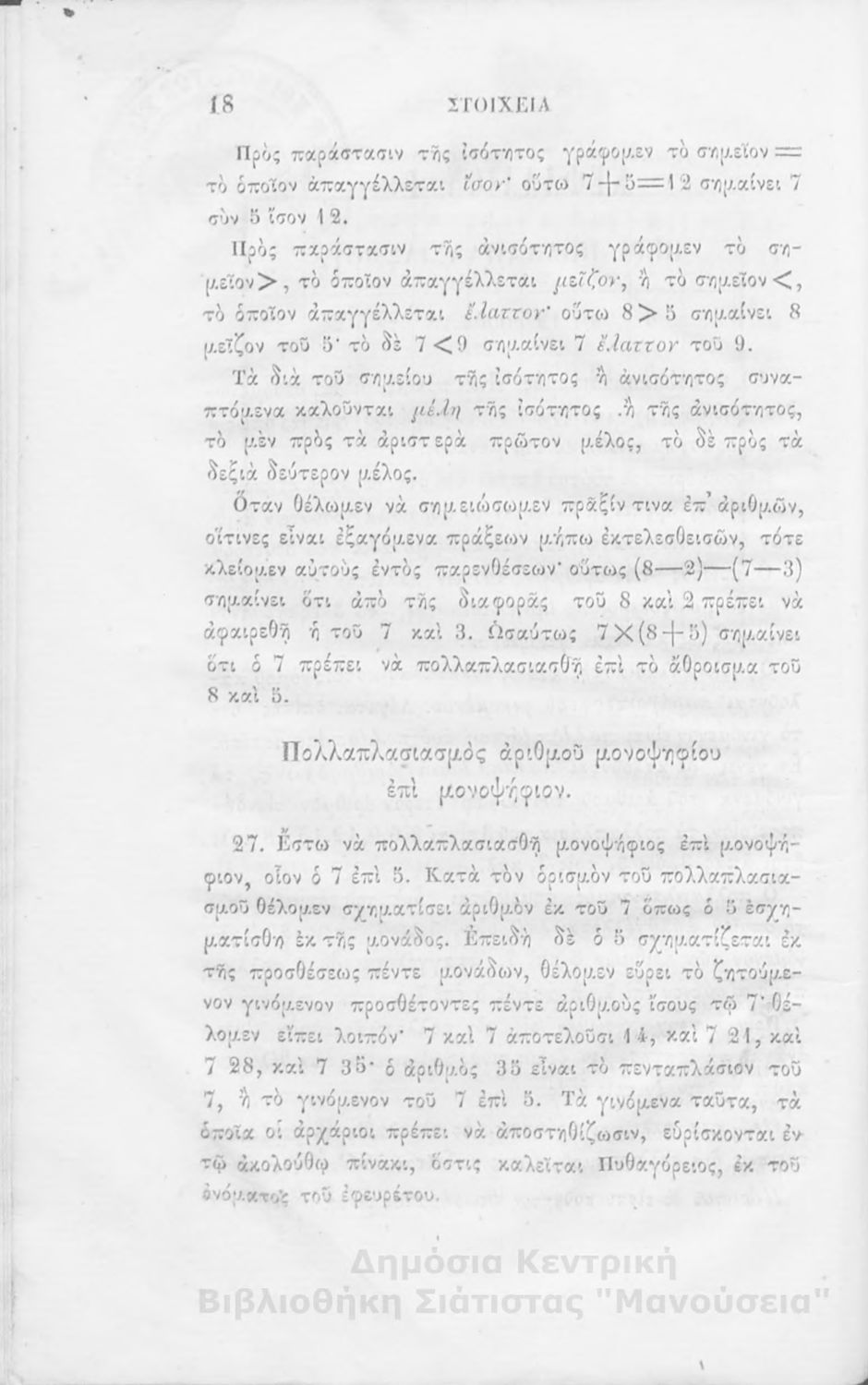 Στοιχεία αριθμητικής: πρός χρήσιν των Γυμνασίων