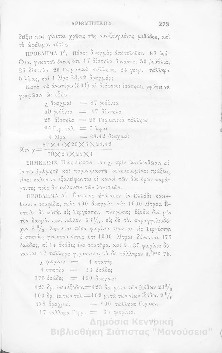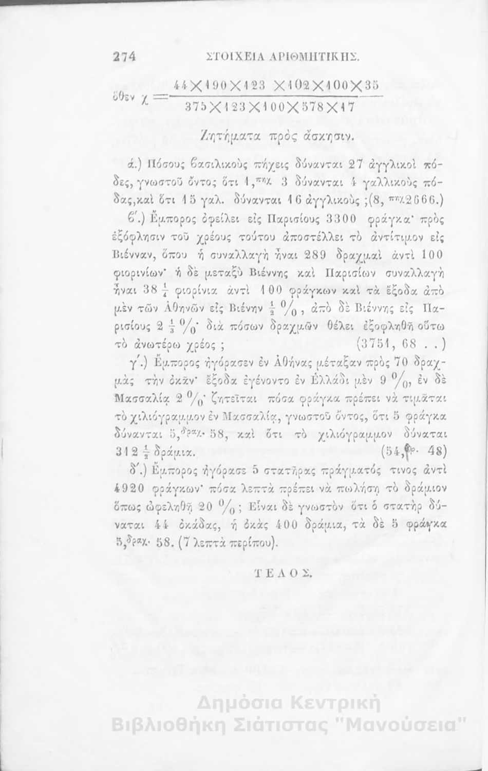 Στοιχεία αριθμητικής: πρός χρήσιν των Γυμνασίων