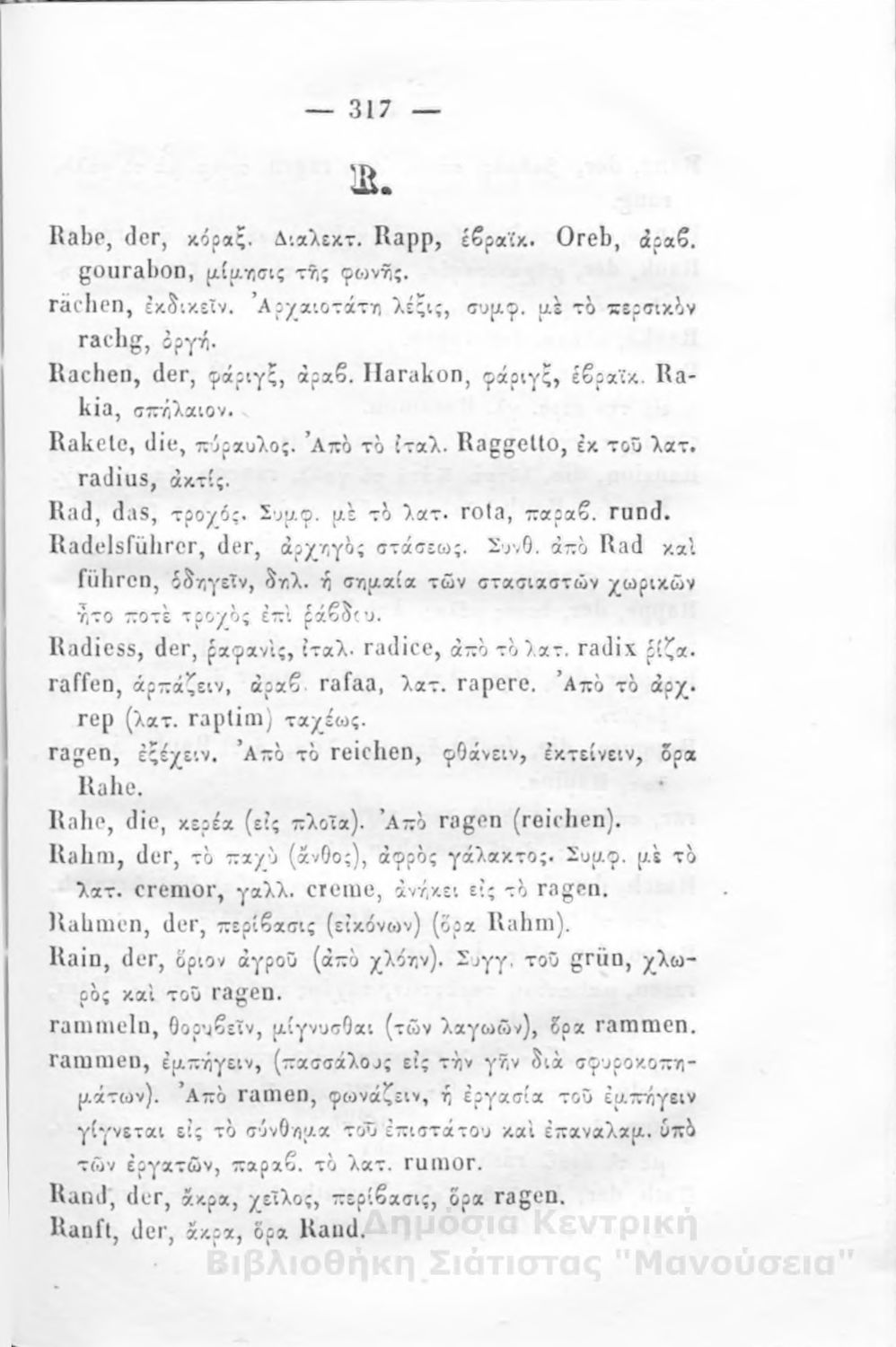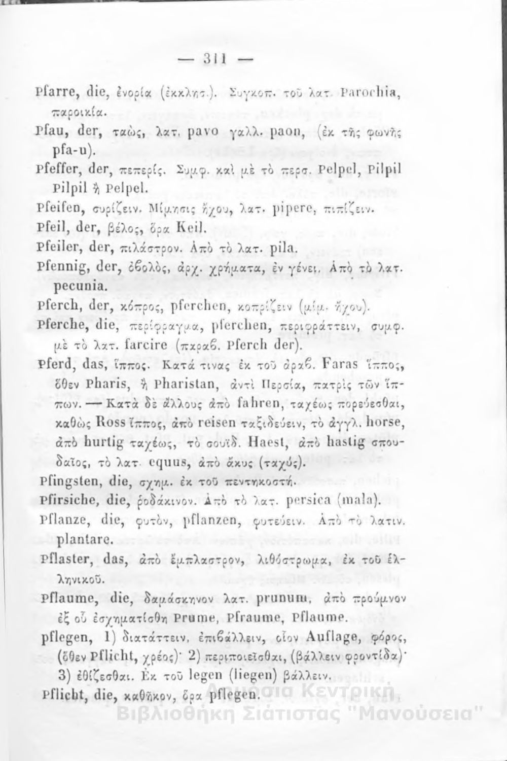Κωδικός αναγνώρισης: 91-75618 Τίτλος: Γραμματική της γερμανικής γλώσσης ιδίως προς χρήσιν των Ελλήνων Συγγραφέας: Christian Heinrich Wolke Μέγεθος και υπόστρωμα: Μαθητικό βοήθημα, 436 σελίδες. |