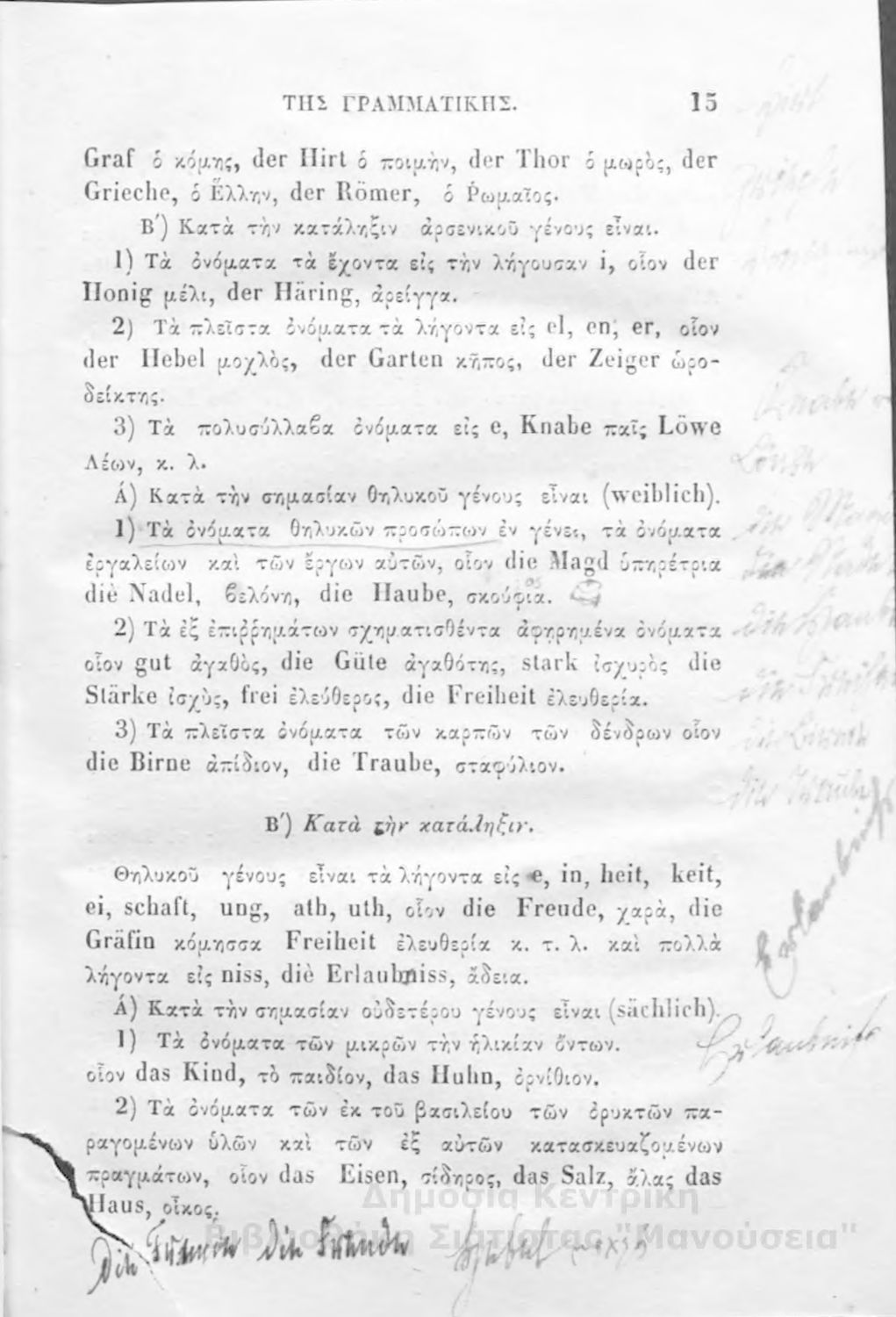 Κωδικός αναγνώρισης: 91-75618 Τίτλος: Γραμματική της γερμανικής γλώσσης ιδίως προς χρήσιν των Ελλήνων Συγγραφέας: Christian Heinrich Wolke Μέγεθος και υπόστρωμα: Μαθητικό βοήθημα, 436 σελίδες. |