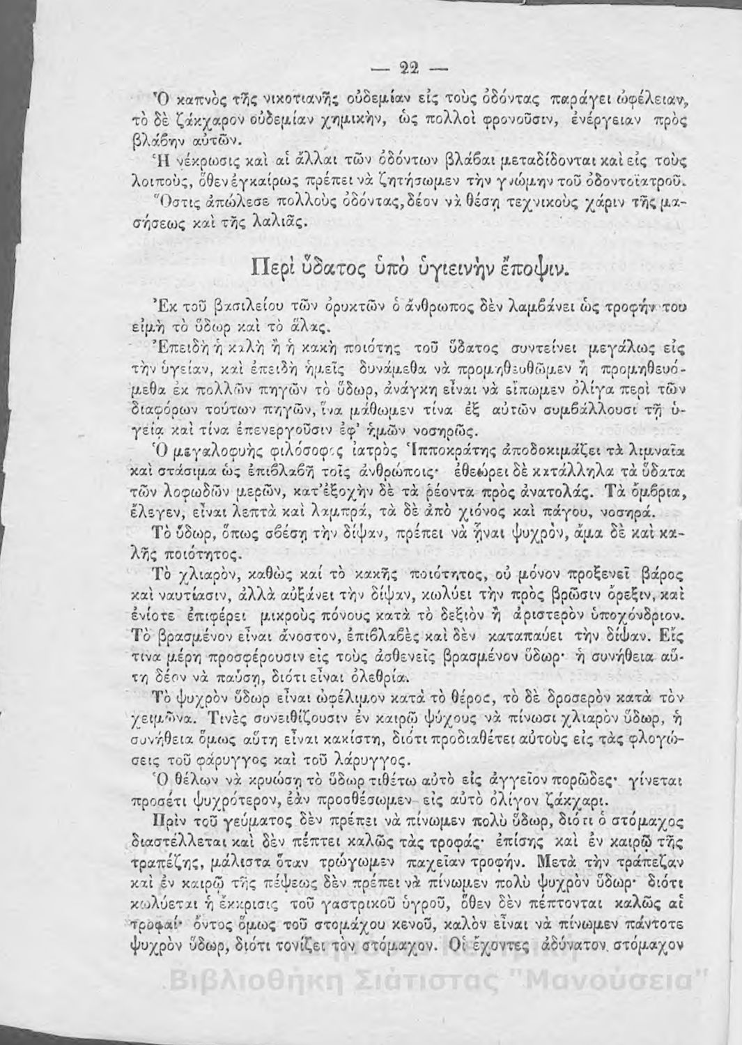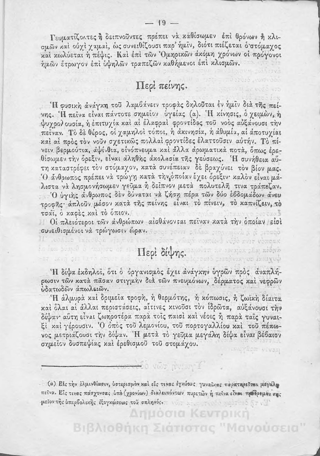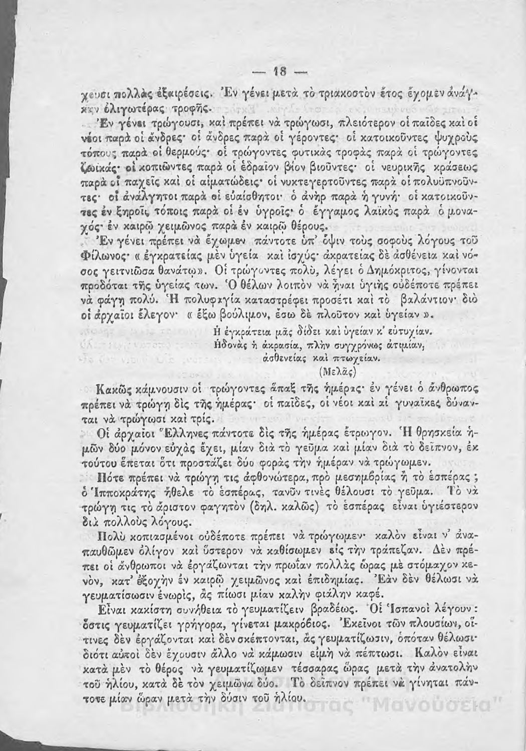 Βαθμίδα εκπαίδευσης: Δευτεροβάθμια Μάθημα: Υγιεινή Γλώσσα: Καθαρεύουσα |