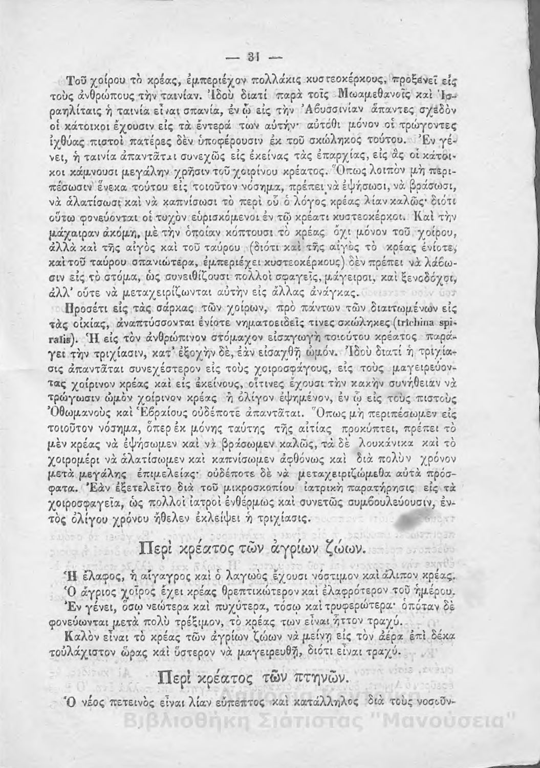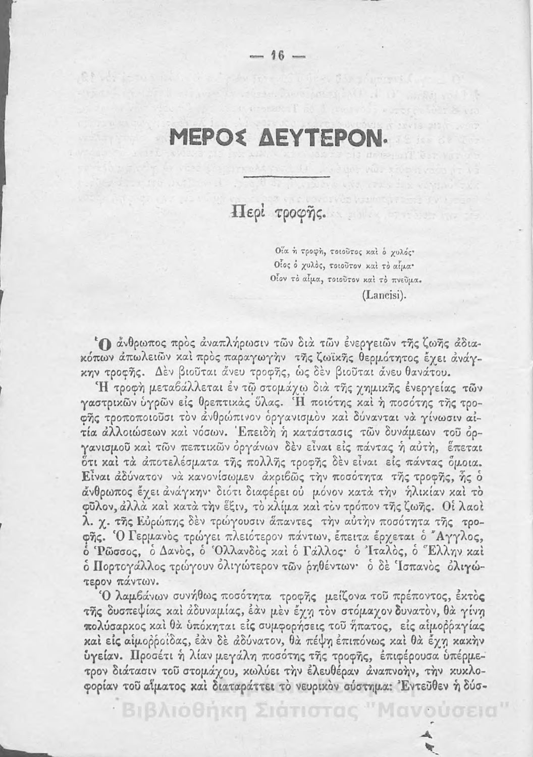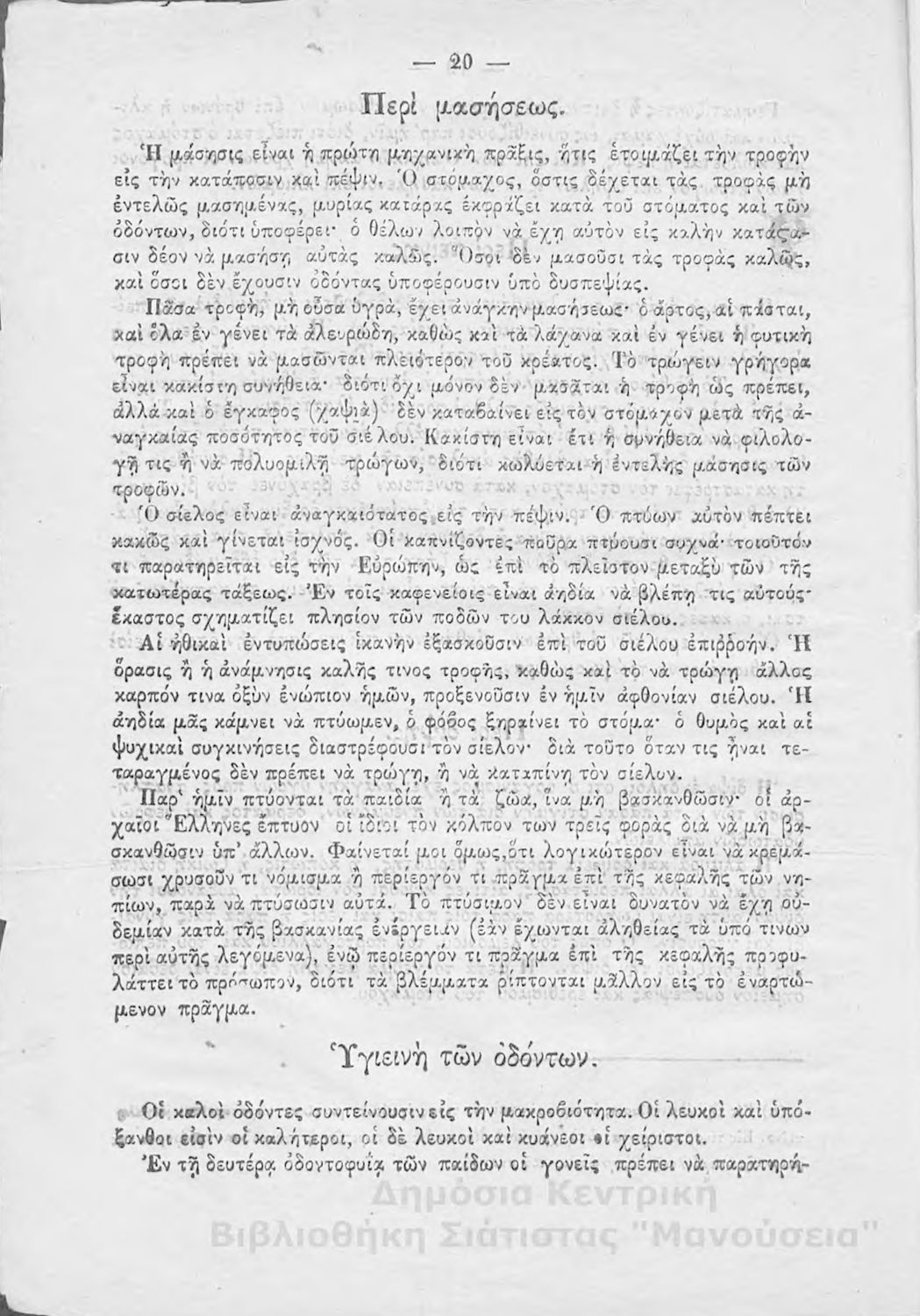 Βαθμίδα εκπαίδευσης: Δευτεροβάθμια Μάθημα: Υγιεινή Γλώσσα: Καθαρεύουσα |