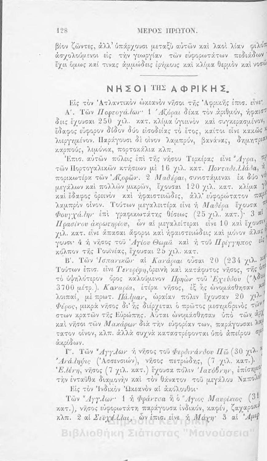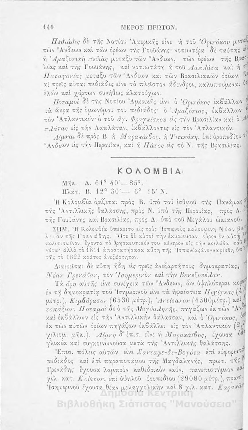 Στοιχειώδης γεωγραφία πολιτική μαθηματική και φυσική: προς χρήσιν της εν τοις ελληνικοίς σχολείοις σπουδαζούσης νεολαίας