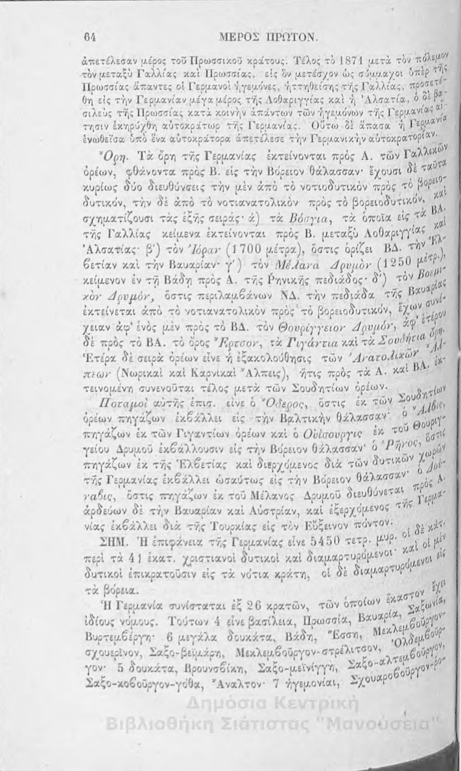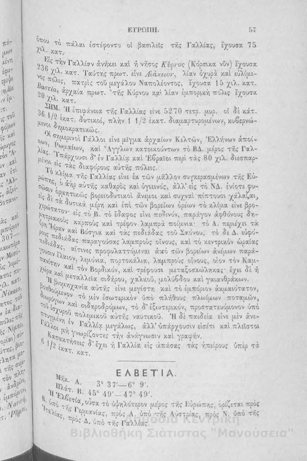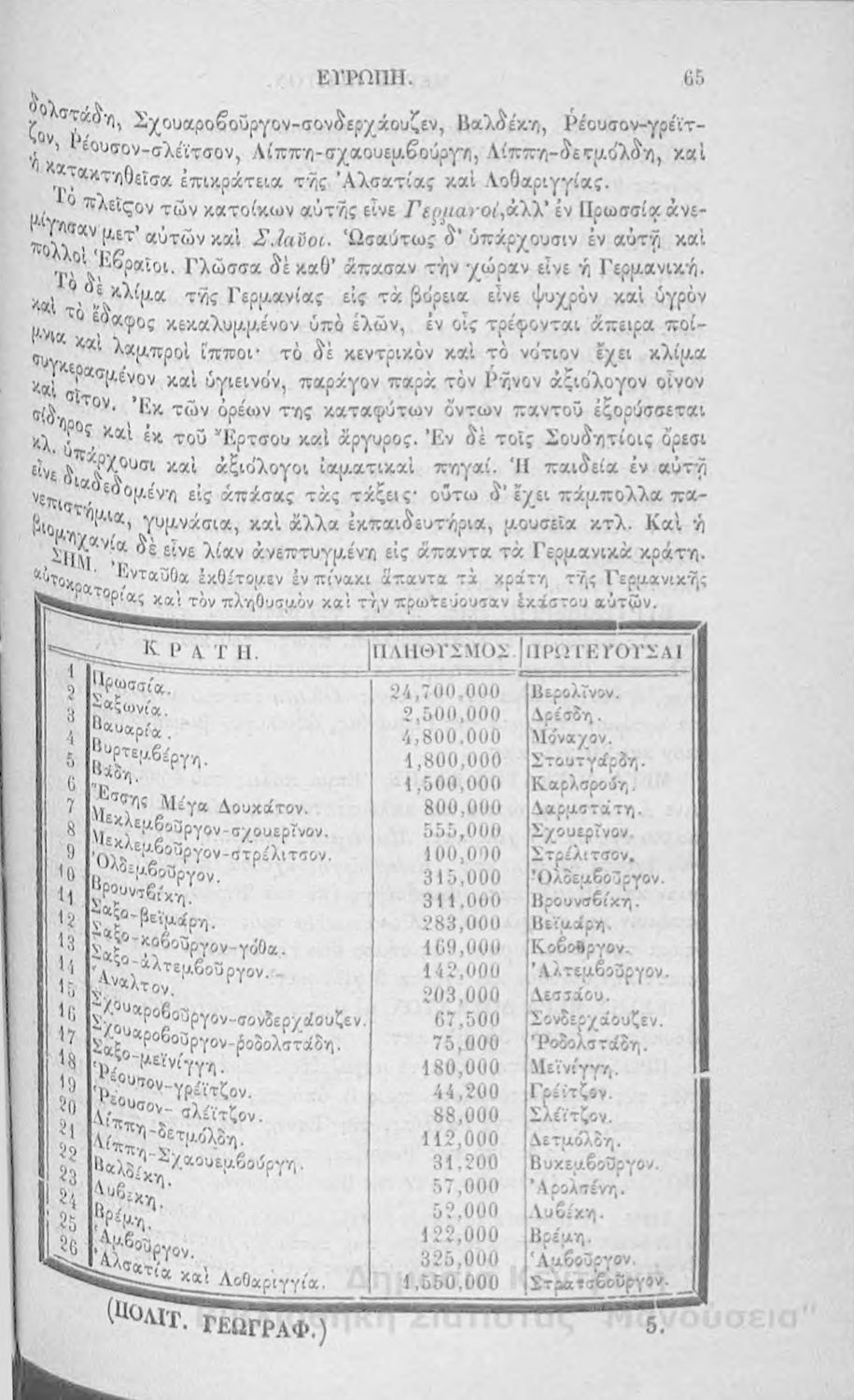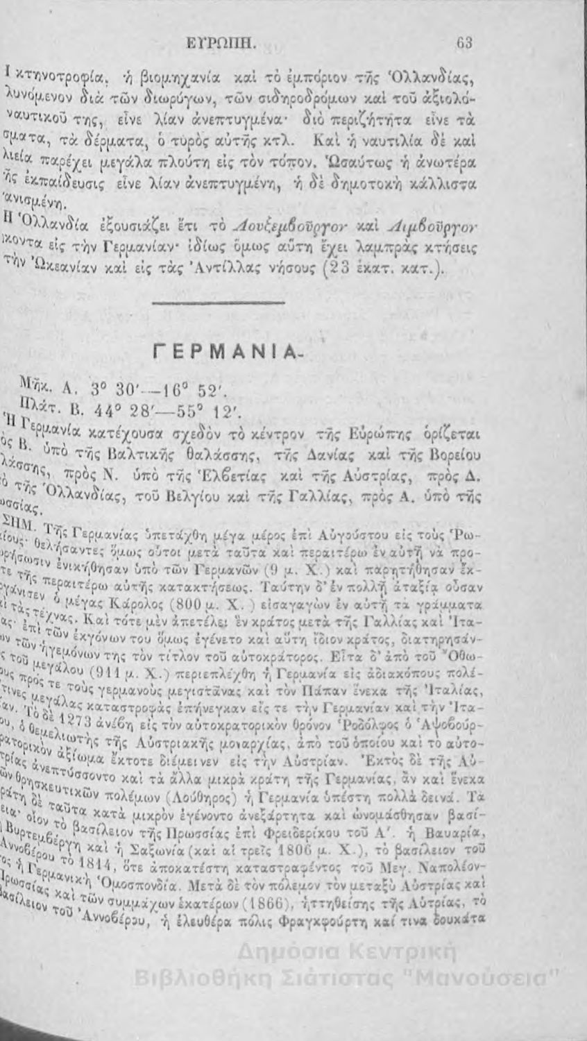 Στοιχειώδης γεωγραφία πολιτική μαθηματική και φυσική: προς χρήσιν της εν τοις ελληνικοίς σχολείοις σπουδαζούσης νεολαίας