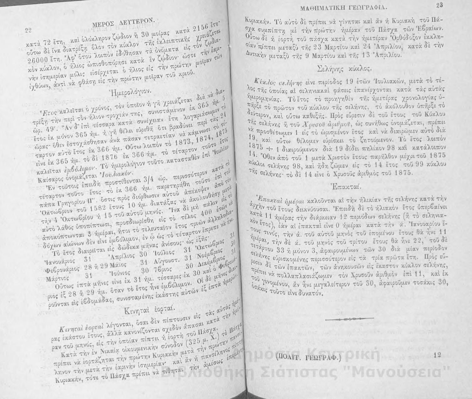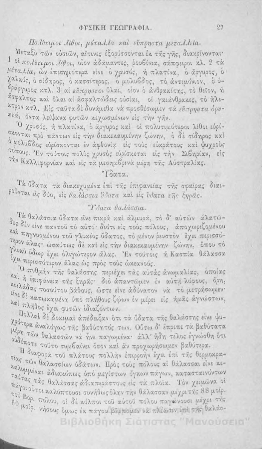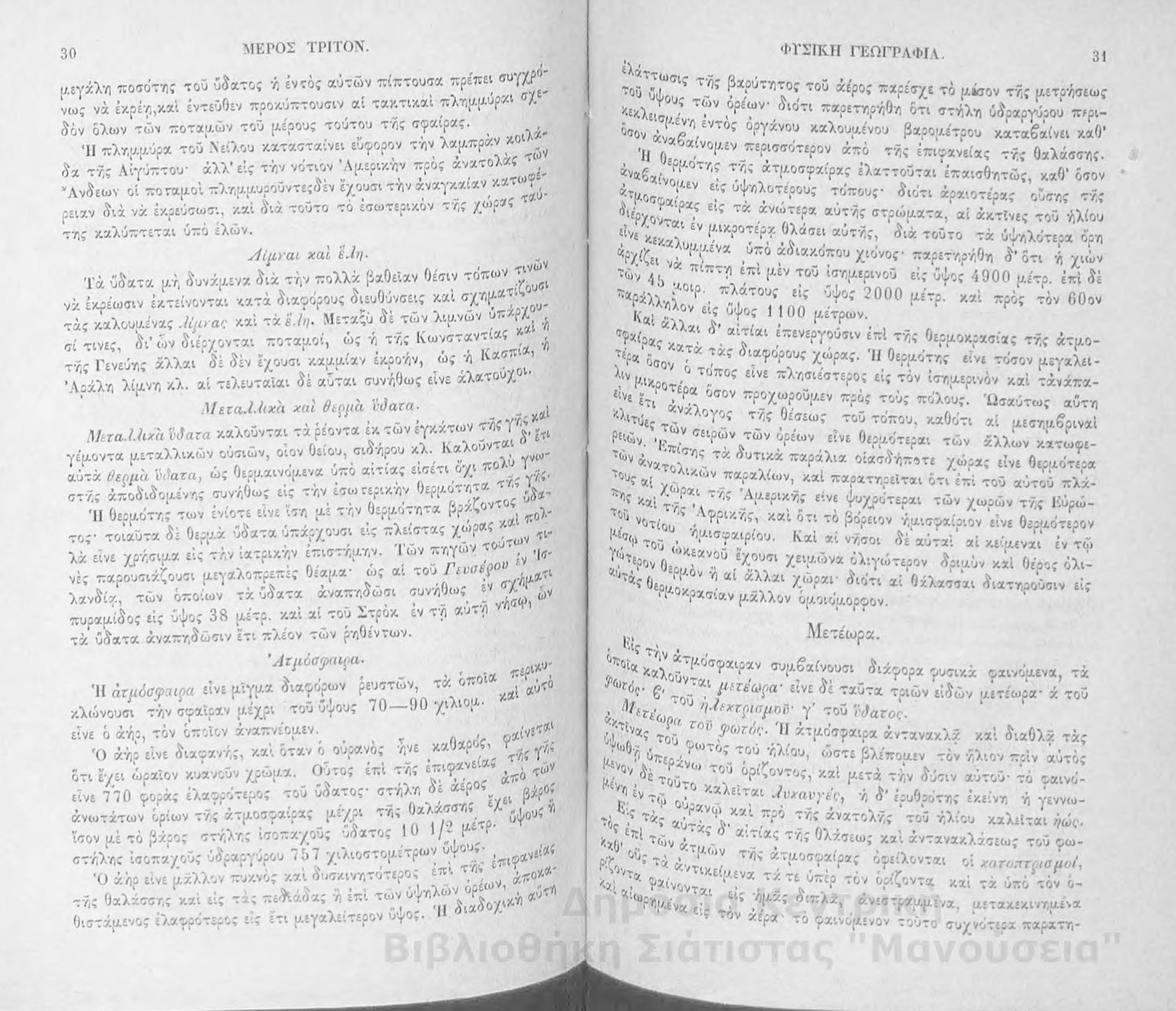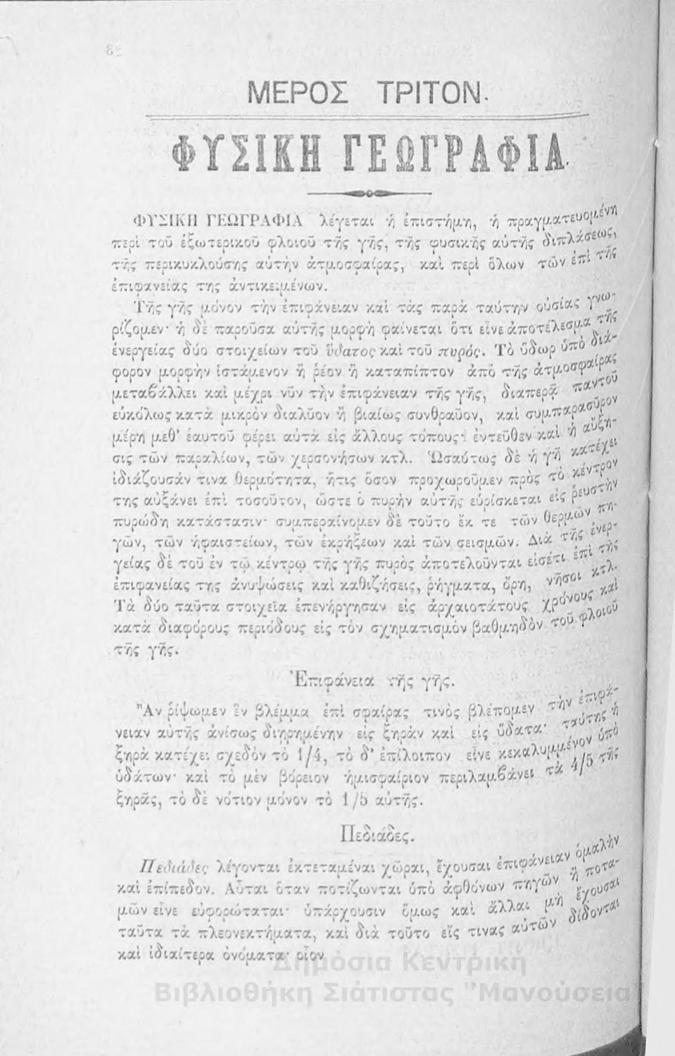 Στοιχειώδης γεωγραφία πολιτική μαθηματική και φυσική: προς χρήσιν της εν τοις ελληνικοίς σχολείοις σπουδαζούσης νεολαίας