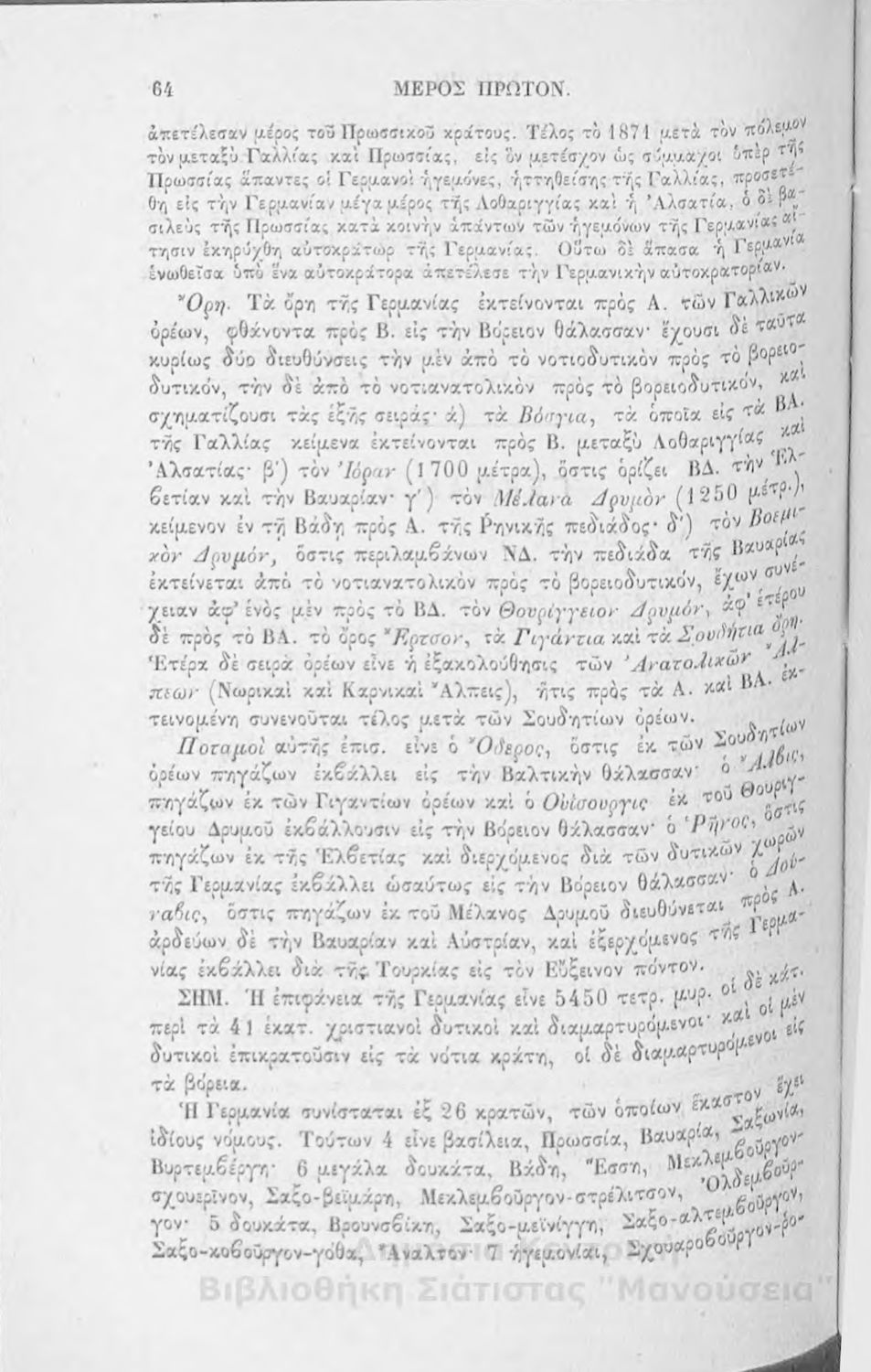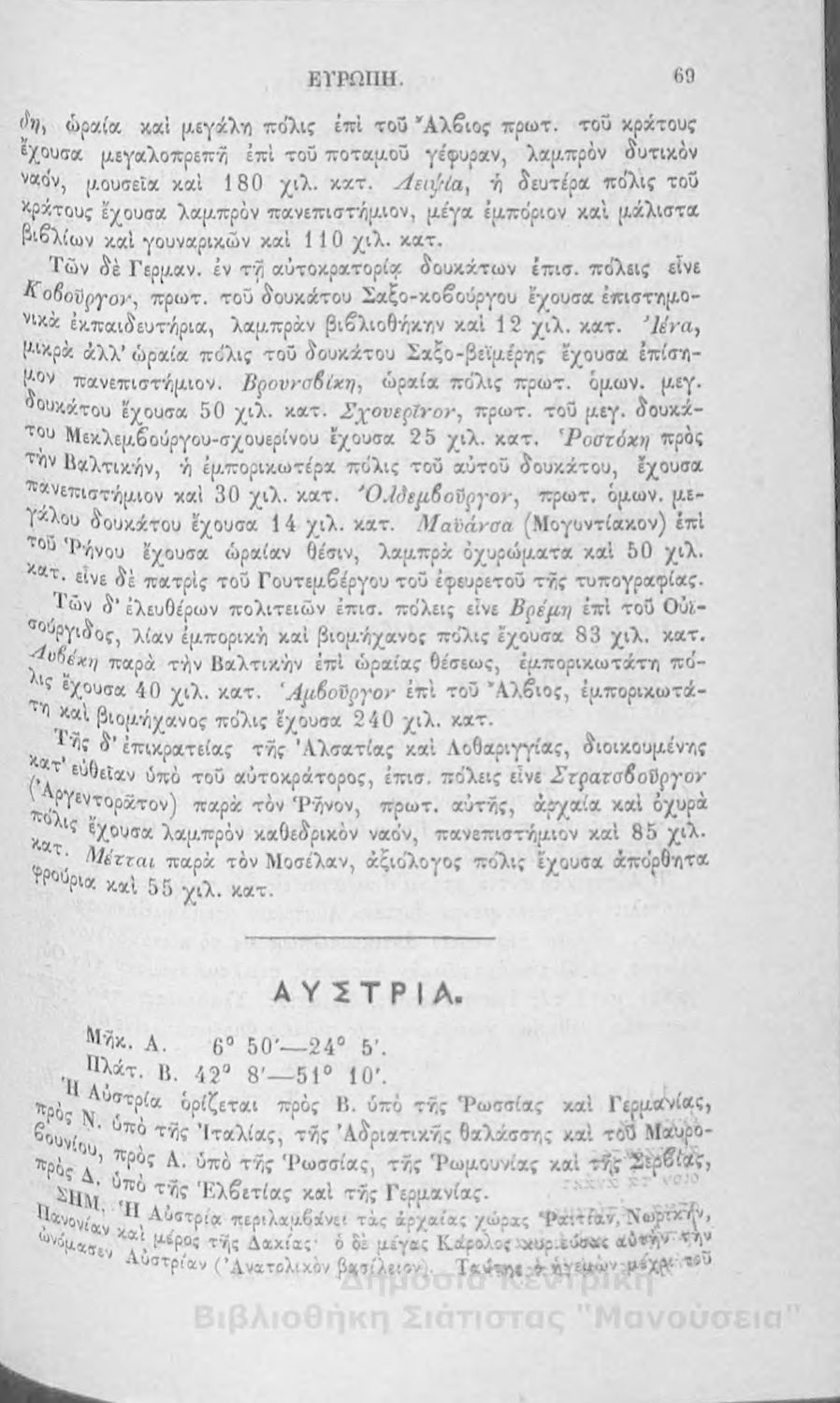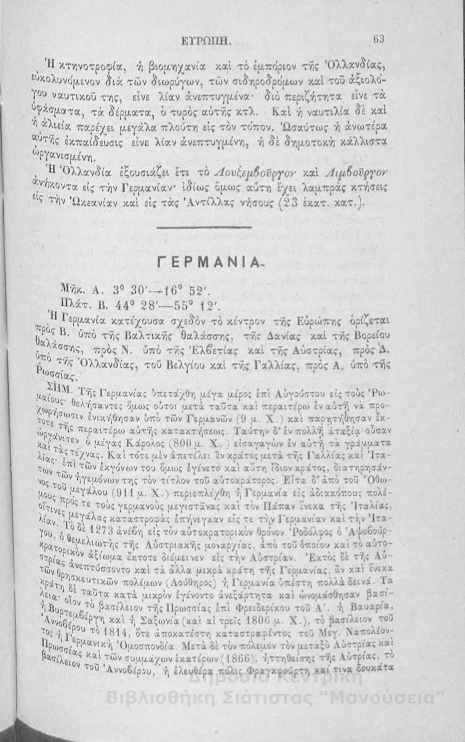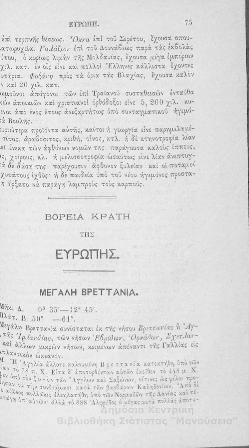 Στοιχειώδης γεωγραφία πολιτική μαθηματική και φυσική: προς χρήσιν της εν τοις ελληνικοίς σχολείοις σπουδαζούσης νεολαίας