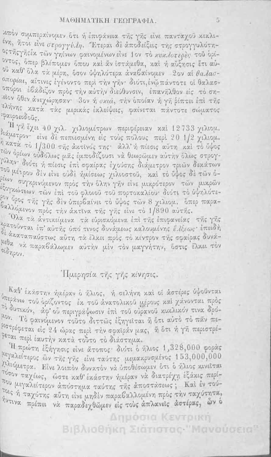 Στοιχειώδης γεωγραφία πολιτική μαθηματική και φυσική: προς χρήσιν της εν τοις ελληνικοίς σχολείοις σπουδαζούσης νεολαίας