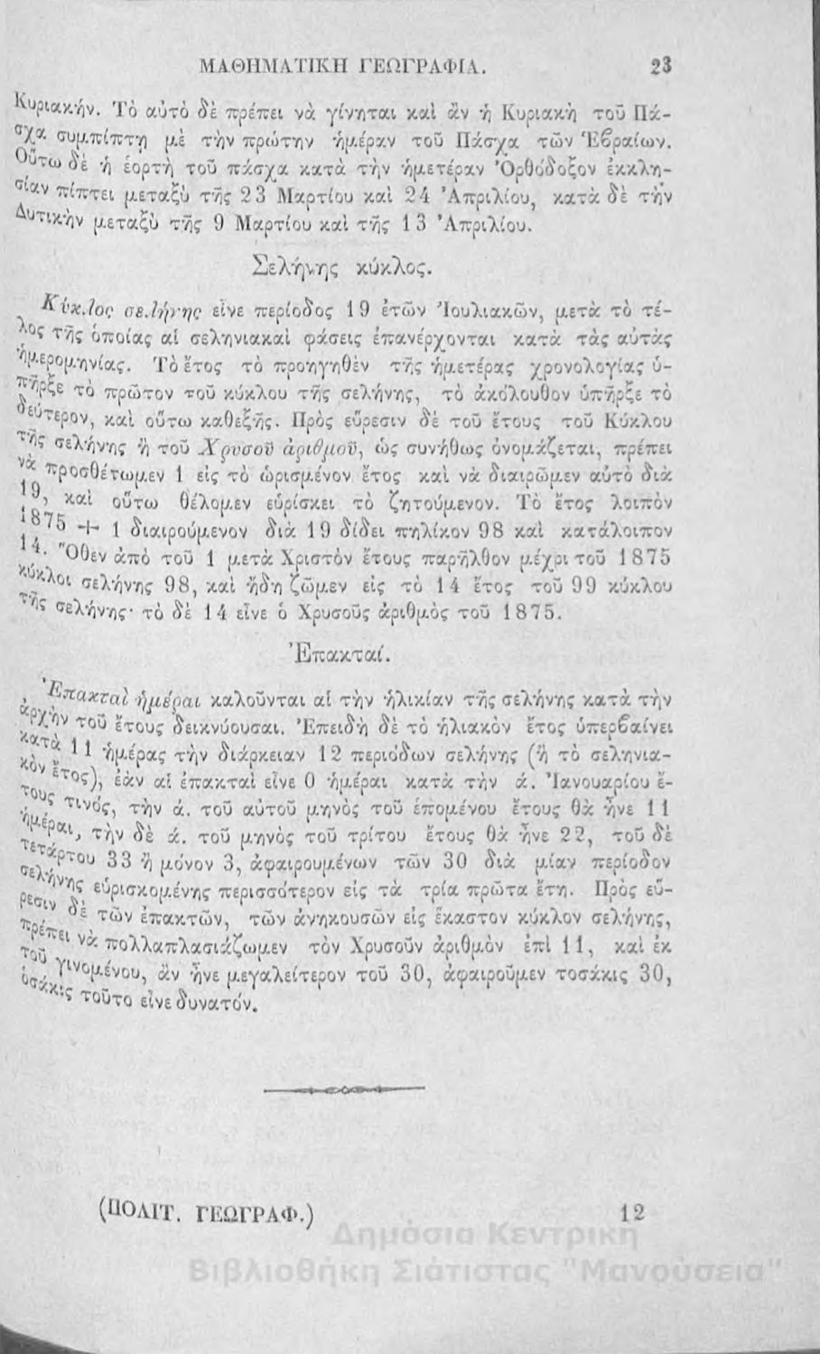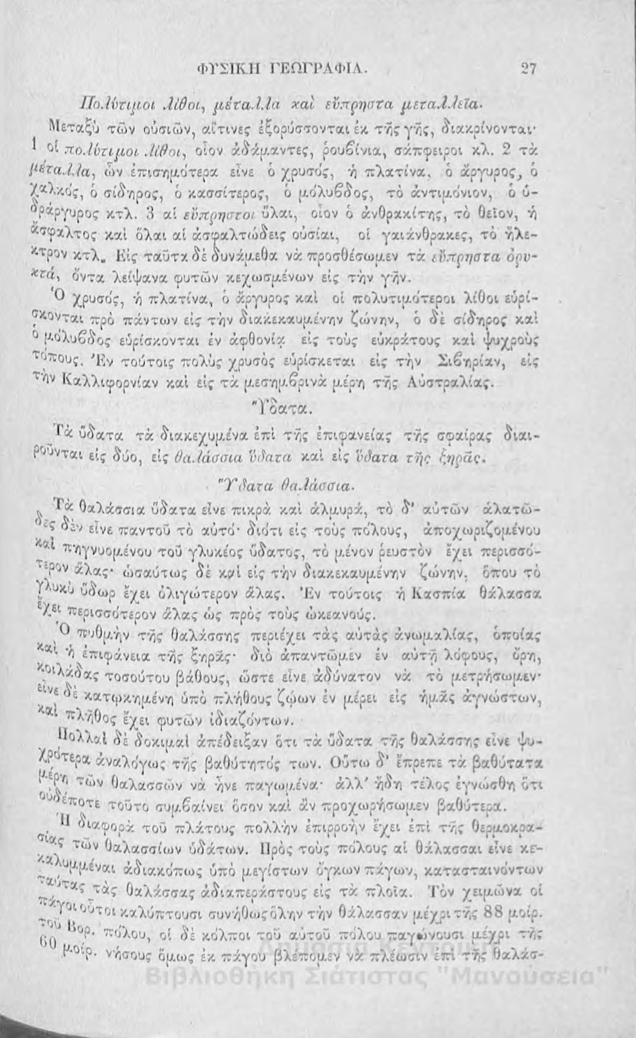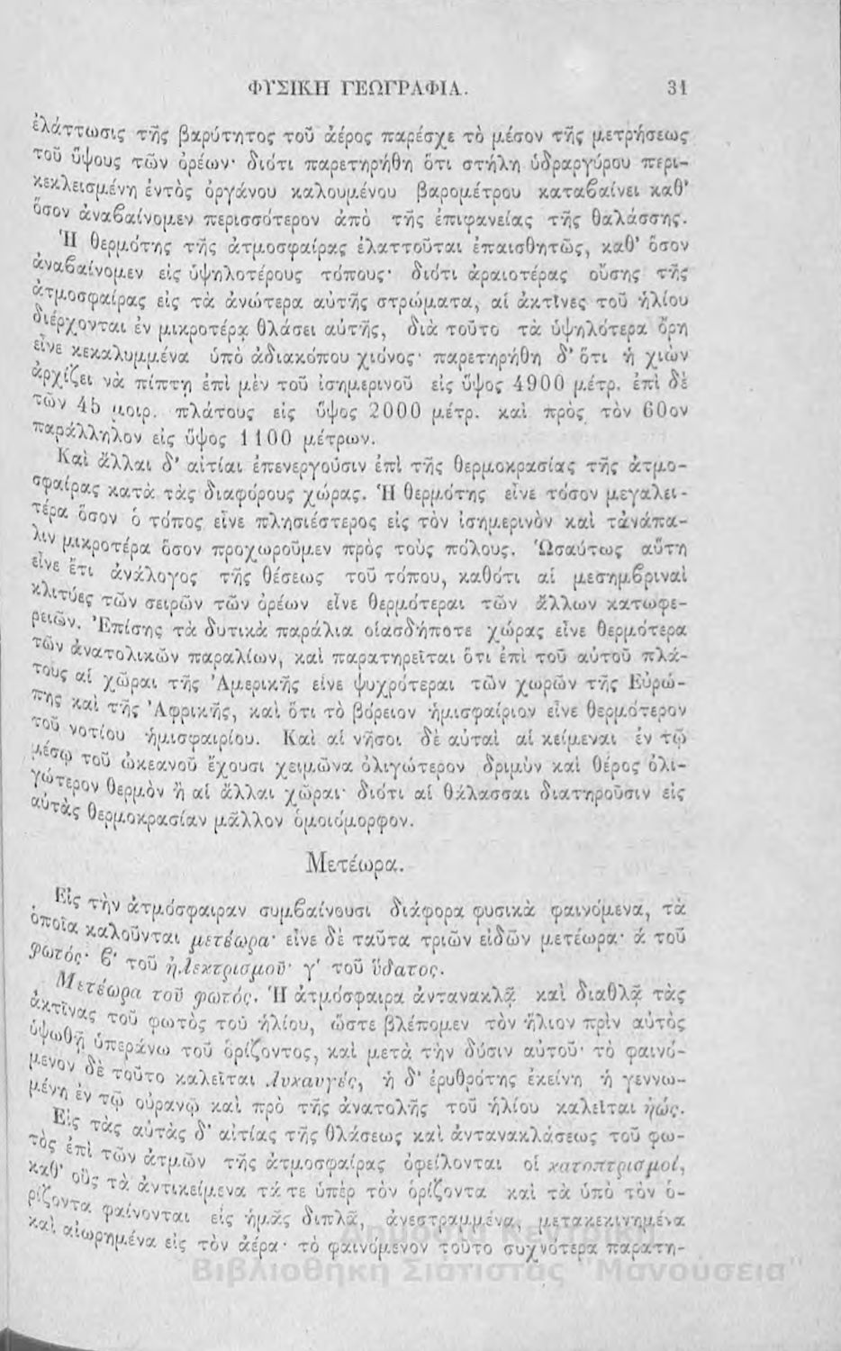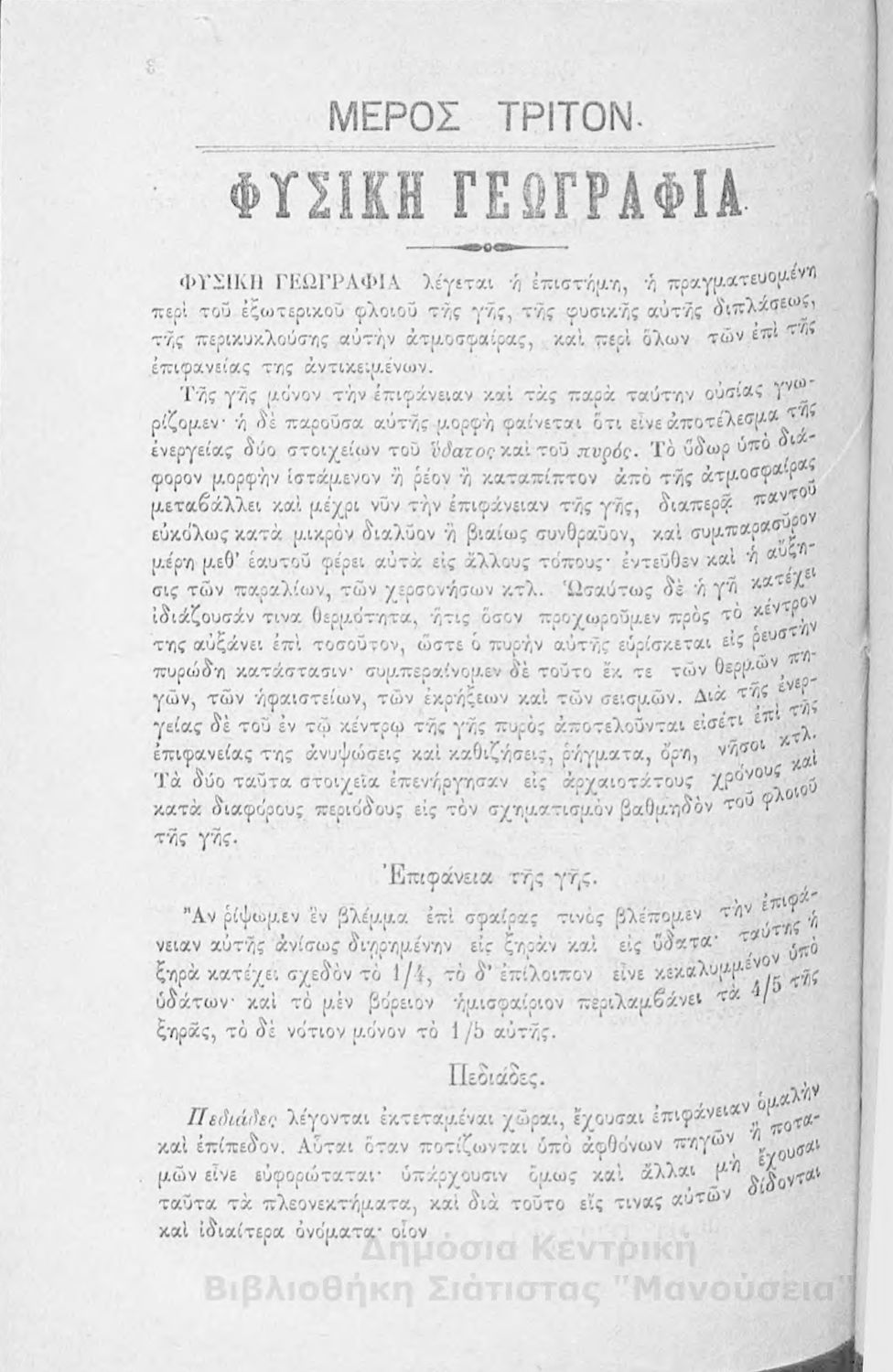 Στοιχειώδης γεωγραφία πολιτική μαθηματική και φυσική: προς χρήσιν της εν τοις ελληνικοίς σχολείοις σπουδαζούσης νεολαίας