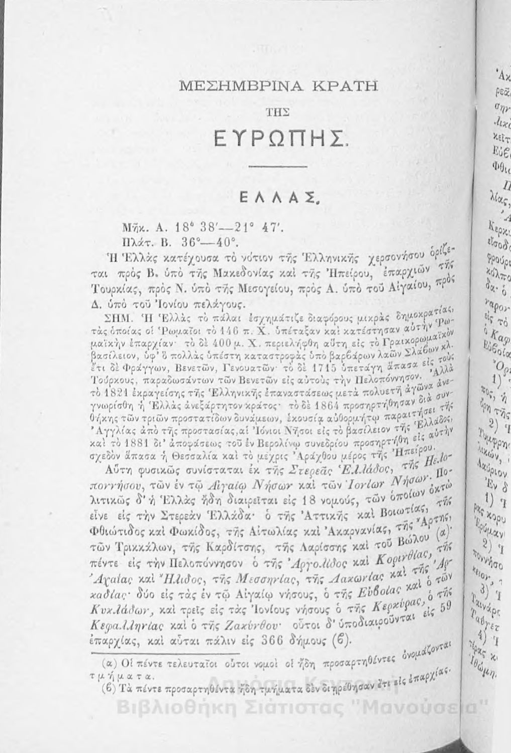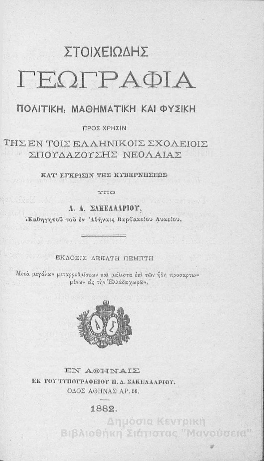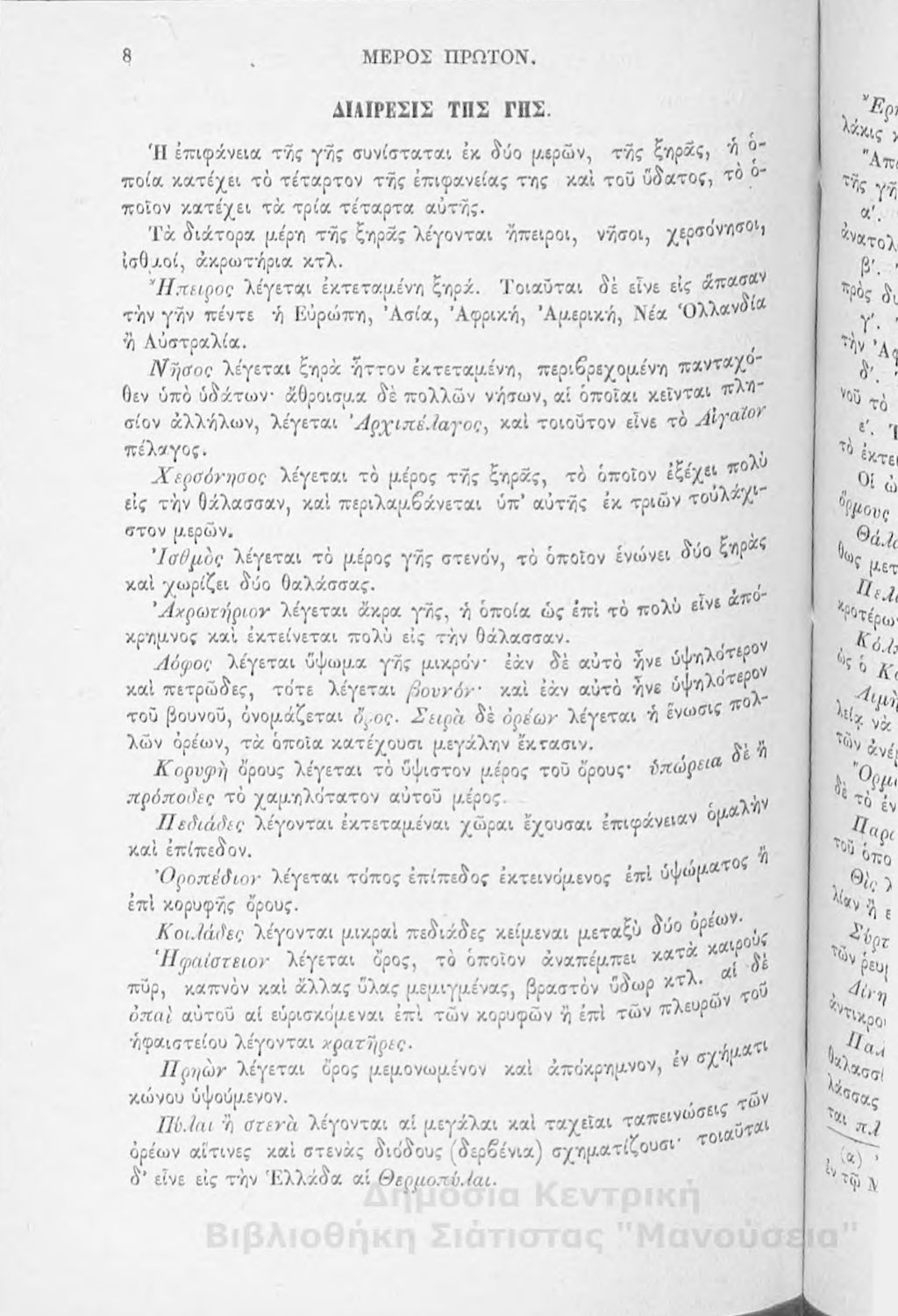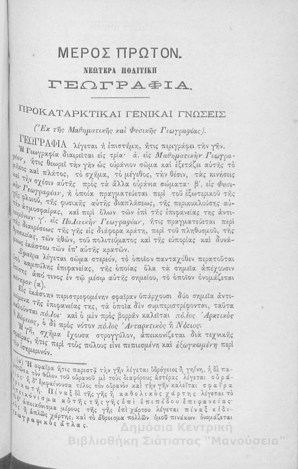 Στοιχειώδης γεωγραφία πολιτική μαθηματική και φυσική: προς χρήσιν της εν τοις ελληνικοίς σχολείοις σπουδαζούσης νεολαίας