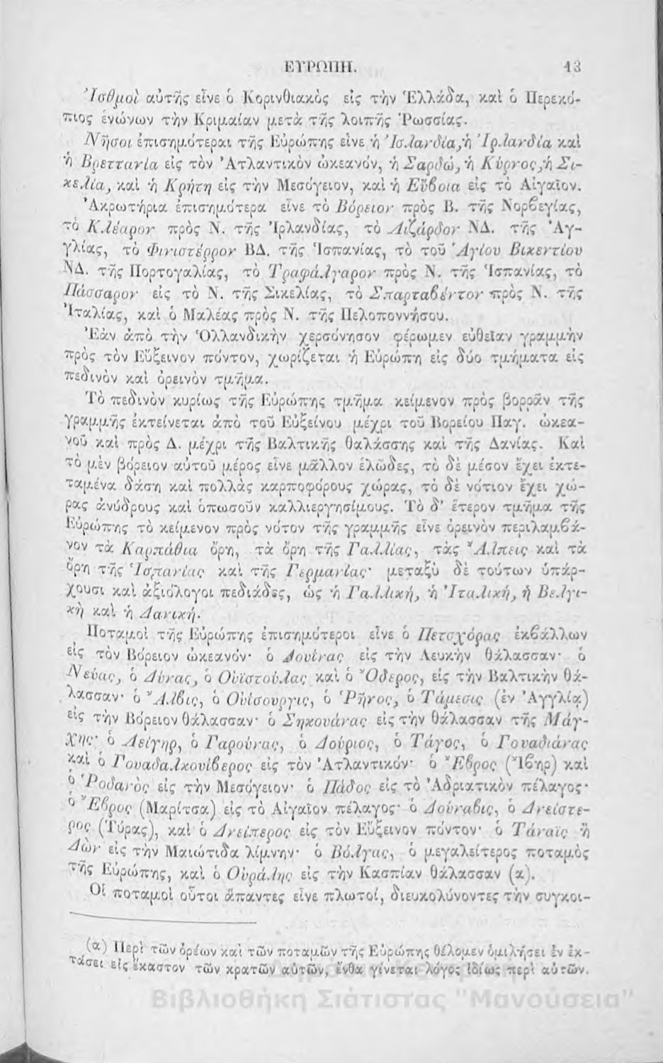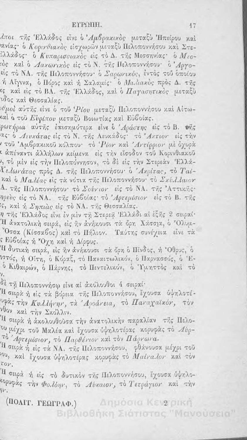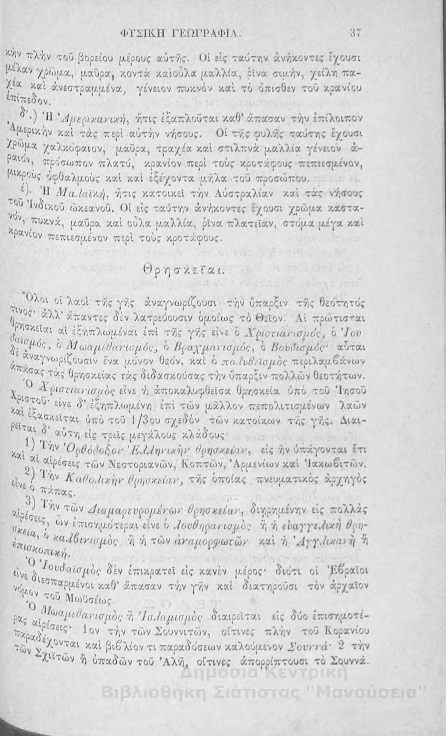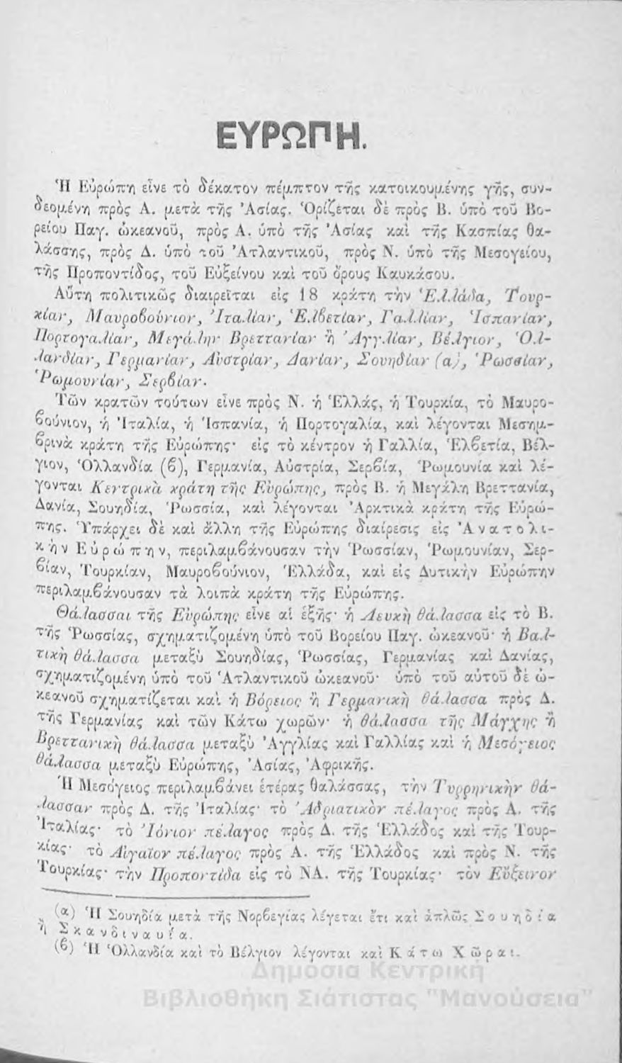 Στοιχειώδης γεωγραφία πολιτική μαθηματική και φυσική: προς χρήσιν της εν τοις ελληνικοίς σχολείοις σπουδαζούσης νεολαίας