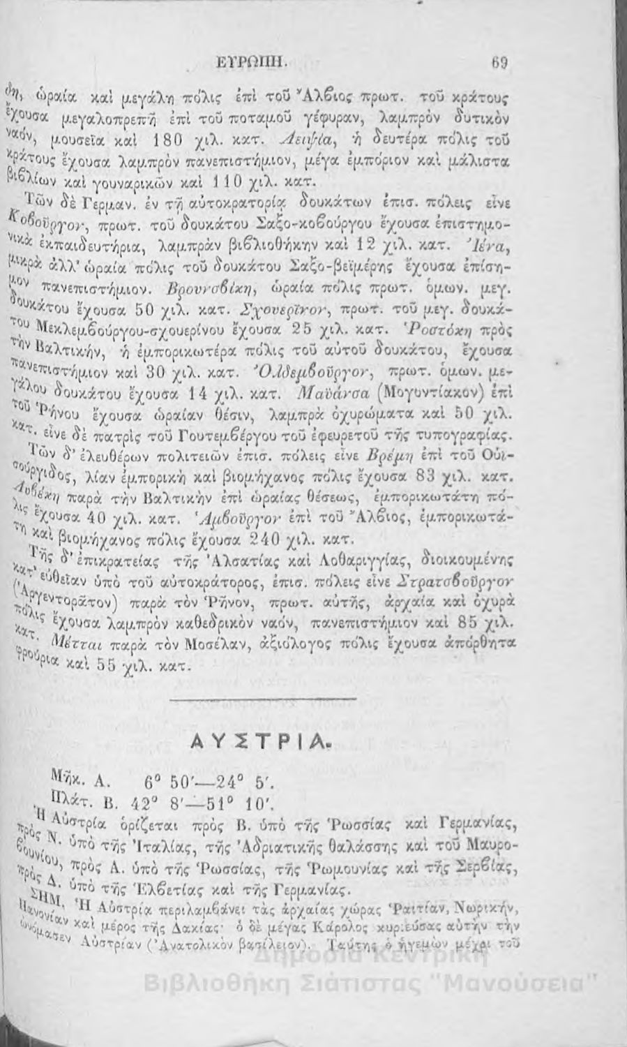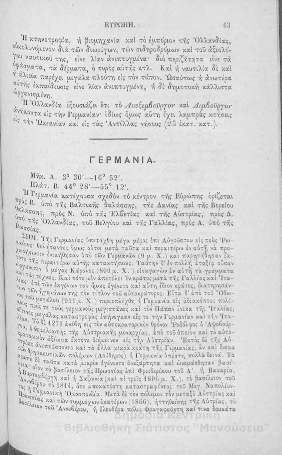 Στοιχειώδης γεωγραφία πολιτική μαθηματική και φυσική: προς χρήσιν της εν τοις ελληνικοίς σχολείοις σπουδαζούσης νεολαίας