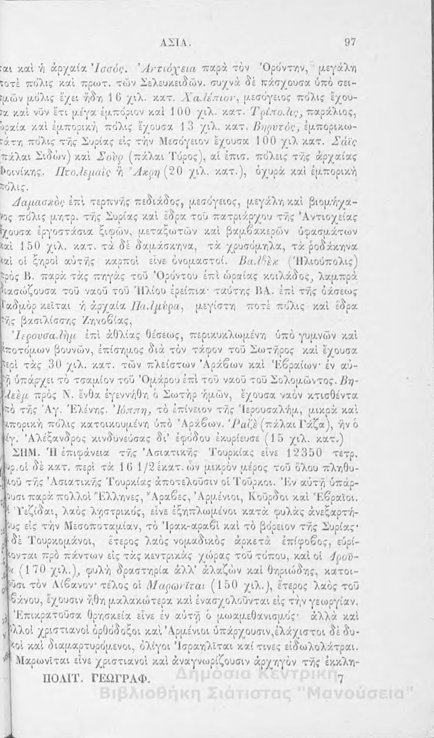 Σχολικό εγχειρίδιο Γεωγραφίας για τα Ελληνικά Σχολεία που περιλαμβάνει στοιχεία κοσμογραφίας, μαθηματικής, και φυσικής γεωγραφίας και εξετάζει ενδεικτικά κράτη από τις πέντε ηπείρους από πολιτική, γεωφυσική ...