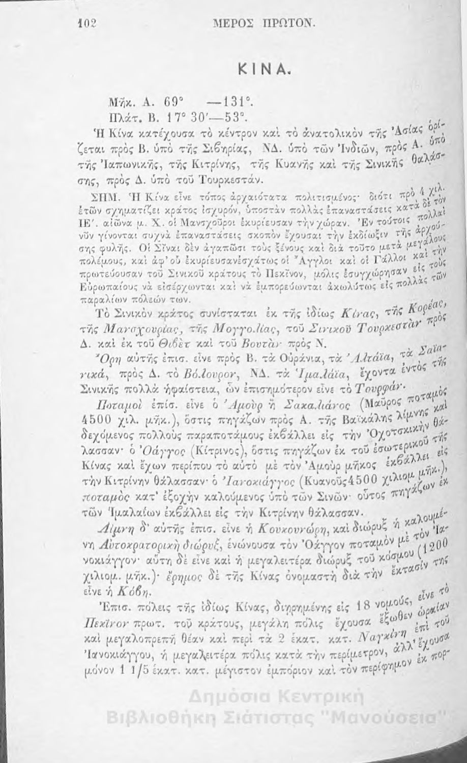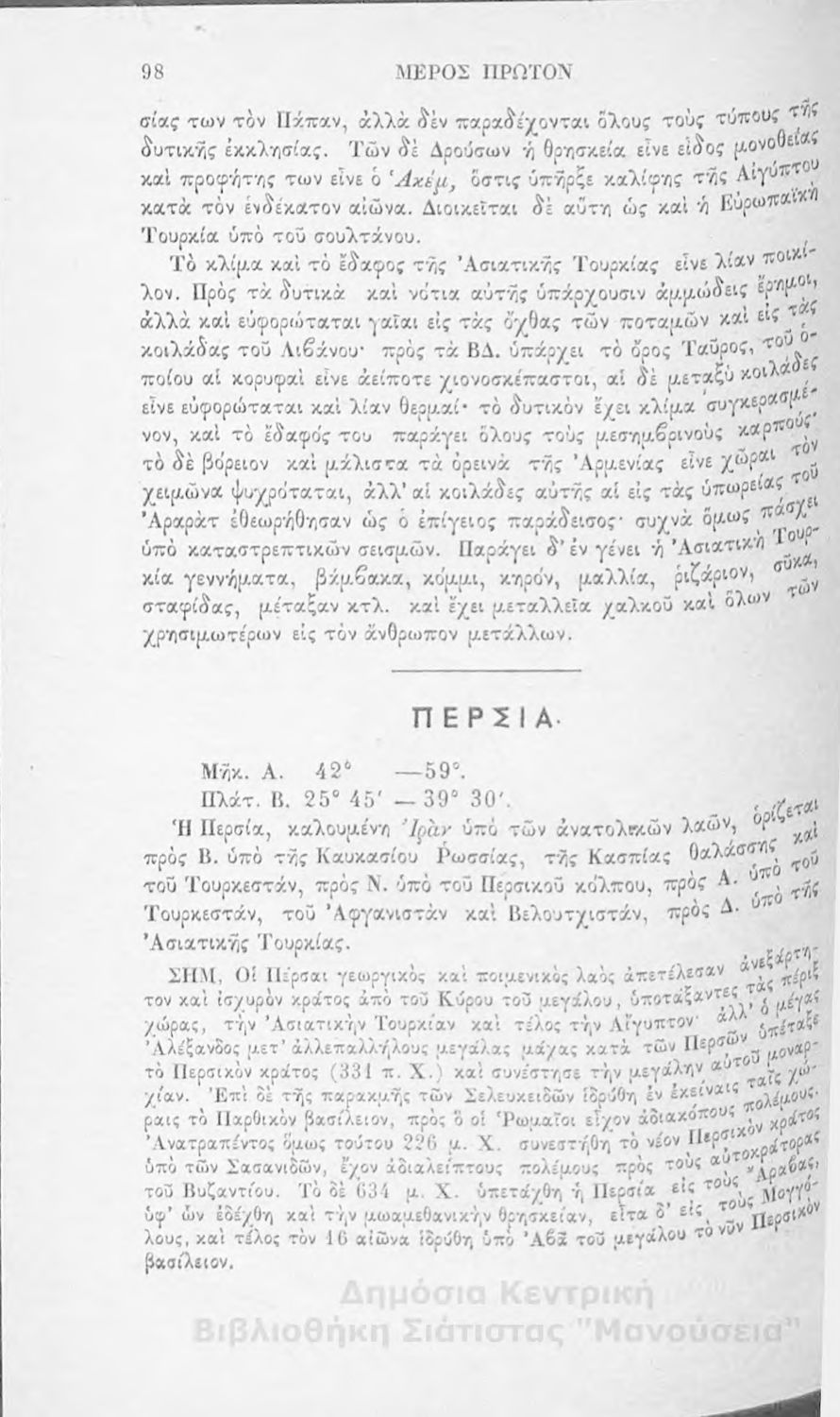 Στοιχειώδης γεωγραφία πολιτική μαθηματική και φυσική: προς χρήσιν της εν τοις ελληνικοίς σχολείοις σπουδαζούσης νεολαίας