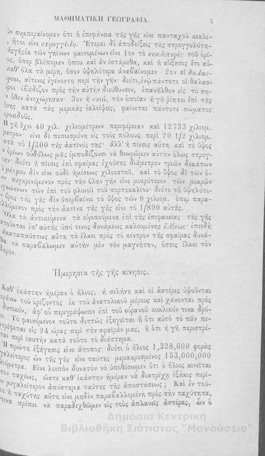 Στοιχειώδης γεωγραφία πολιτική μαθηματική και φυσική: προς χρήσιν της εν τοις ελληνικοίς σχολείοις σπουδαζούσης νεολαίας