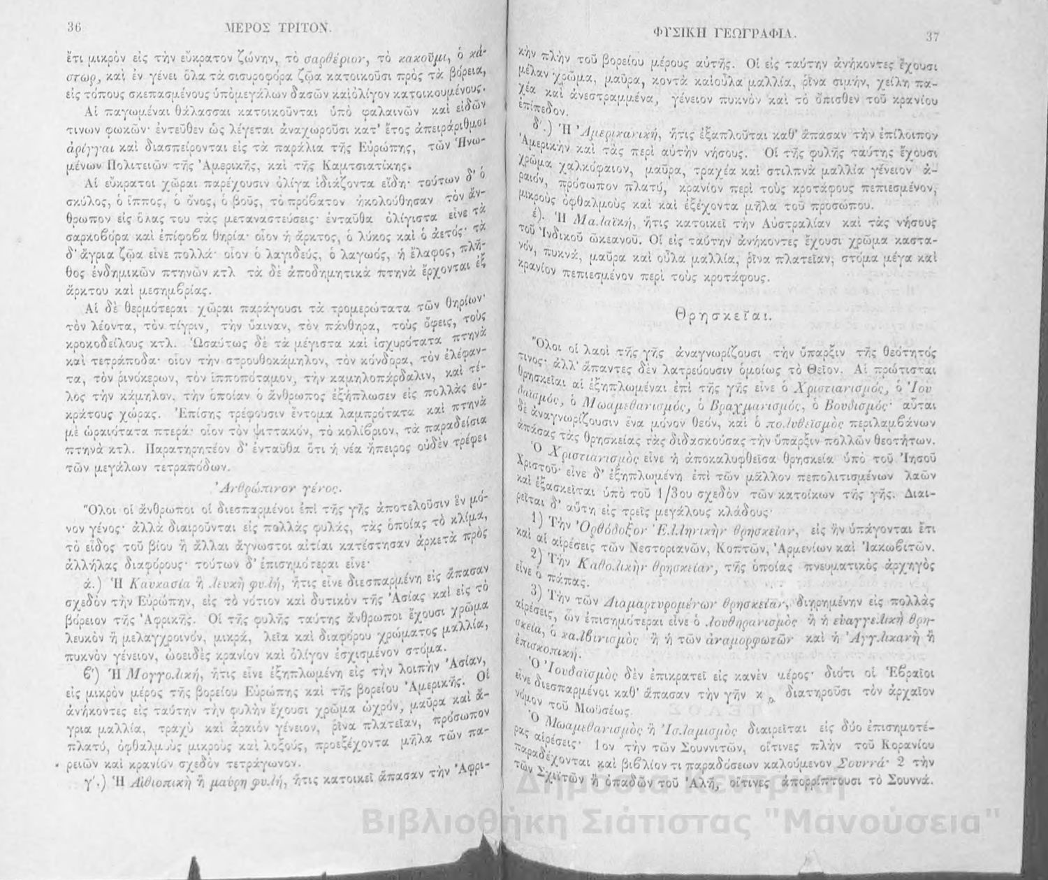 Στοιχειώδης γεωγραφία πολιτική μαθηματική και φυσική: προς χρήσιν της εν τοις ελληνικοίς σχολείοις σπουδαζούσης νεολαίας