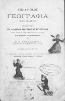 Σχολικό εγχειρίδιο Γεωγραφίας για τα Ελληνικά Σχολεία που περιλαμβάνει εισαγωγή στις βασικές έννοιες και ορισμούς της επιστήμης, και στοιχεία μαθηματικής, φυσικής και πολιτικής γεωγραφίας των πέντε ηπείρων.