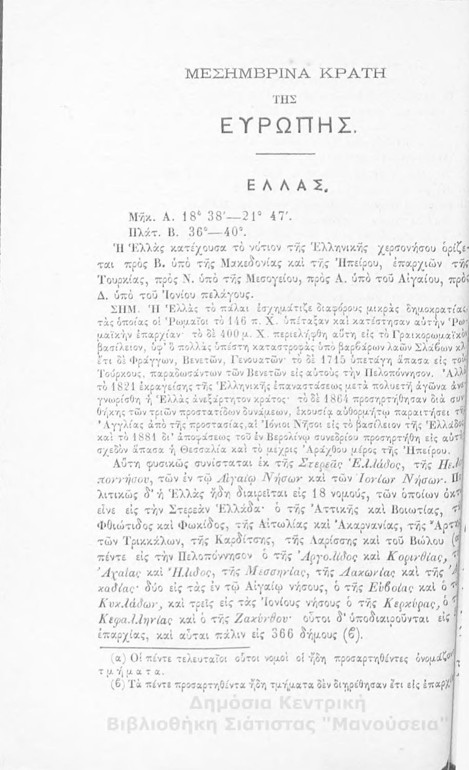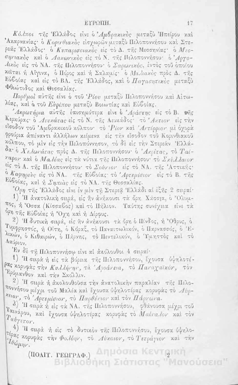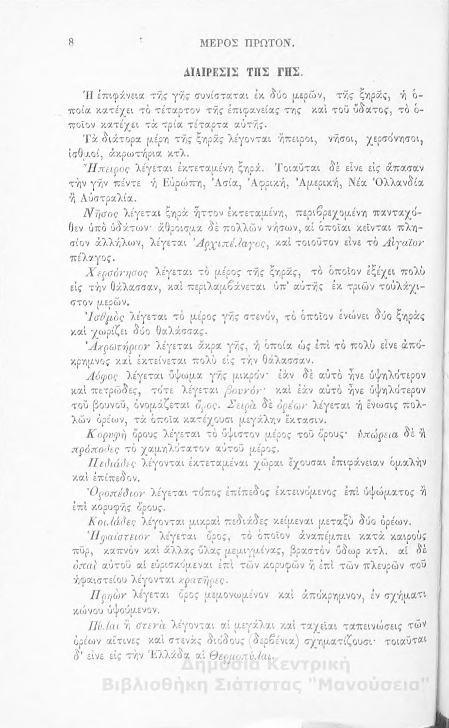 Στοιχειώδης γεωγραφία πολιτική μαθηματική και φυσική: προς χρήσιν της εν τοις ελληνικοίς σχολείοις σπουδαζούσης νεολαίας