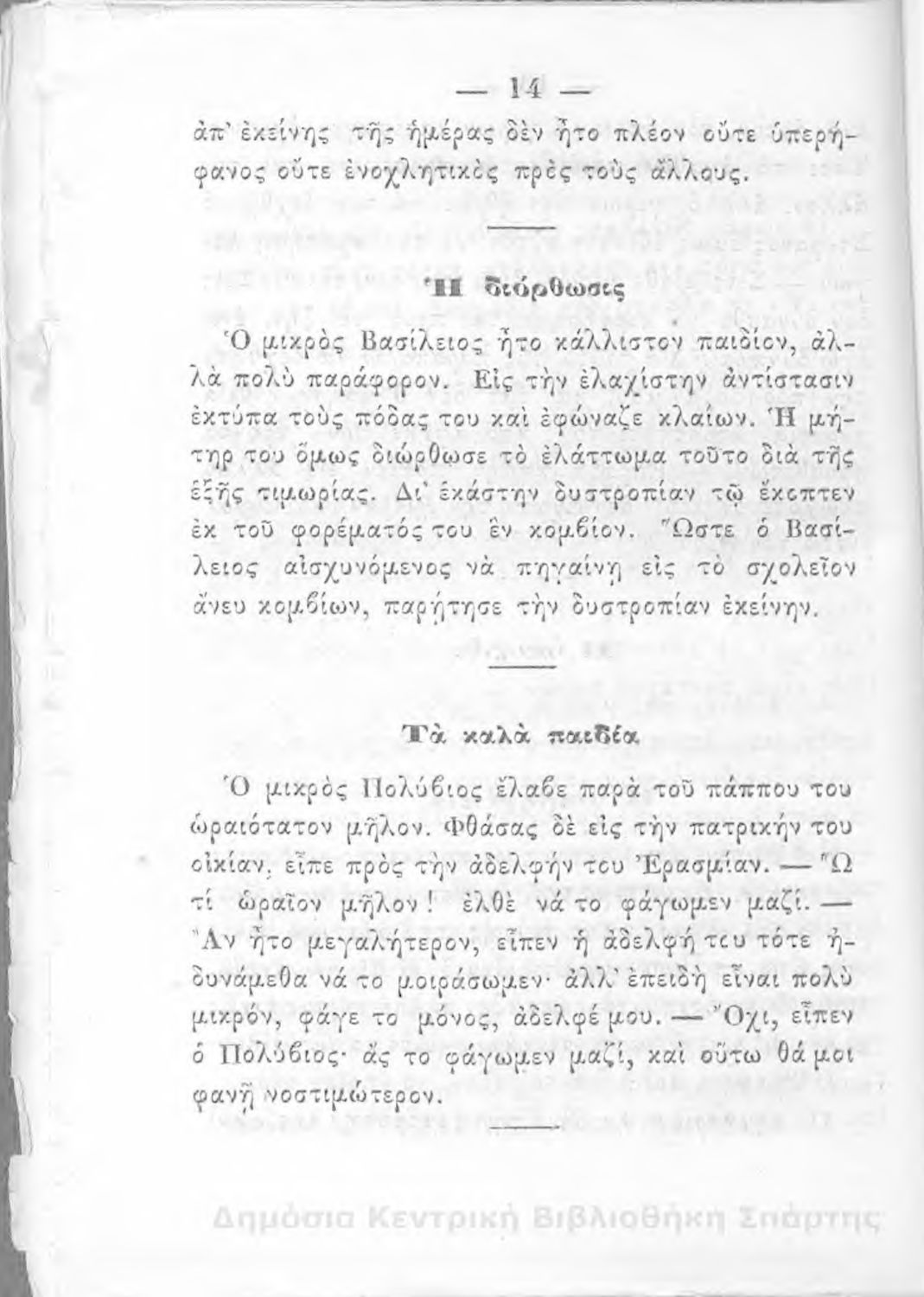 Βαθμίδα εκπαίδευσης: Πρωτοβάθμια Μάθημα: Νέα Ελληνικά Γλώσσα: Καθαρεύουσα |