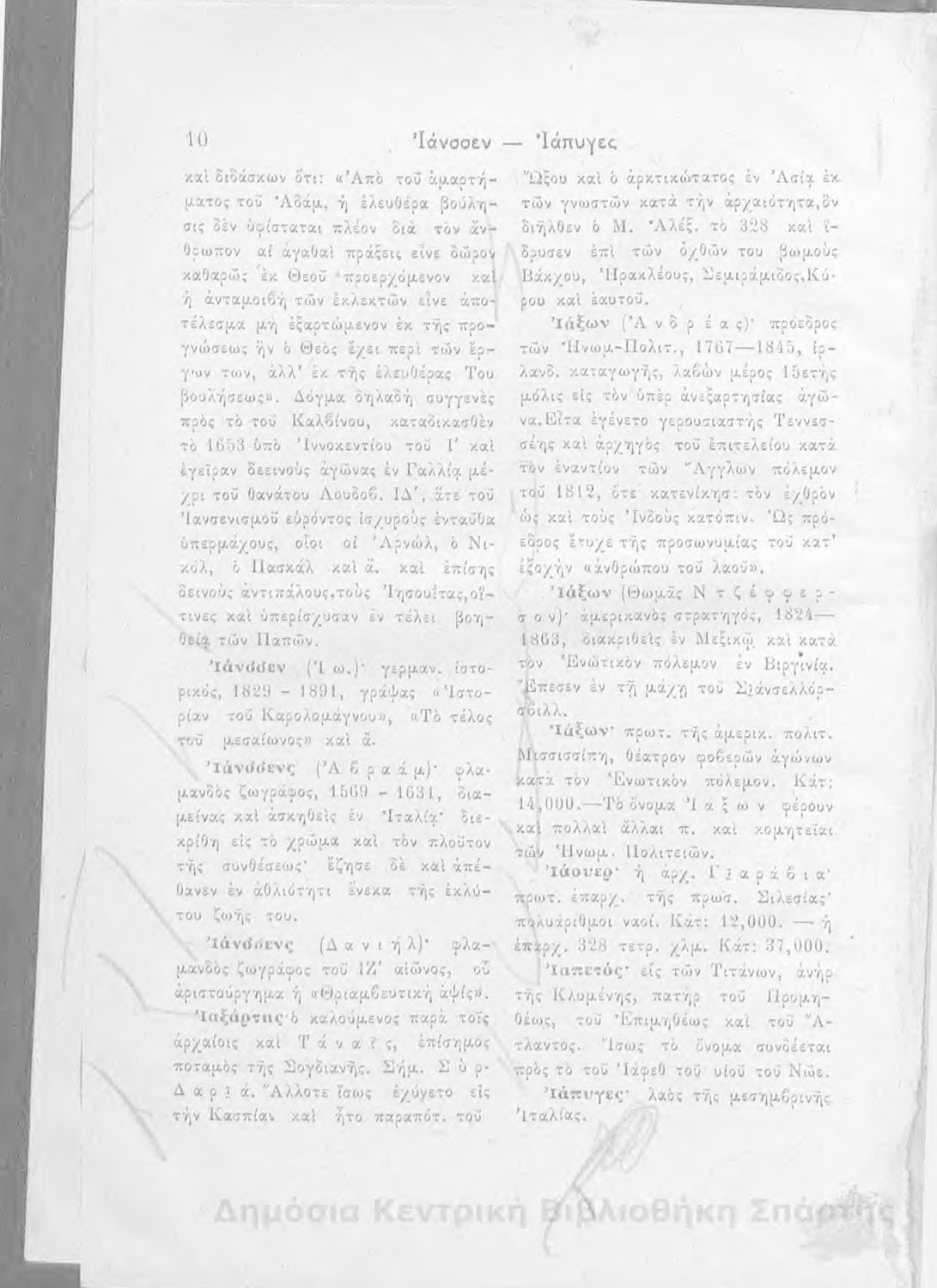 Κωδικός αναγνώρισης: 92-79996 Τίτλος: Λεξικόν Ιστορίας-Γεωγραφίας : βιογραφίας καί μυθολογίας Συγγραφέας: M. N. Bouillet, Ηλίας Ι. Οικονομόπουλος (μετ.) Μέγεθος και υπόστρωμα: Μαθητικό βοήθημα. |