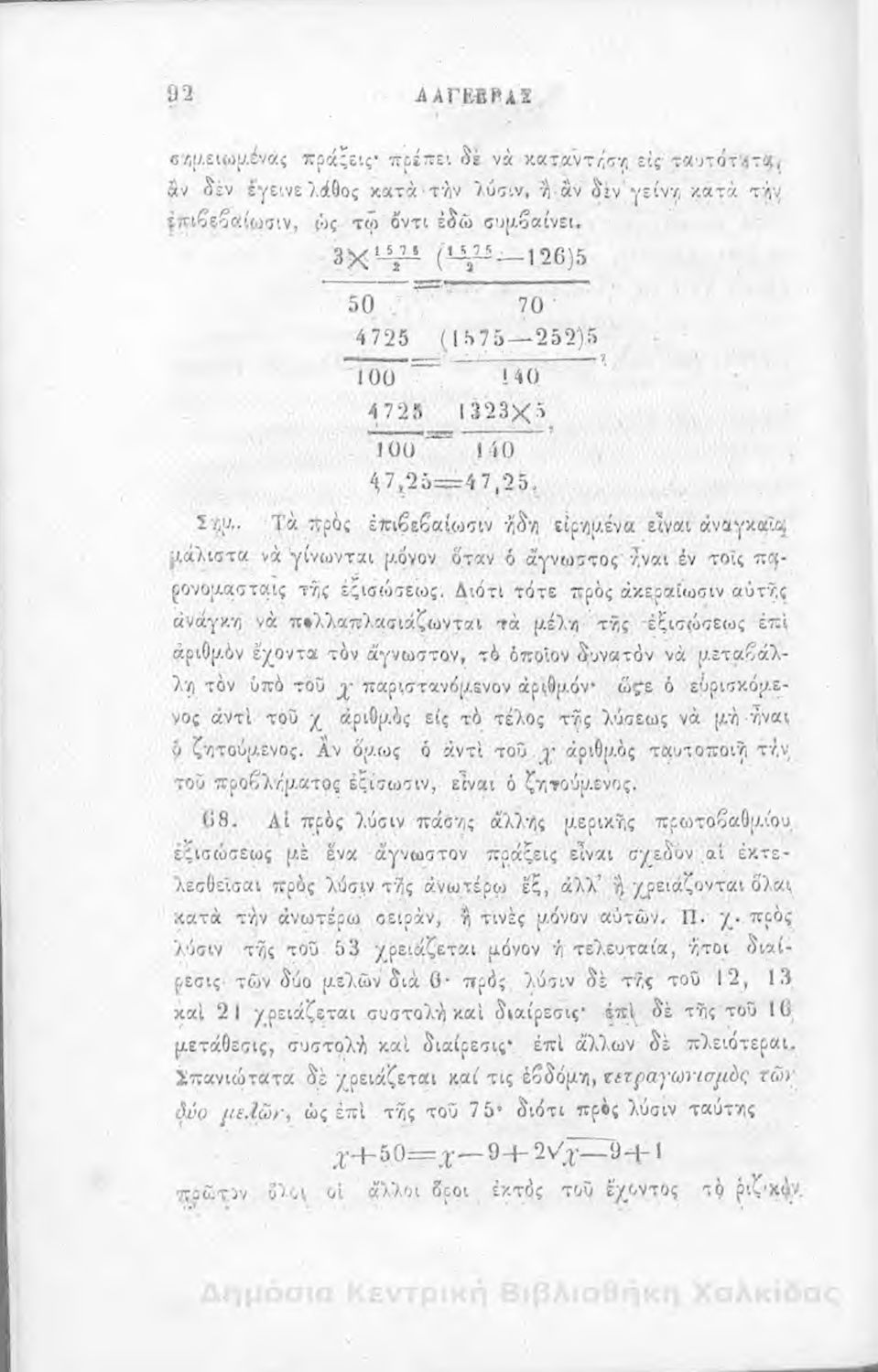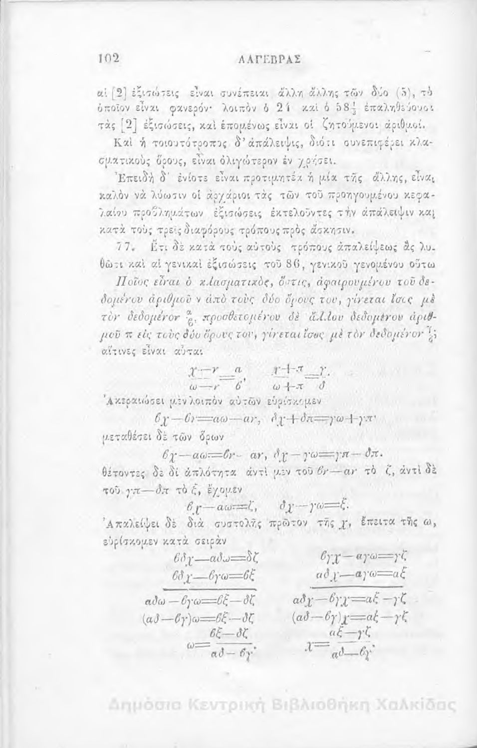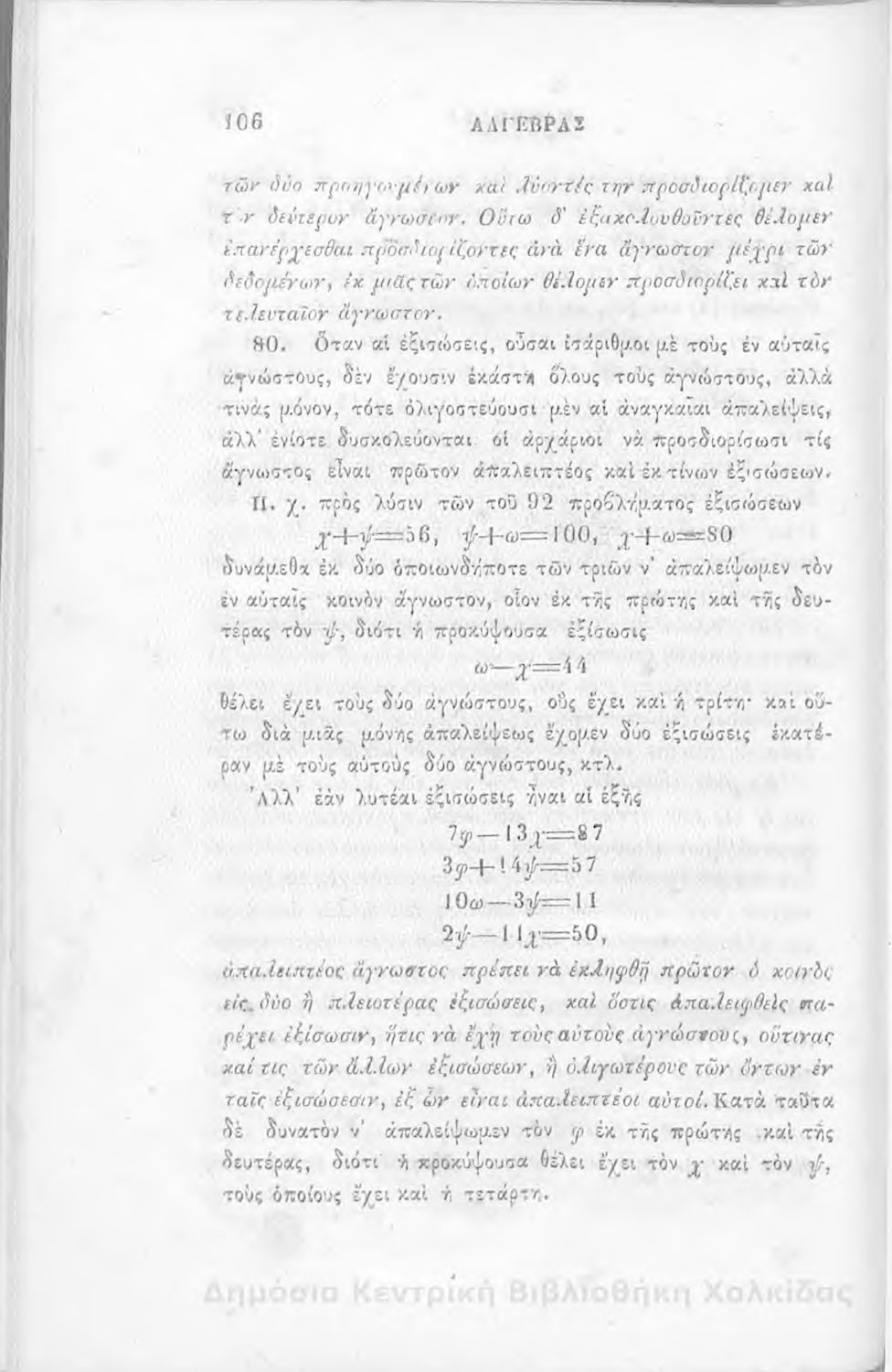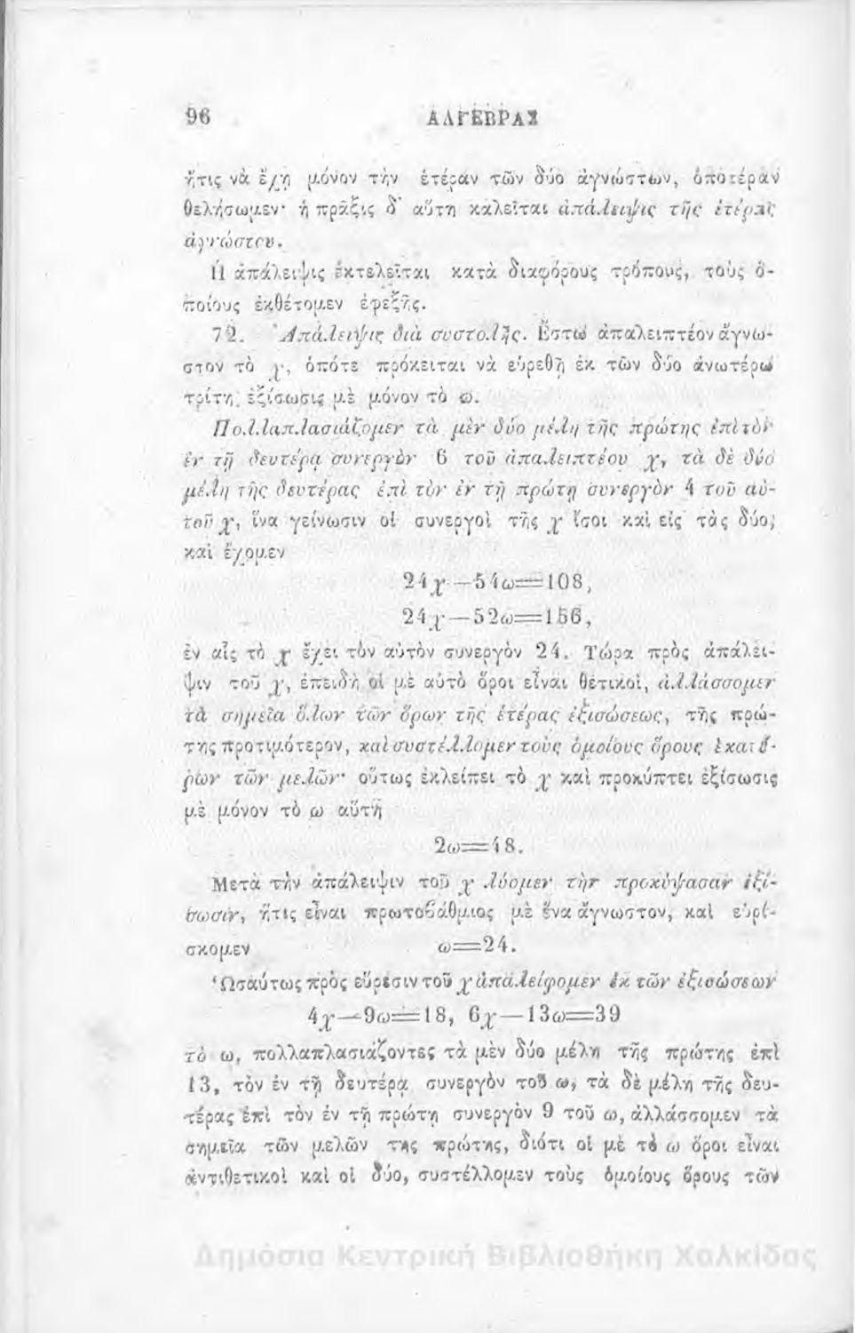 Άλγεβρας μαθήματα : τα του πρώτου και του δευτέρου βαθμού. Προς χρήσιν των μαθητευόντων εν τοις γυμνασίοις της Ελλάδος