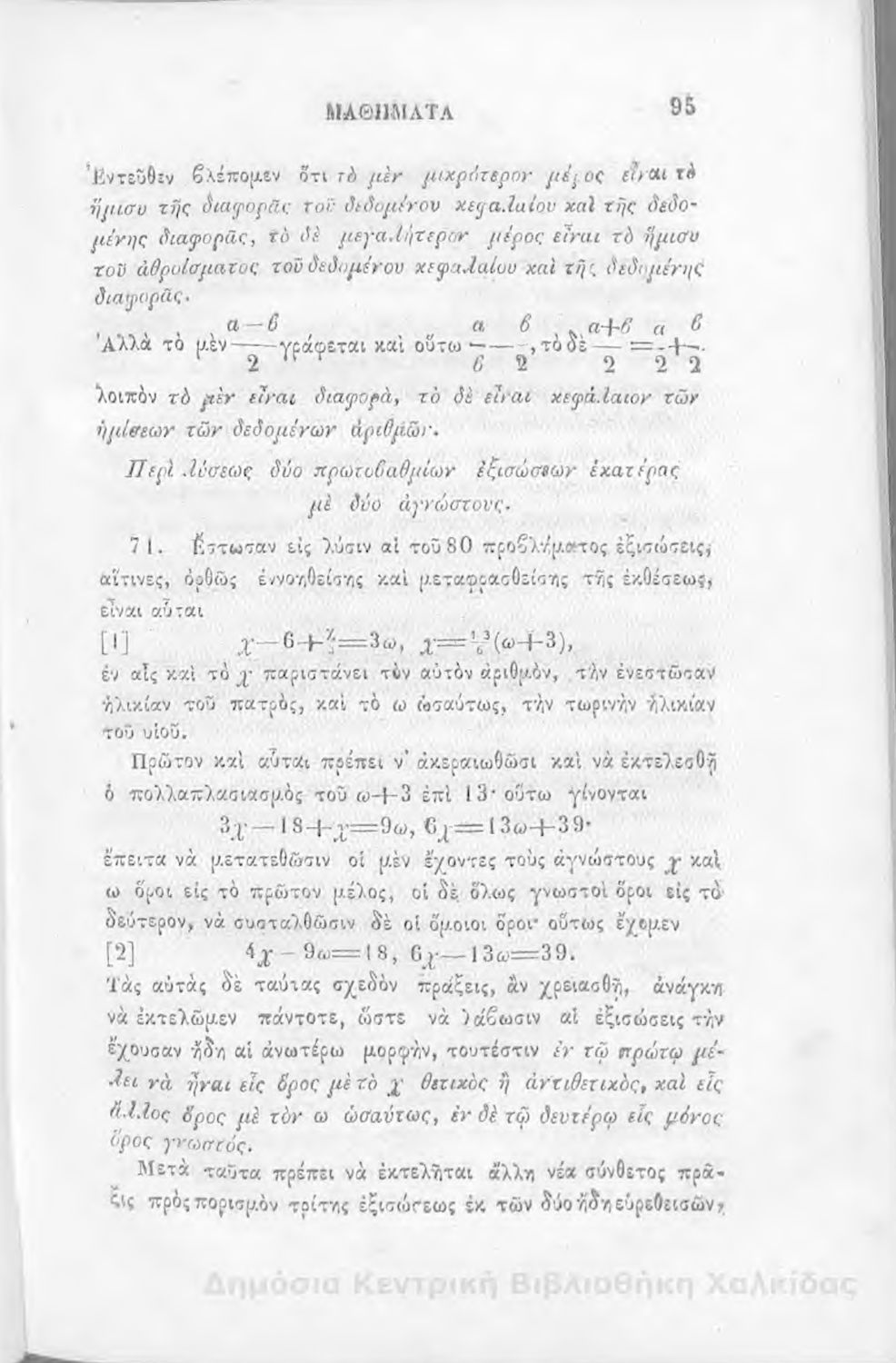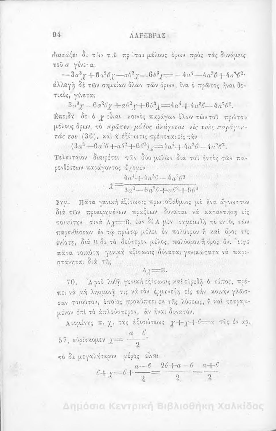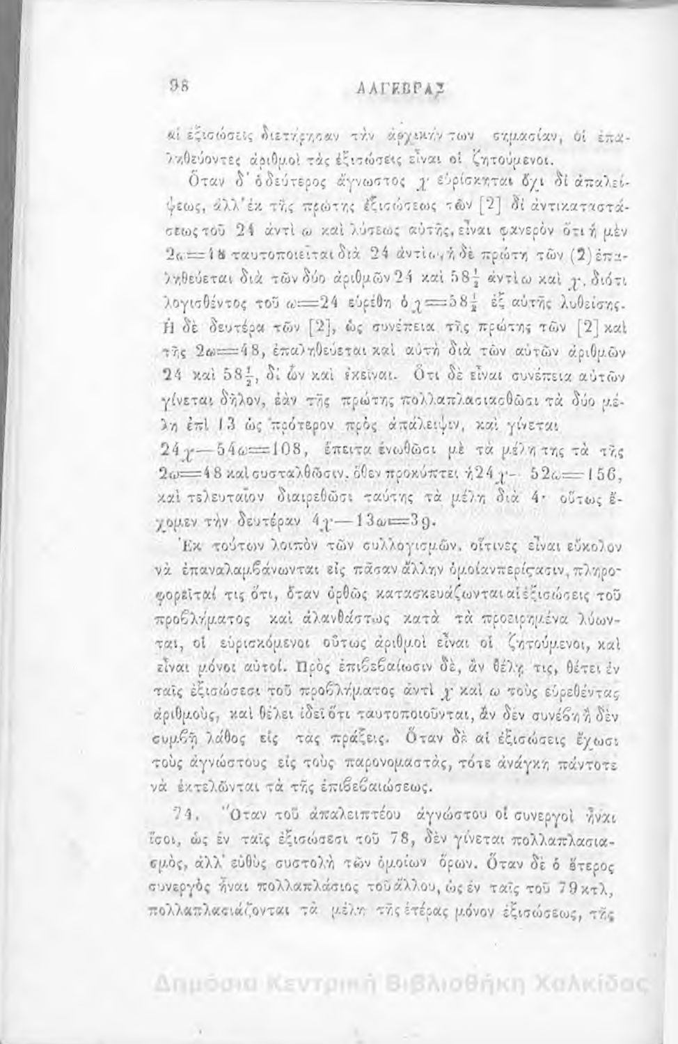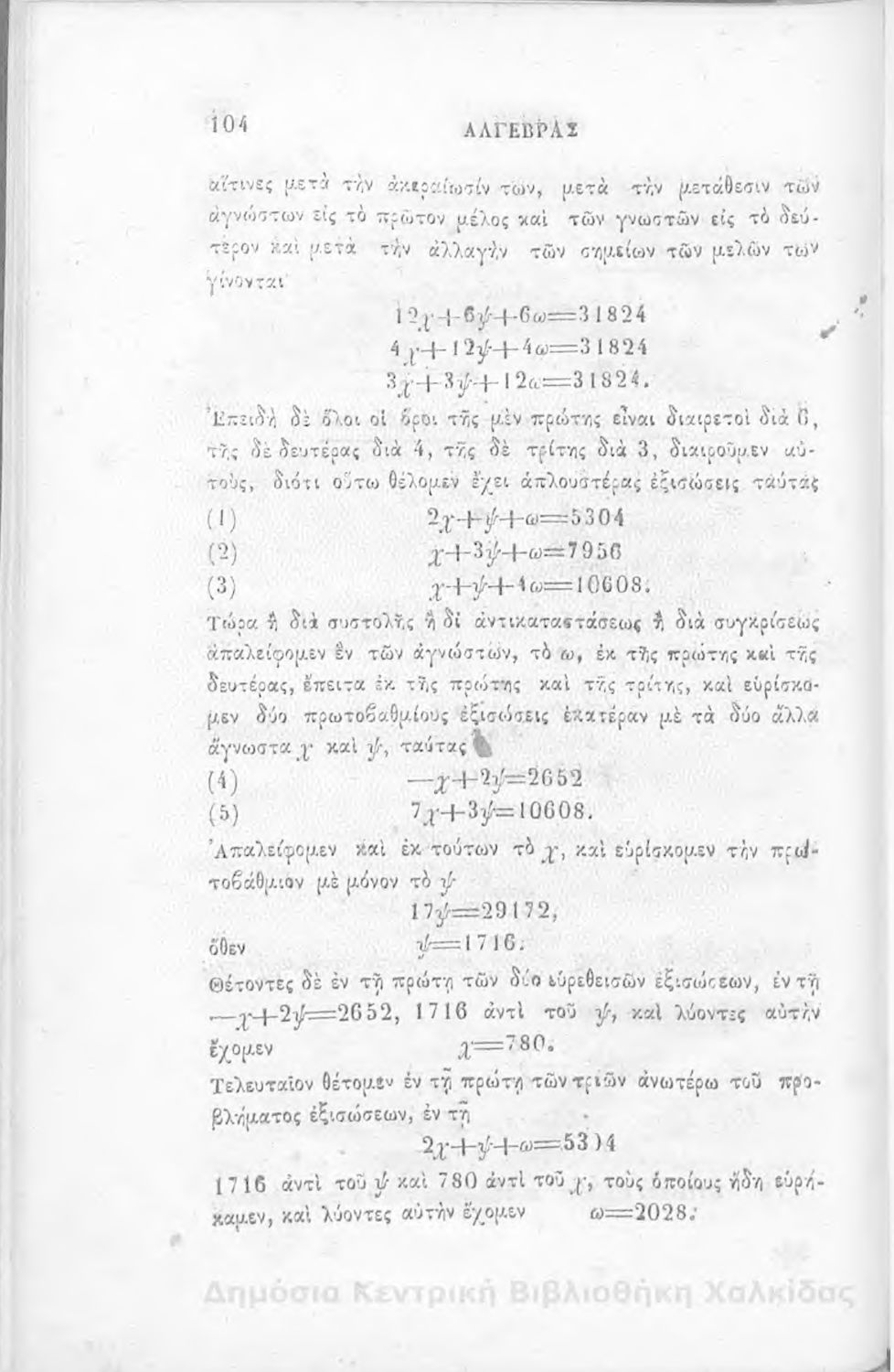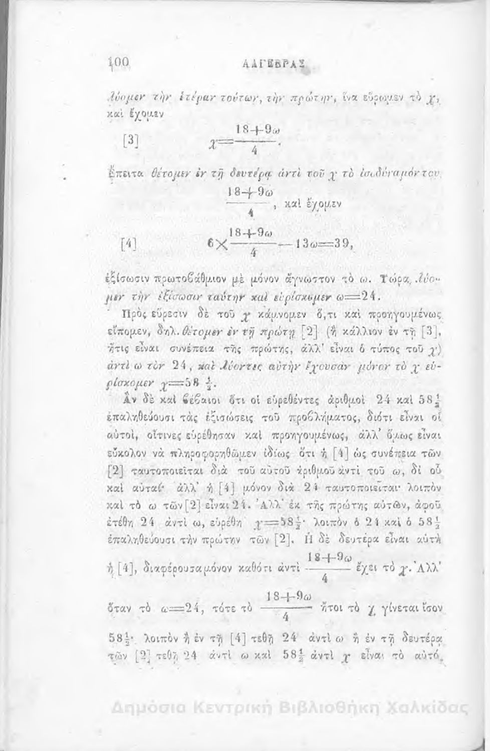 Άλγεβρας μαθήματα : τα του πρώτου και του δευτέρου βαθμού. Προς χρήσιν των μαθητευόντων εν τοις γυμνασίοις της Ελλάδος