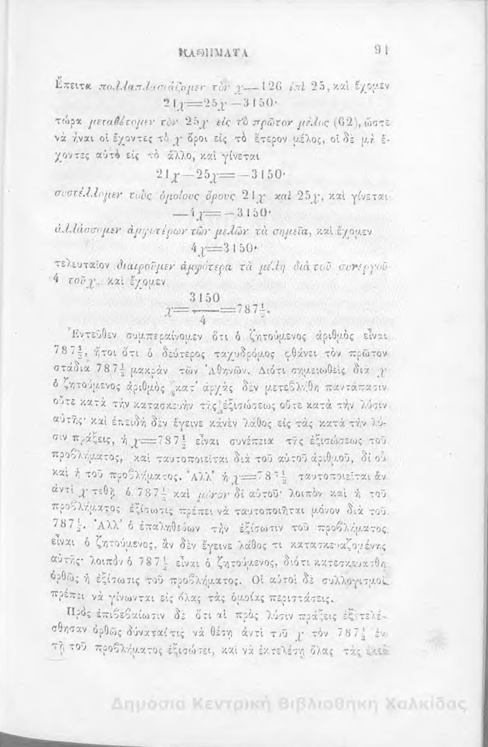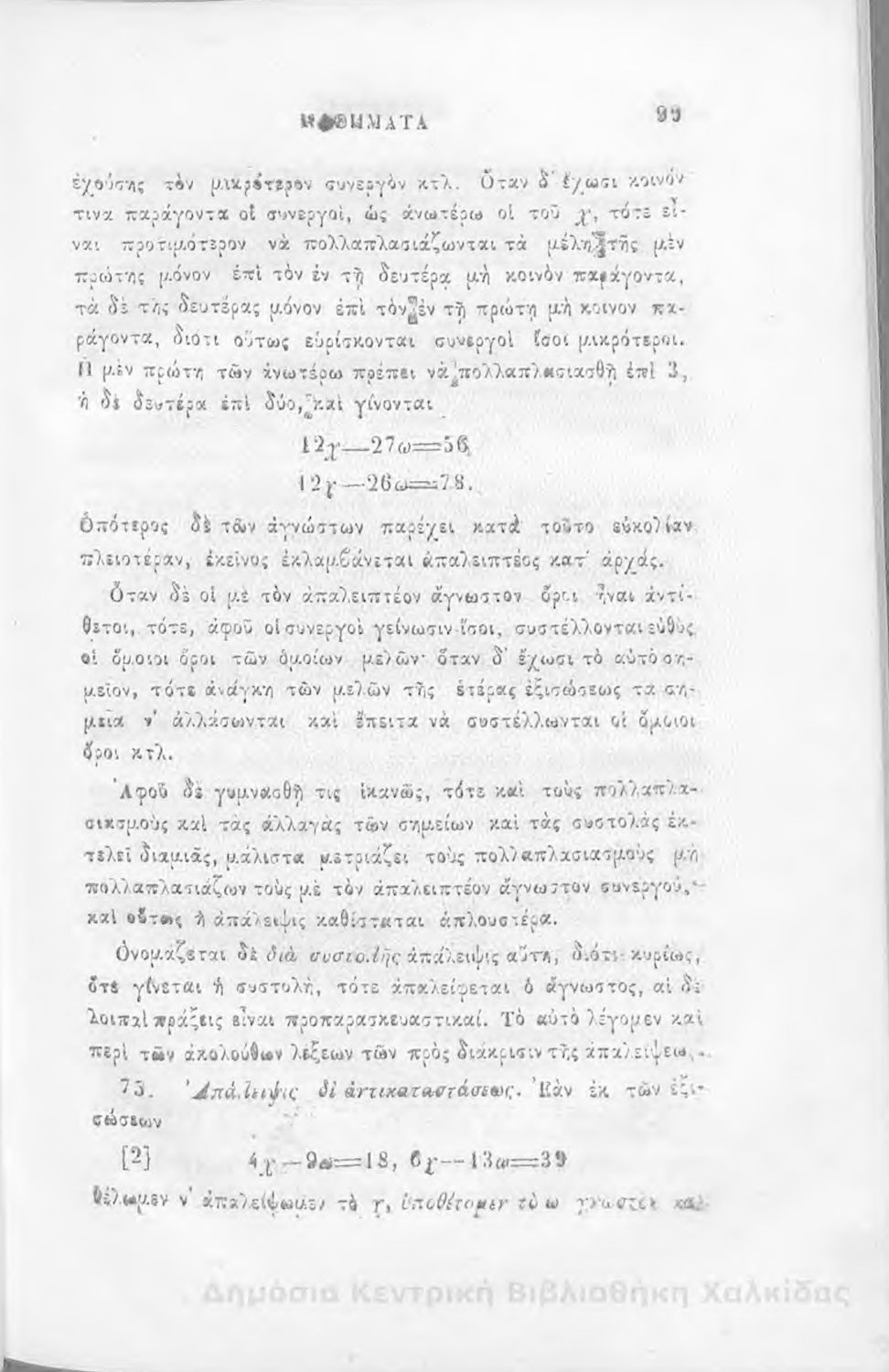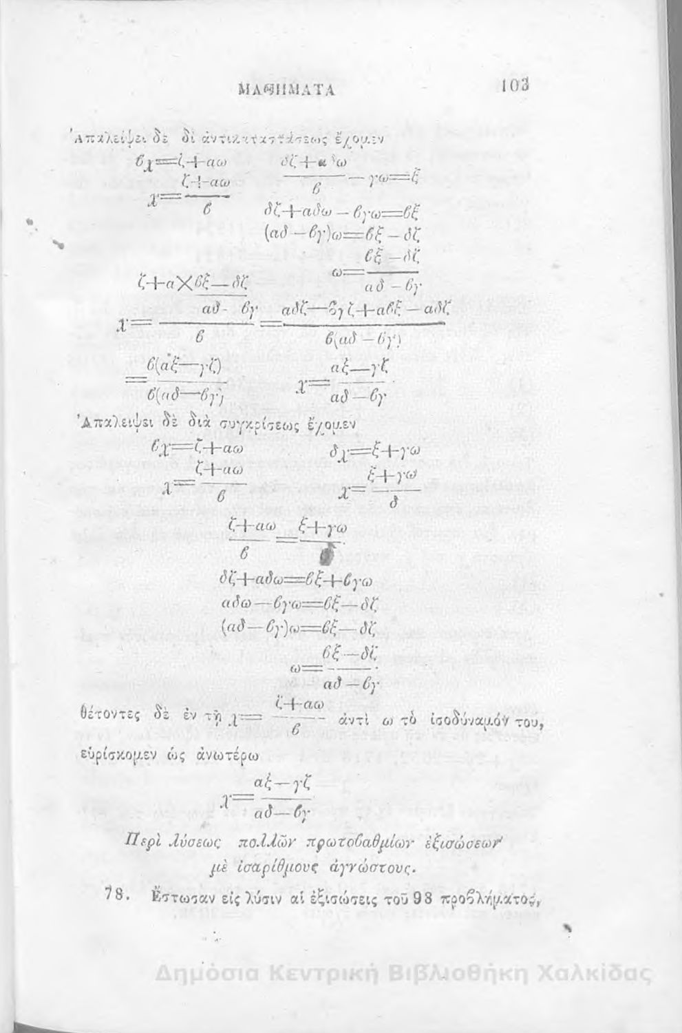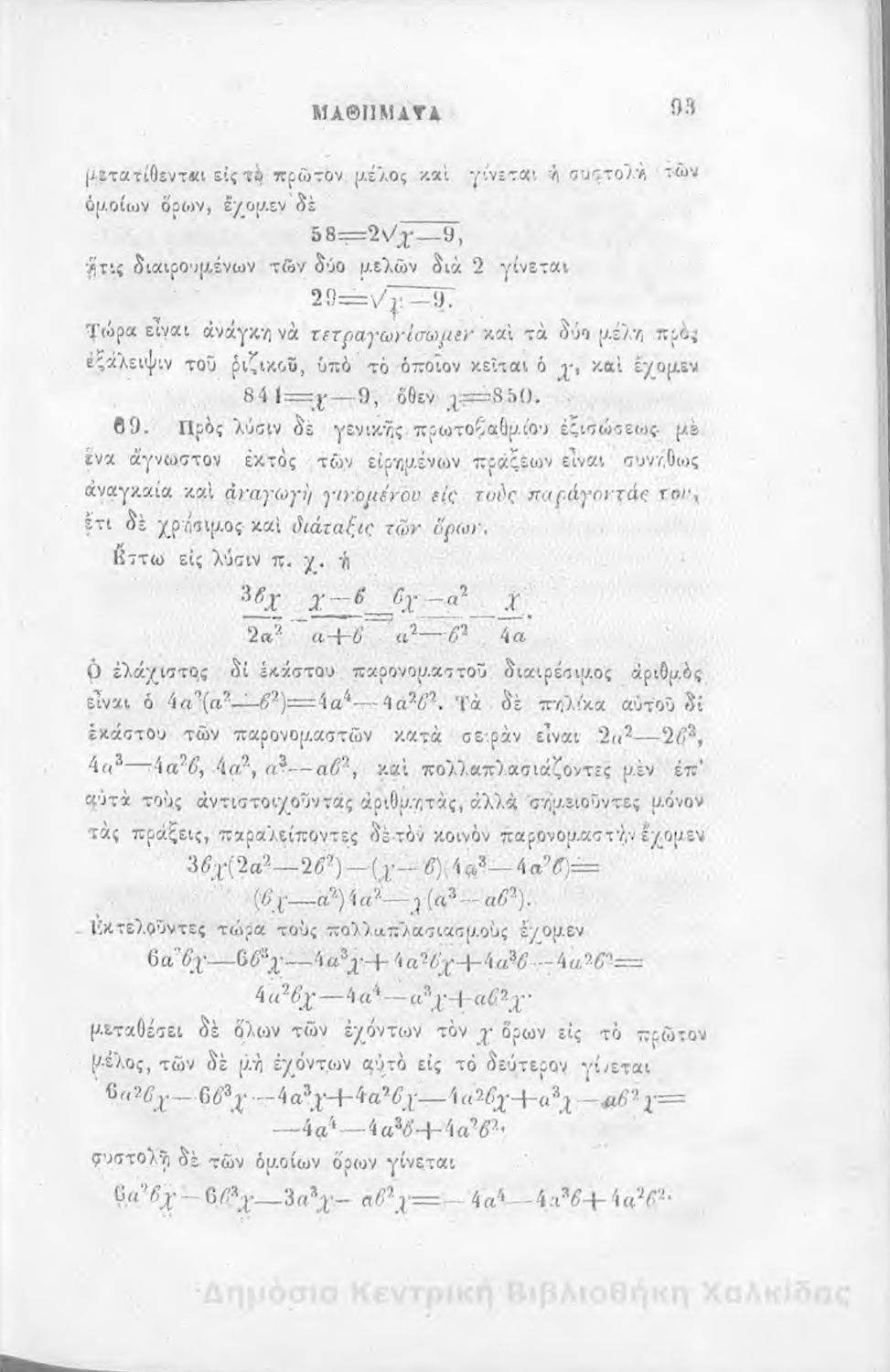 Άλγεβρας μαθήματα : τα του πρώτου και του δευτέρου βαθμού. Προς χρήσιν των μαθητευόντων εν τοις γυμνασίοις της Ελλάδος