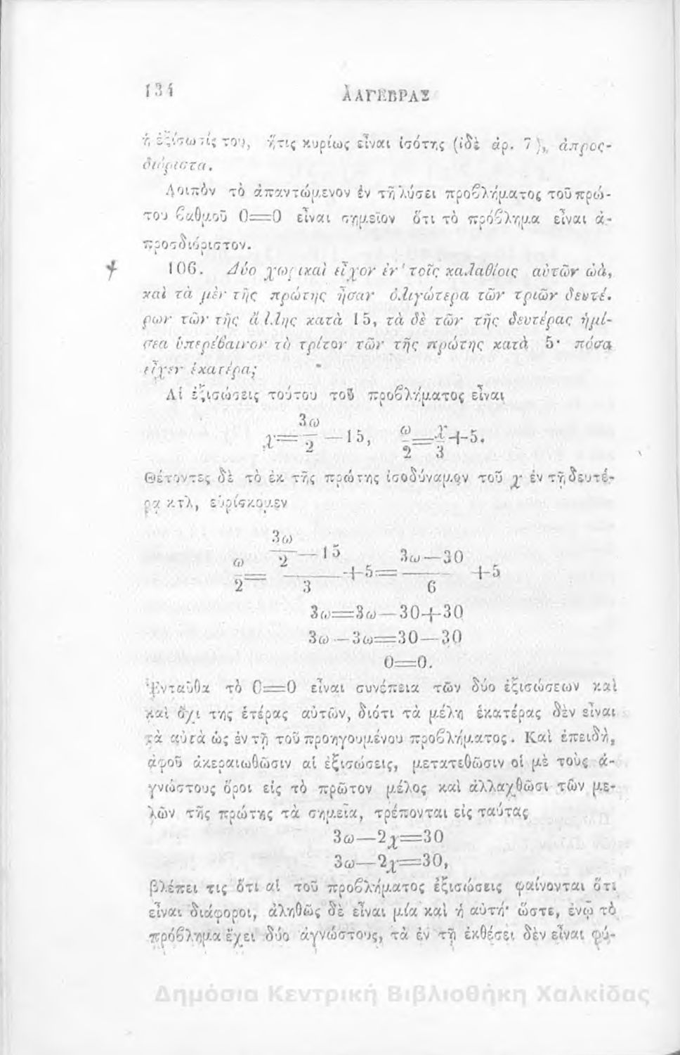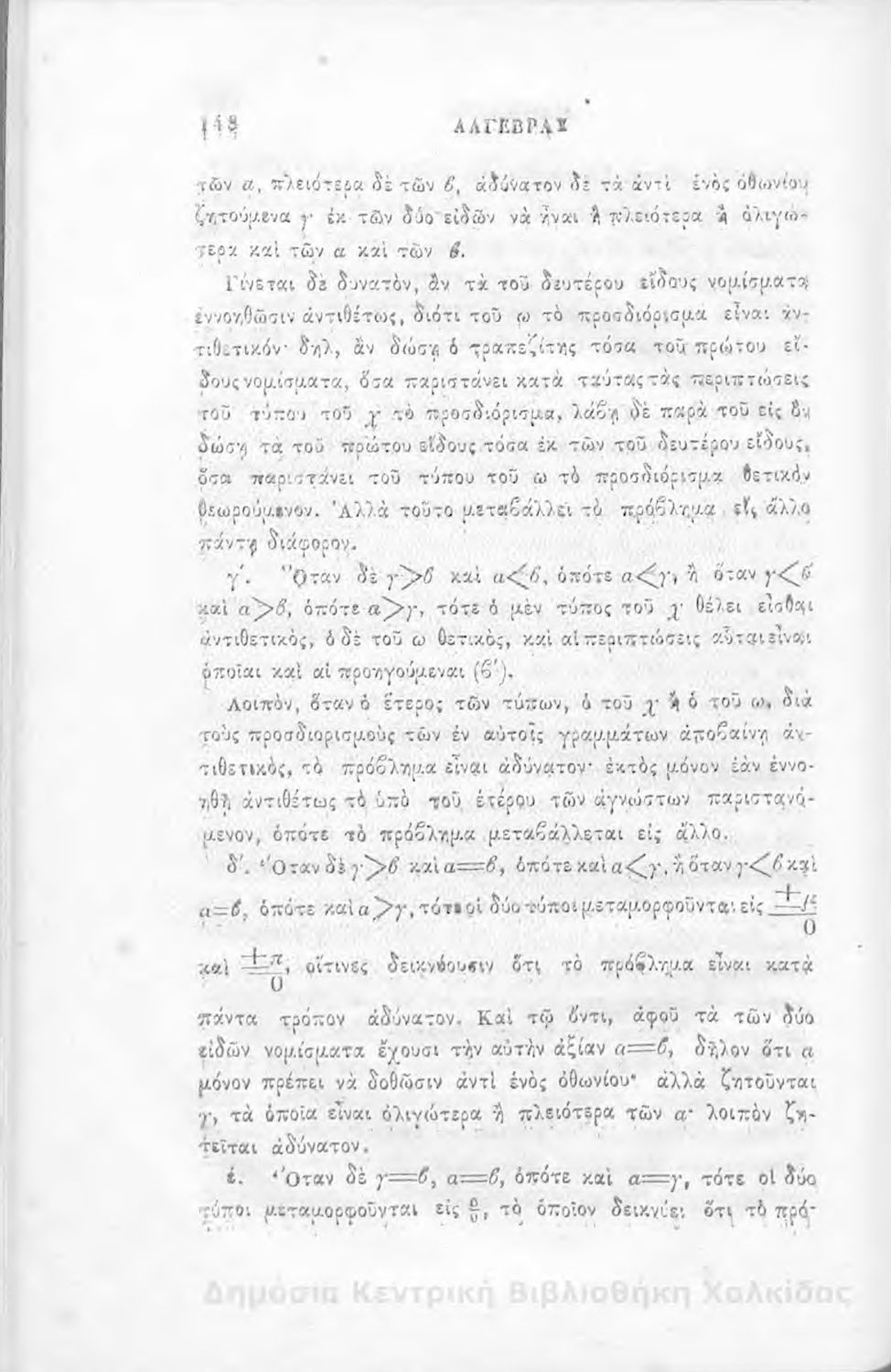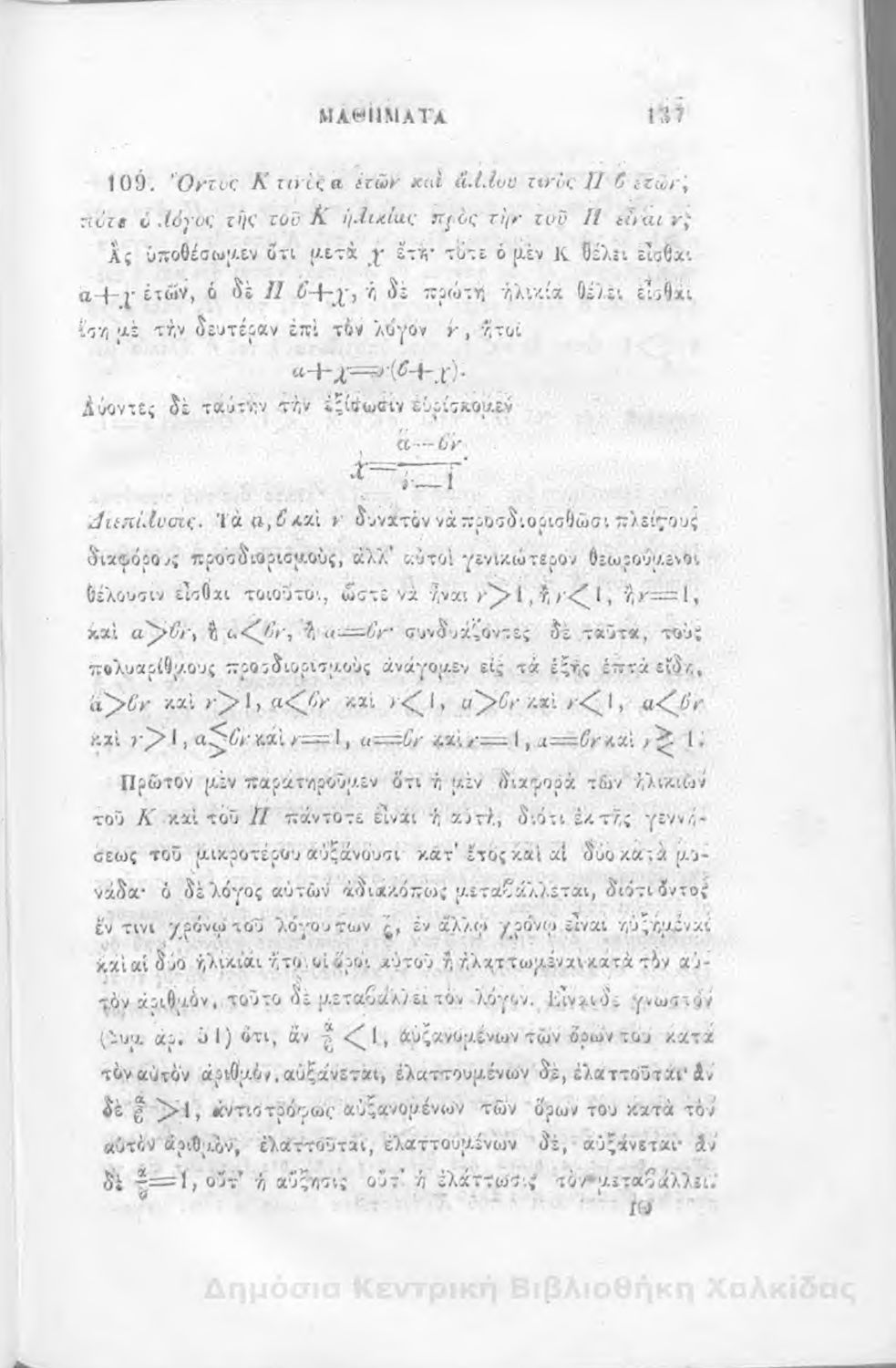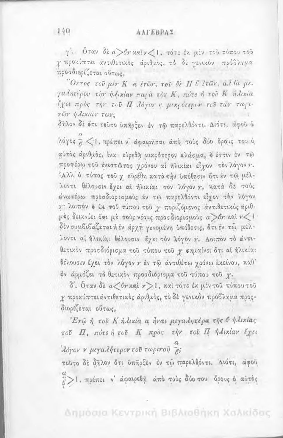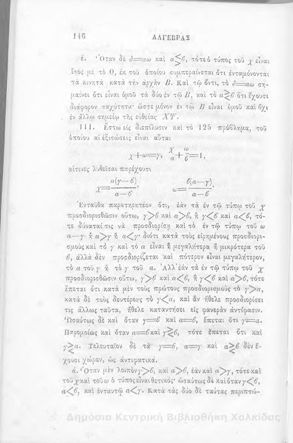 Βαθμίδα εκπαίδευσης: Δευτεροβάθμια Μάθημα: Άλγεβρα Γλώσσα: Καθαρεύουσα |