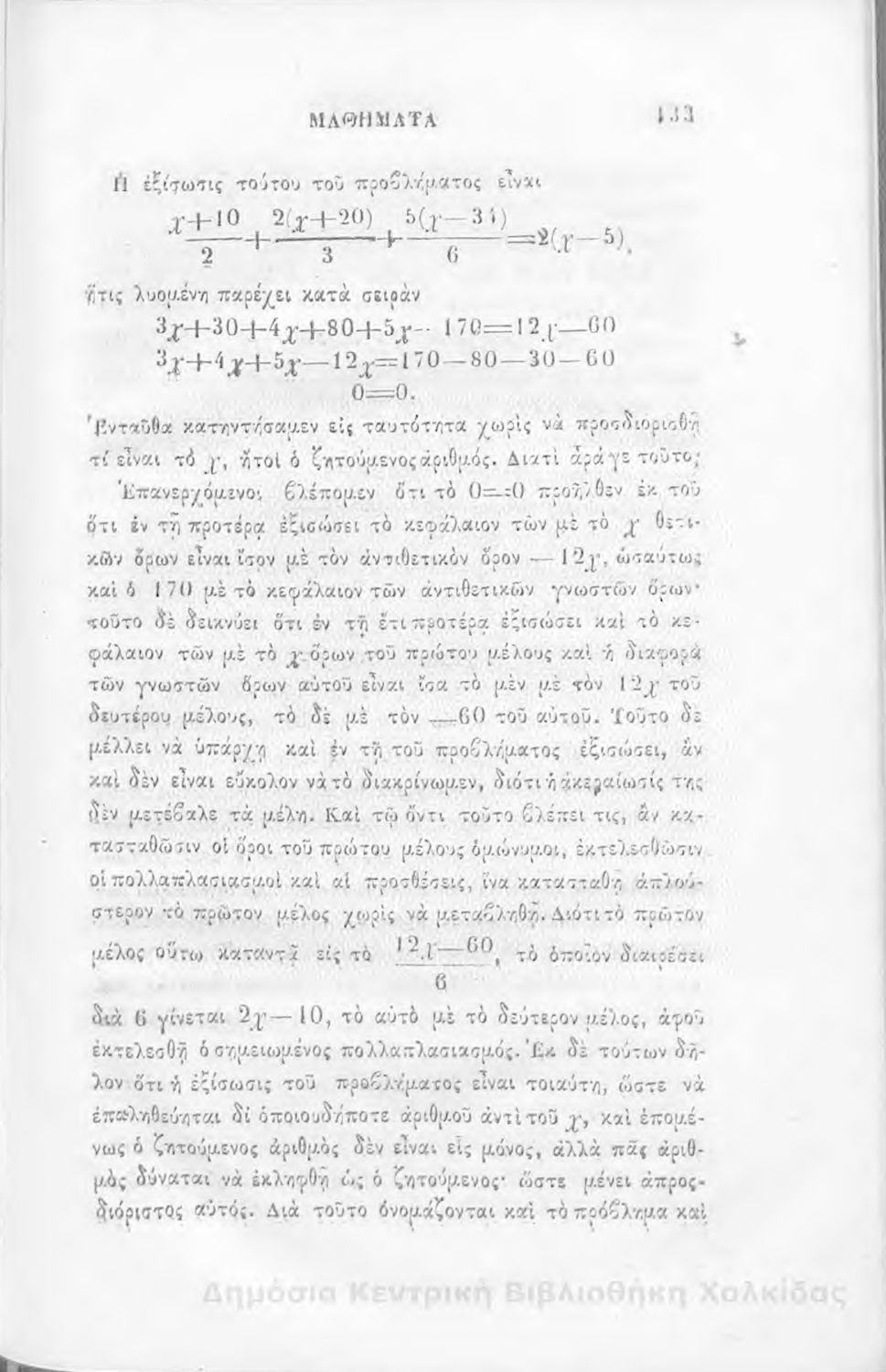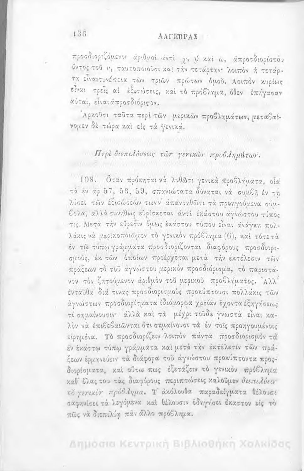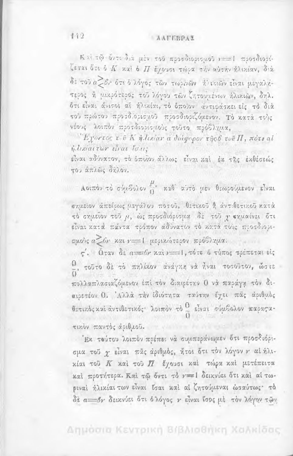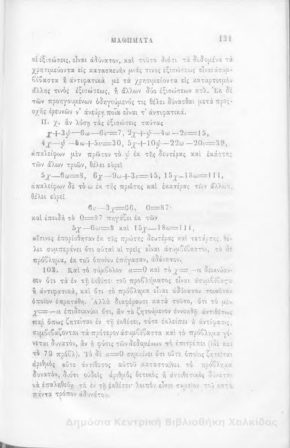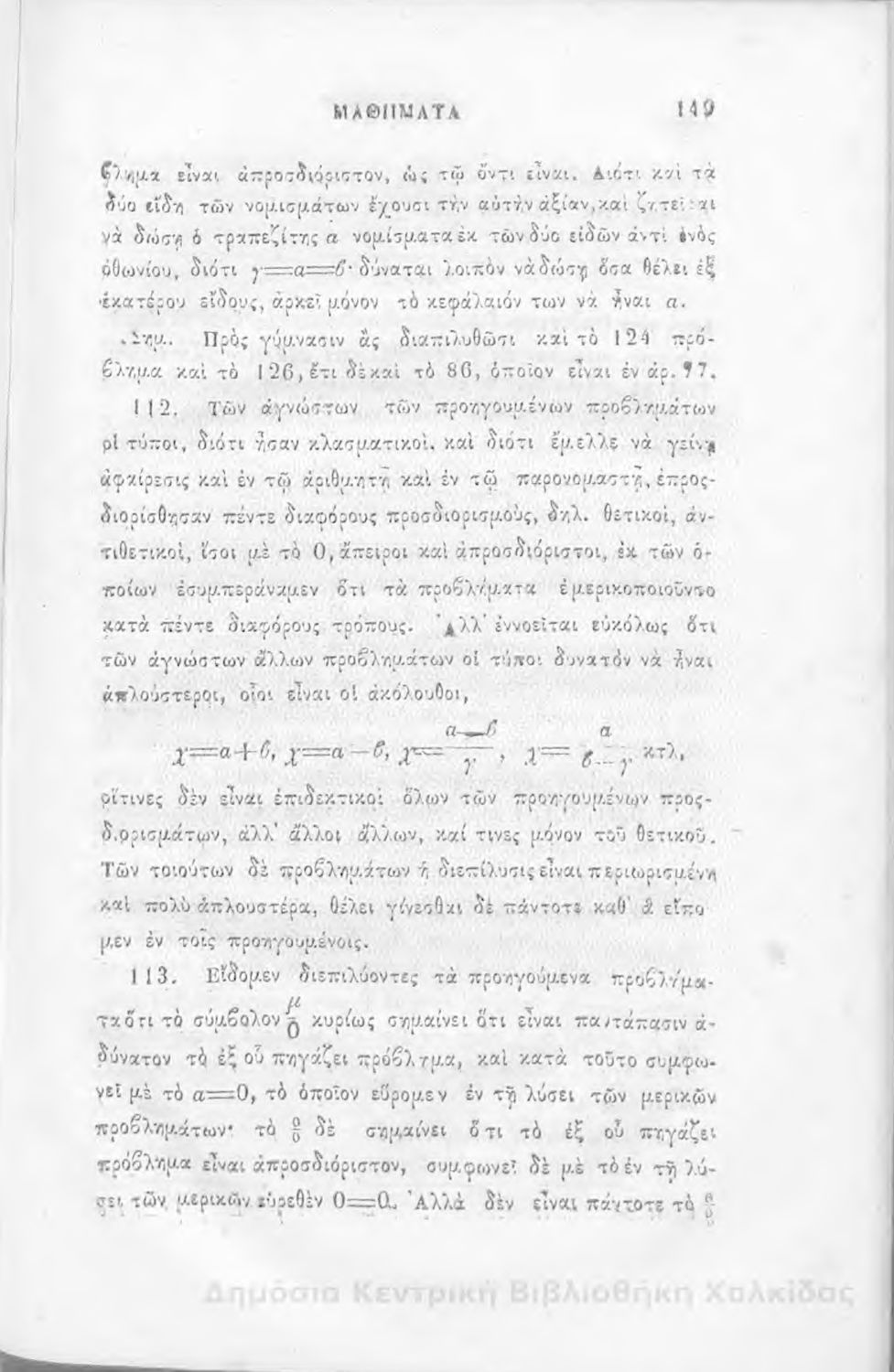 Βαθμίδα εκπαίδευσης: Δευτεροβάθμια Μάθημα: Άλγεβρα Γλώσσα: Καθαρεύουσα |