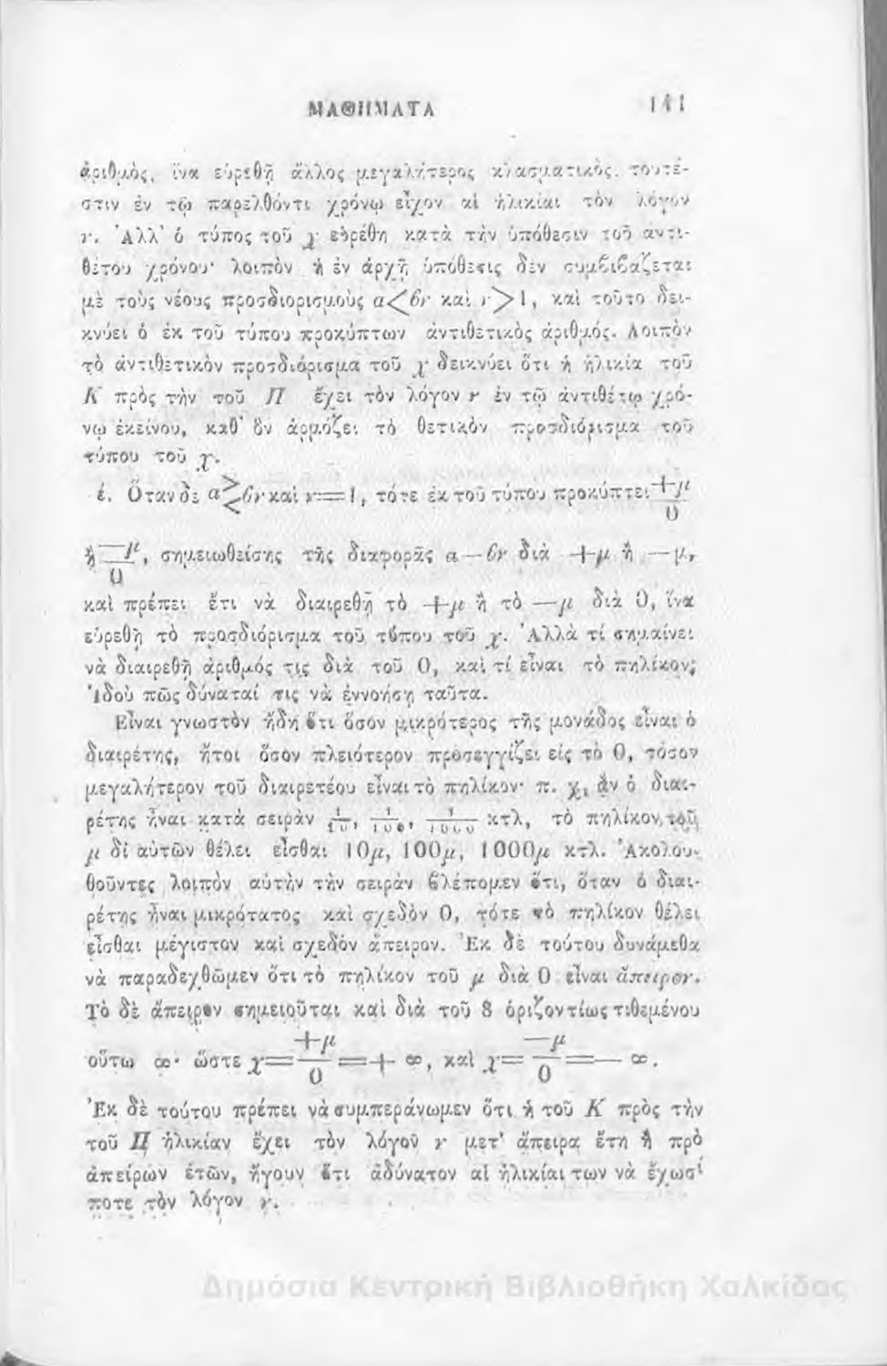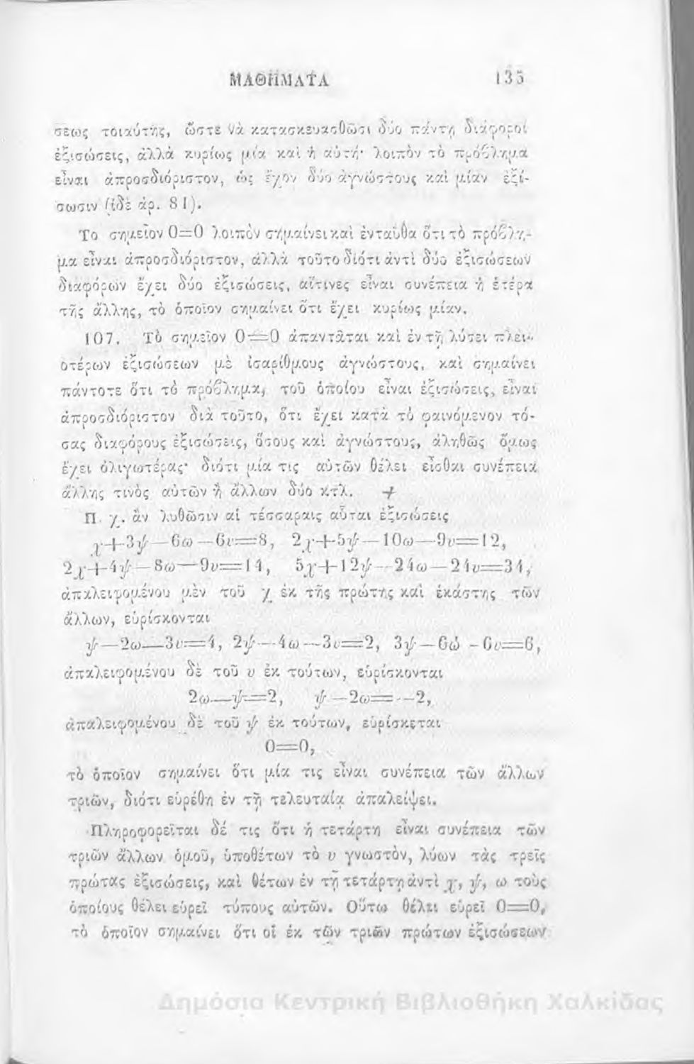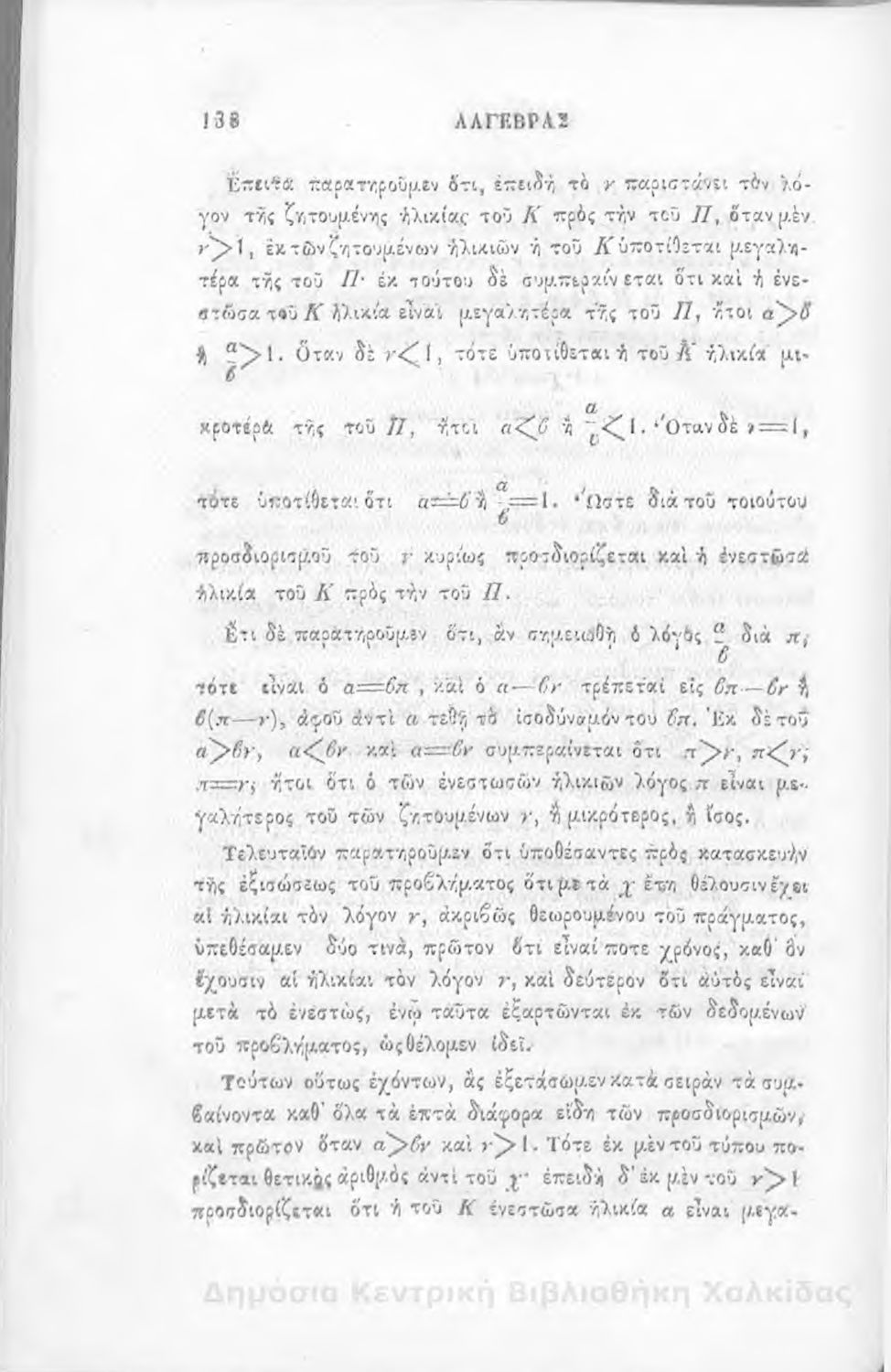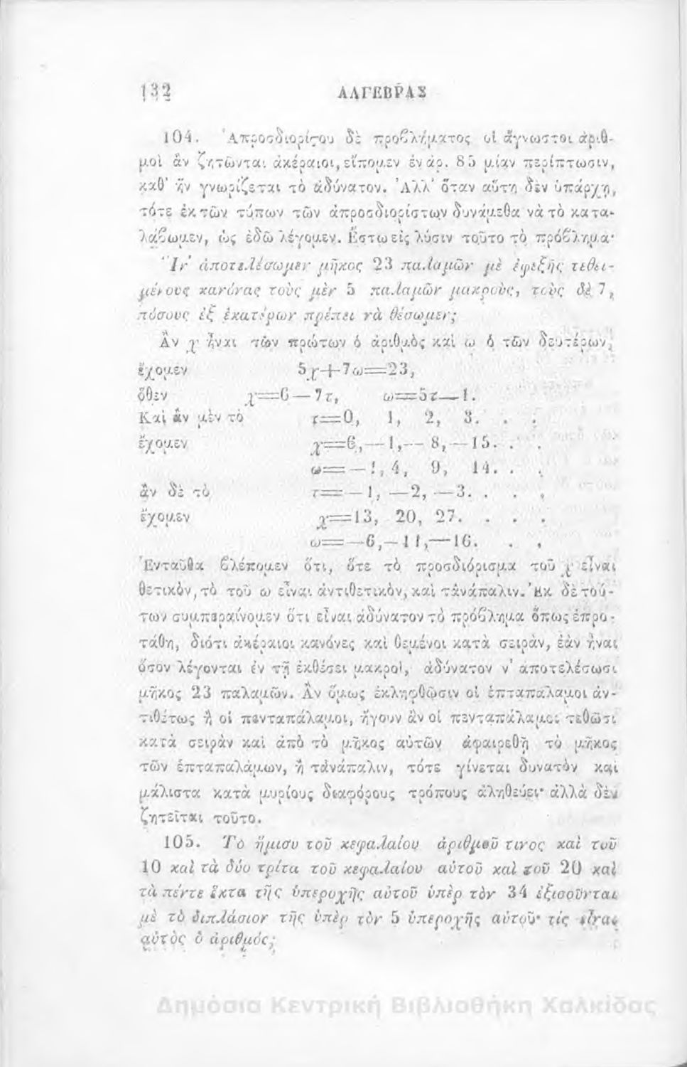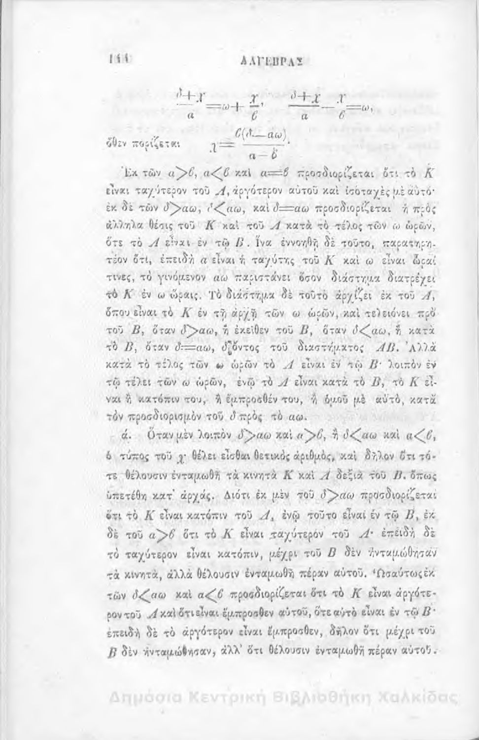 Βαθμίδα εκπαίδευσης: Δευτεροβάθμια Μάθημα: Άλγεβρα Γλώσσα: Καθαρεύουσα |