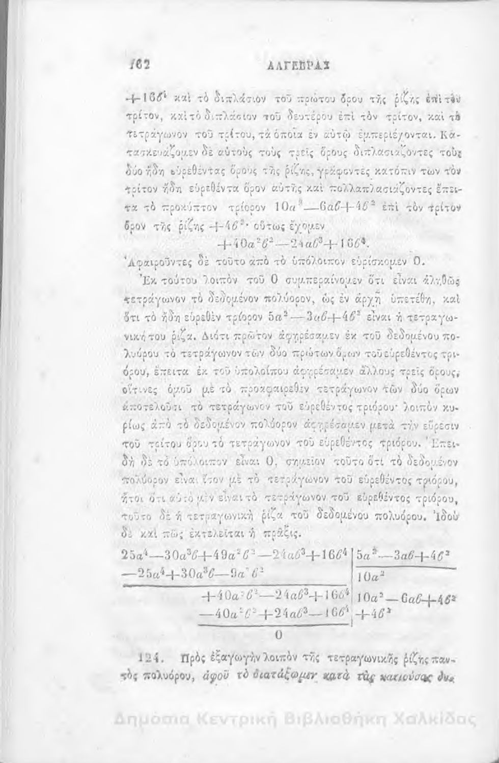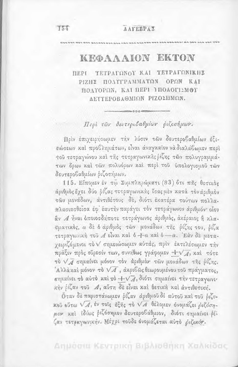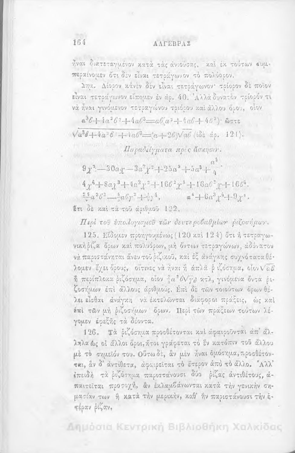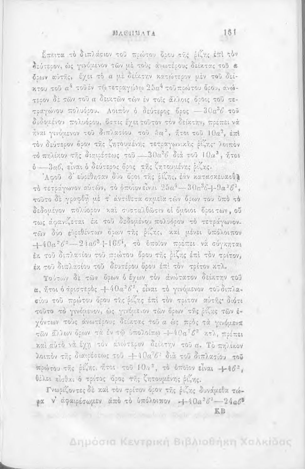 Τίτλος: Άλγεβρας μαθήματα : τα του πρώτου και του δευτέρου βαθμού. Προς χρήσιν των μαθητευόντων εν τοις γυμνασίοις της Ελλάδος