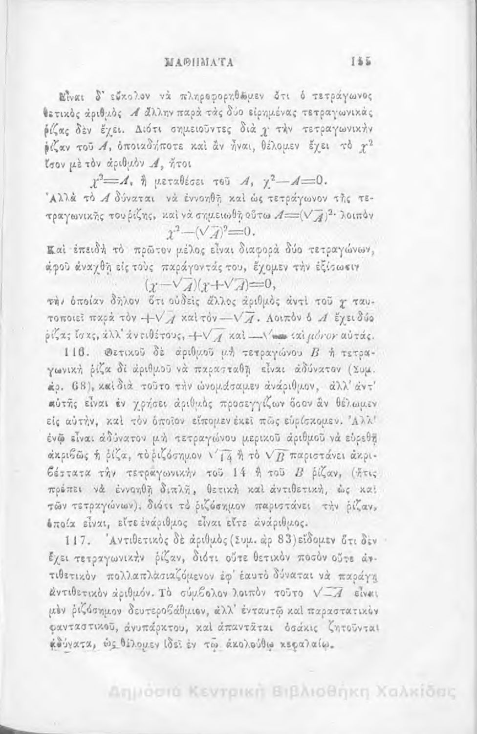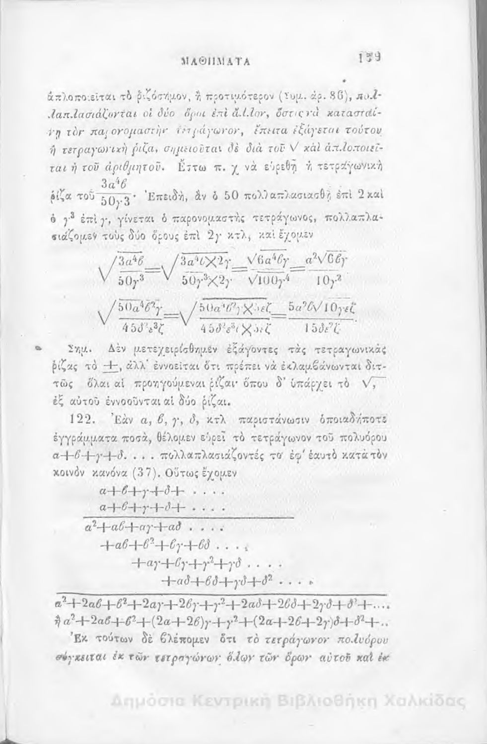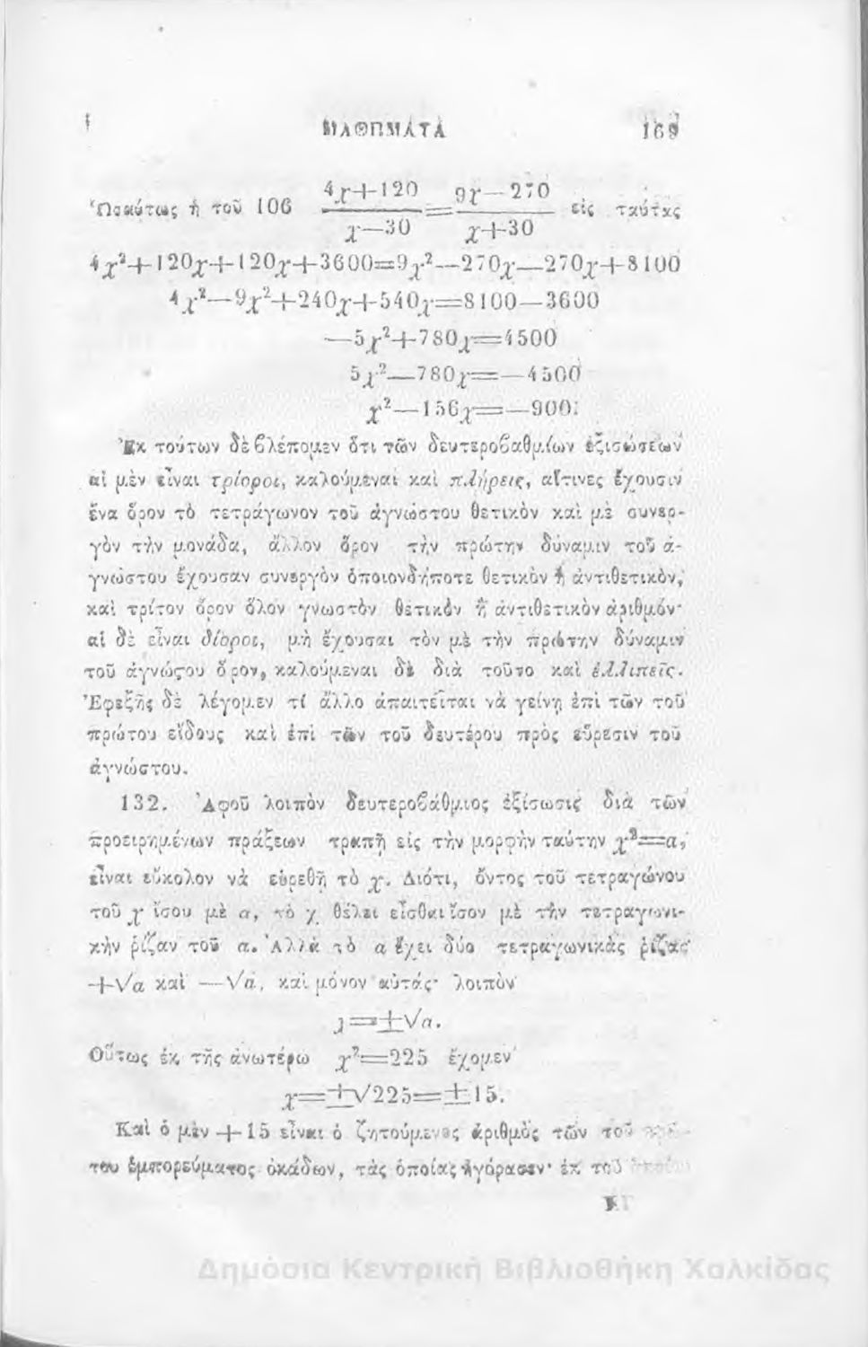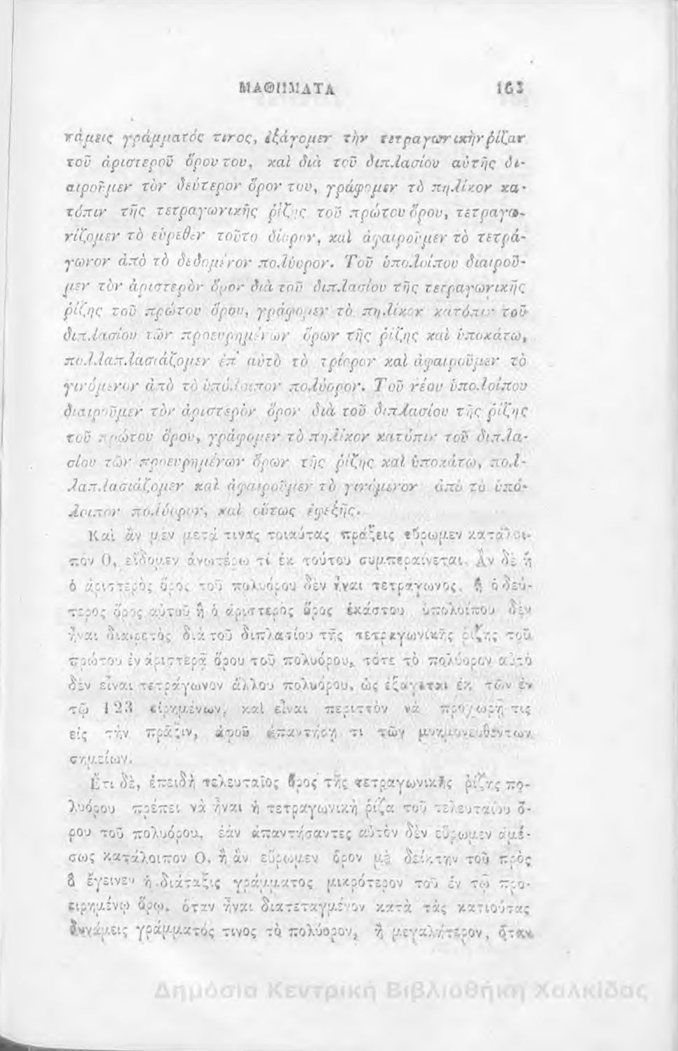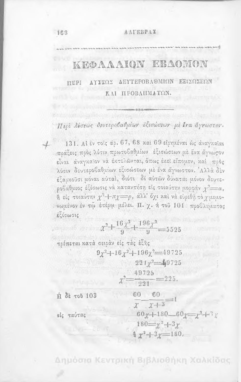 Τίτλος: Άλγεβρας μαθήματα : τα του πρώτου και του δευτέρου βαθμού. Προς χρήσιν των μαθητευόντων εν τοις γυμνασίοις της Ελλάδος