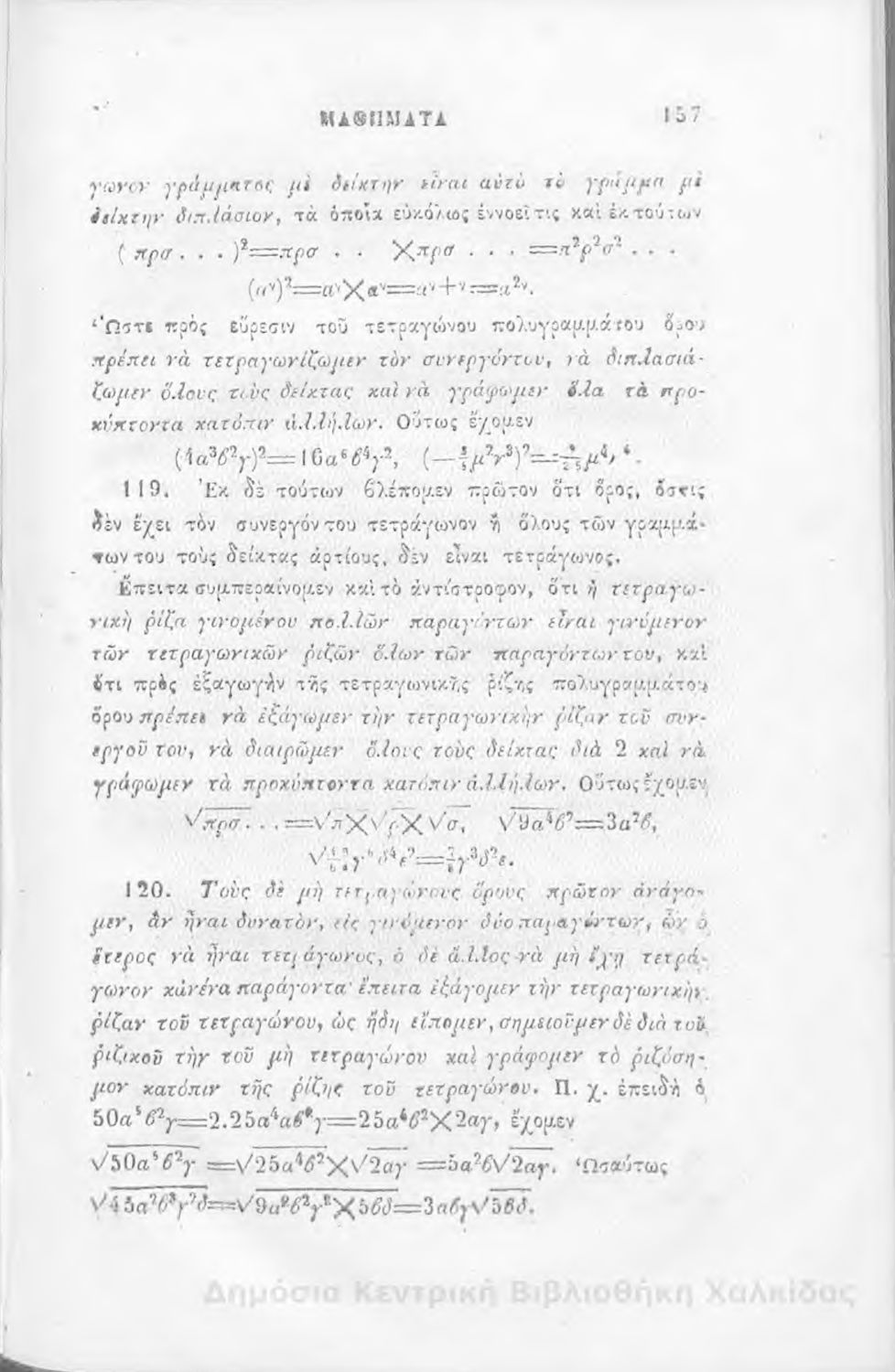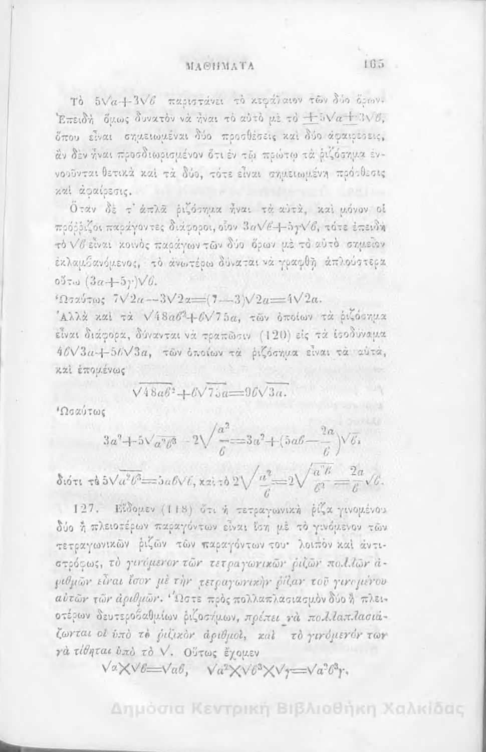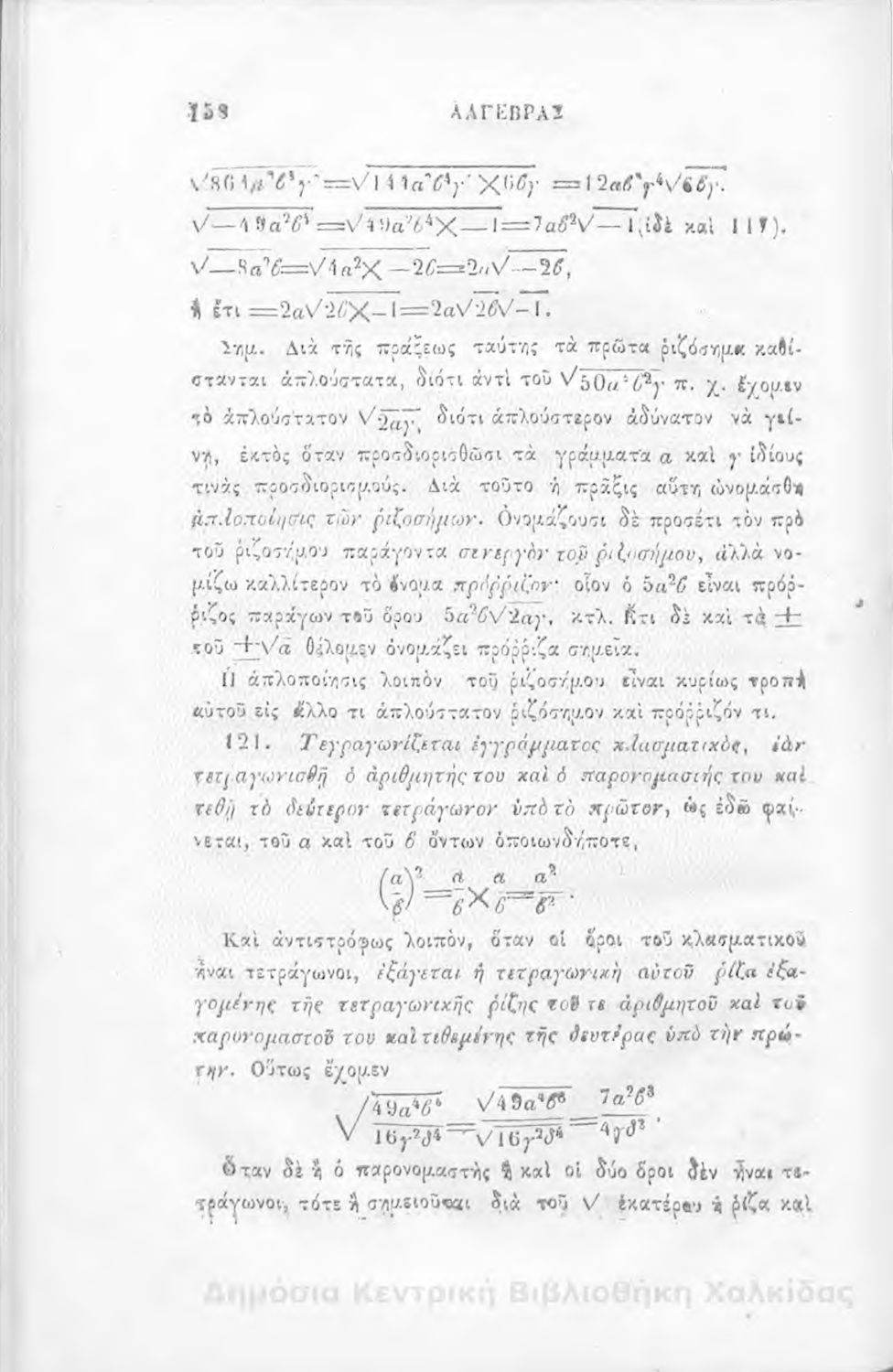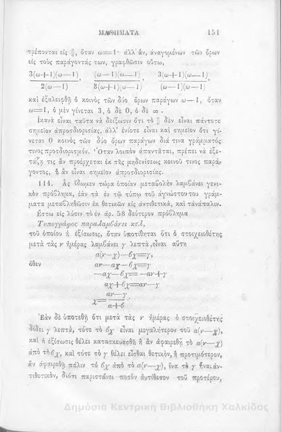 Τίτλος: Άλγεβρας μαθήματα : τα του πρώτου και του δευτέρου βαθμού. Προς χρήσιν των μαθητευόντων εν τοις γυμνασίοις της Ελλάδος