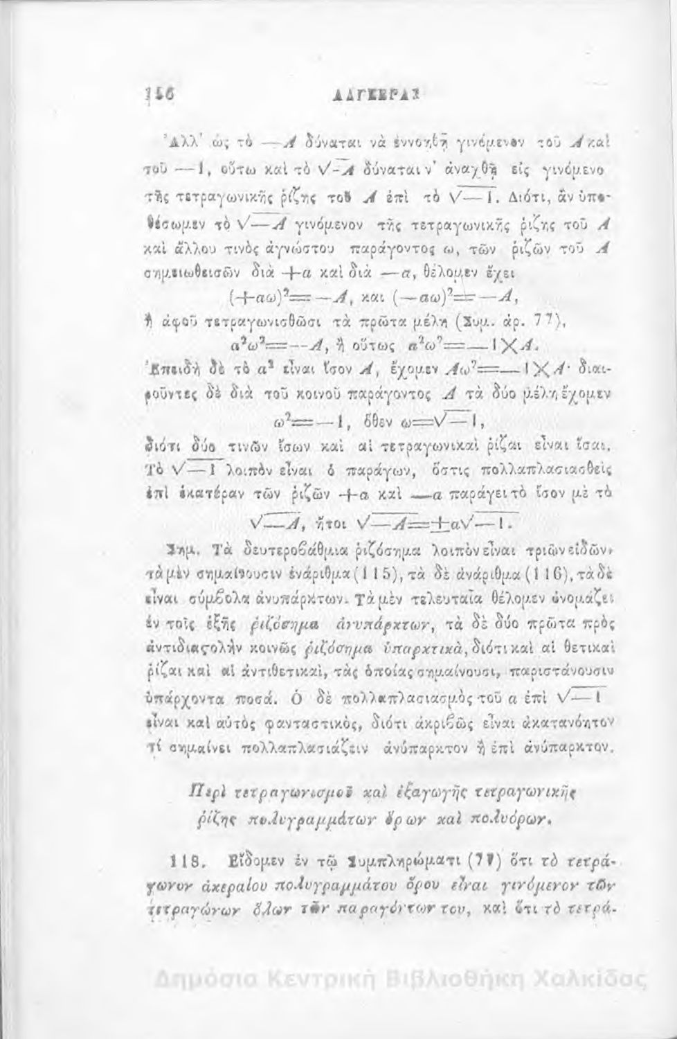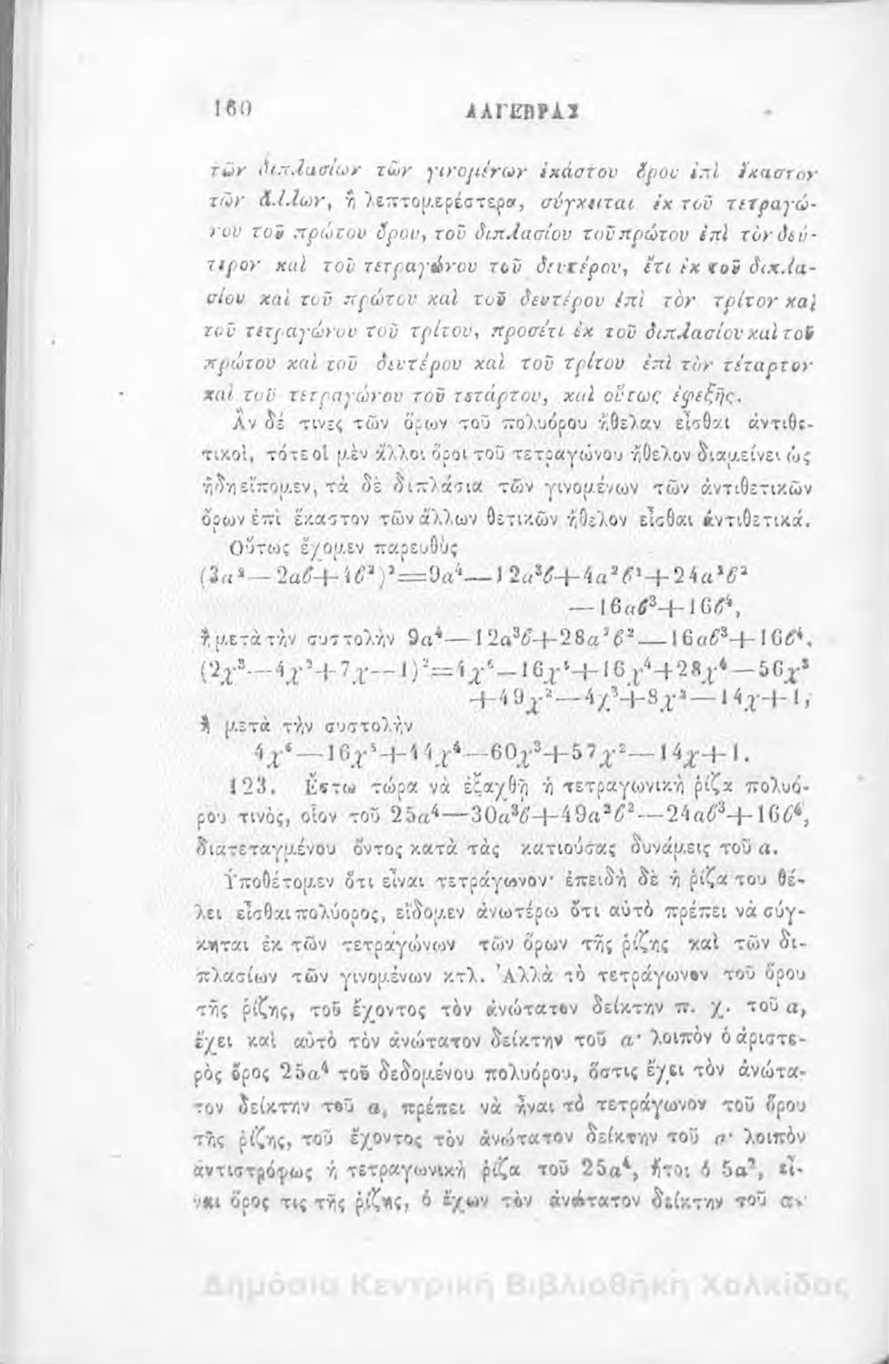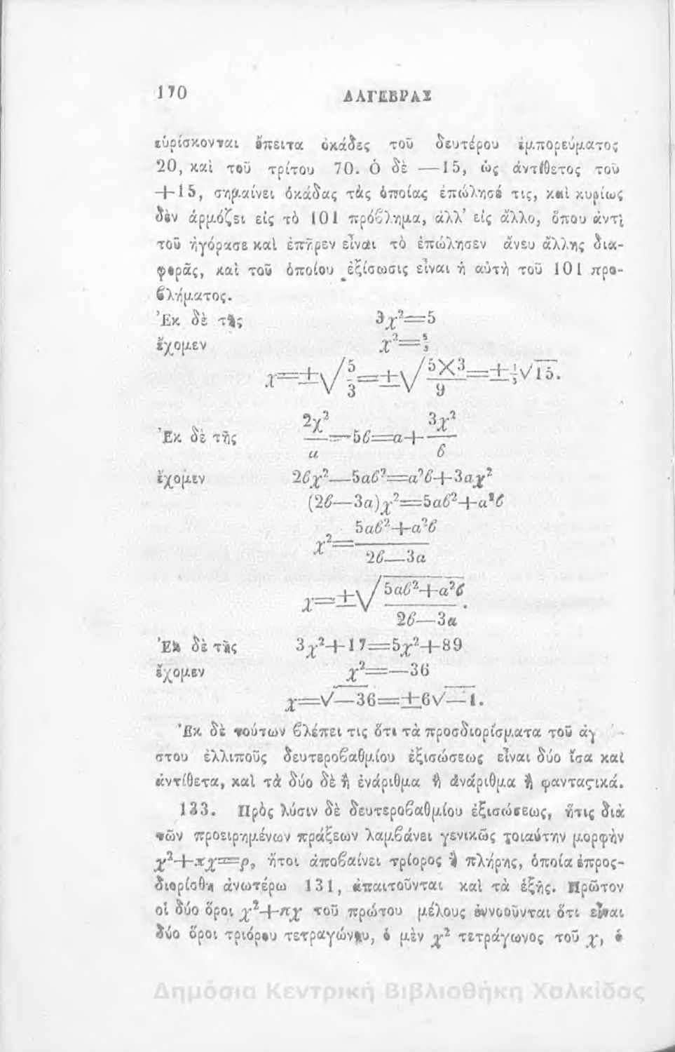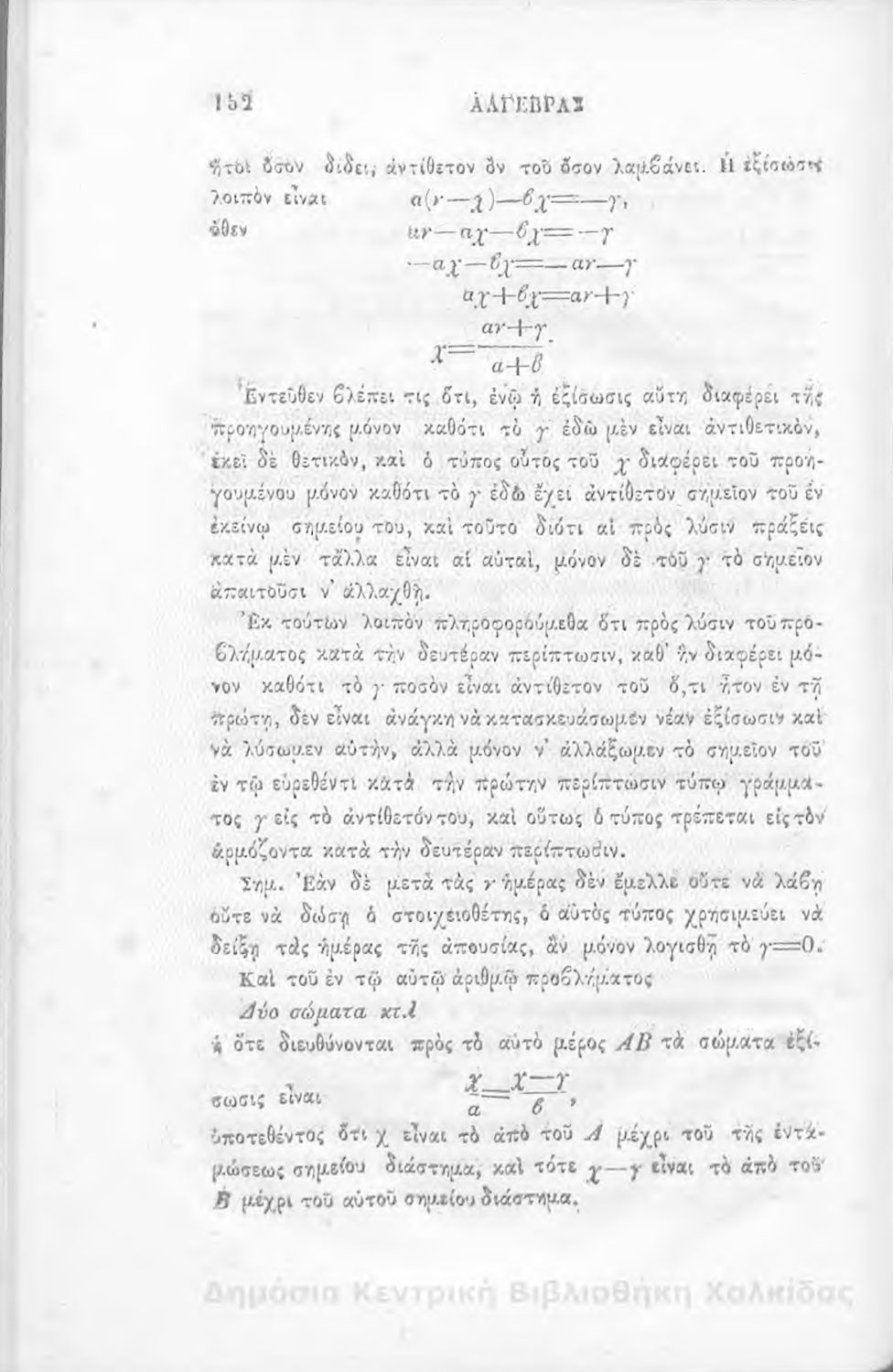 Άλγεβρας μαθήματα : τα του πρώτου και του δευτέρου βαθμού. Προς χρήσιν των μαθητευόντων εν τοις γυμνασίοις της Ελλάδος