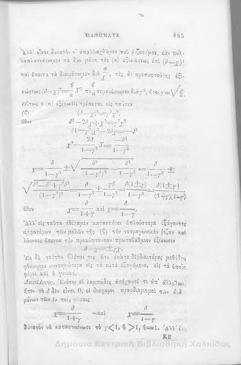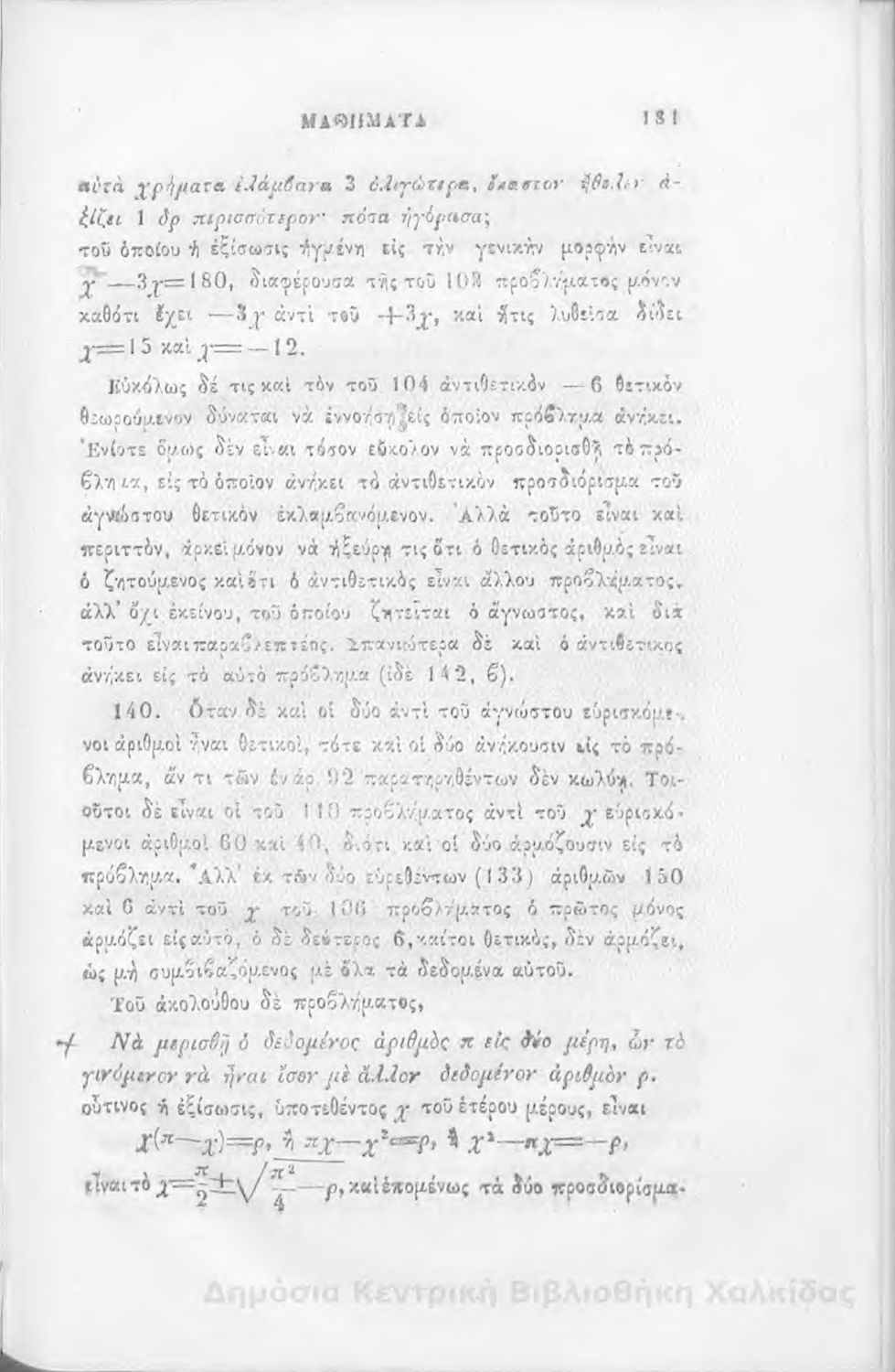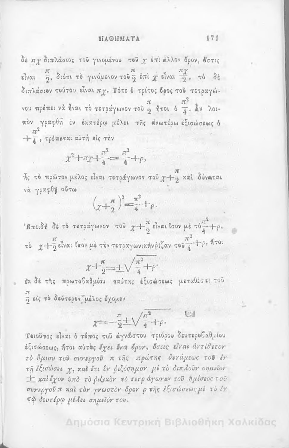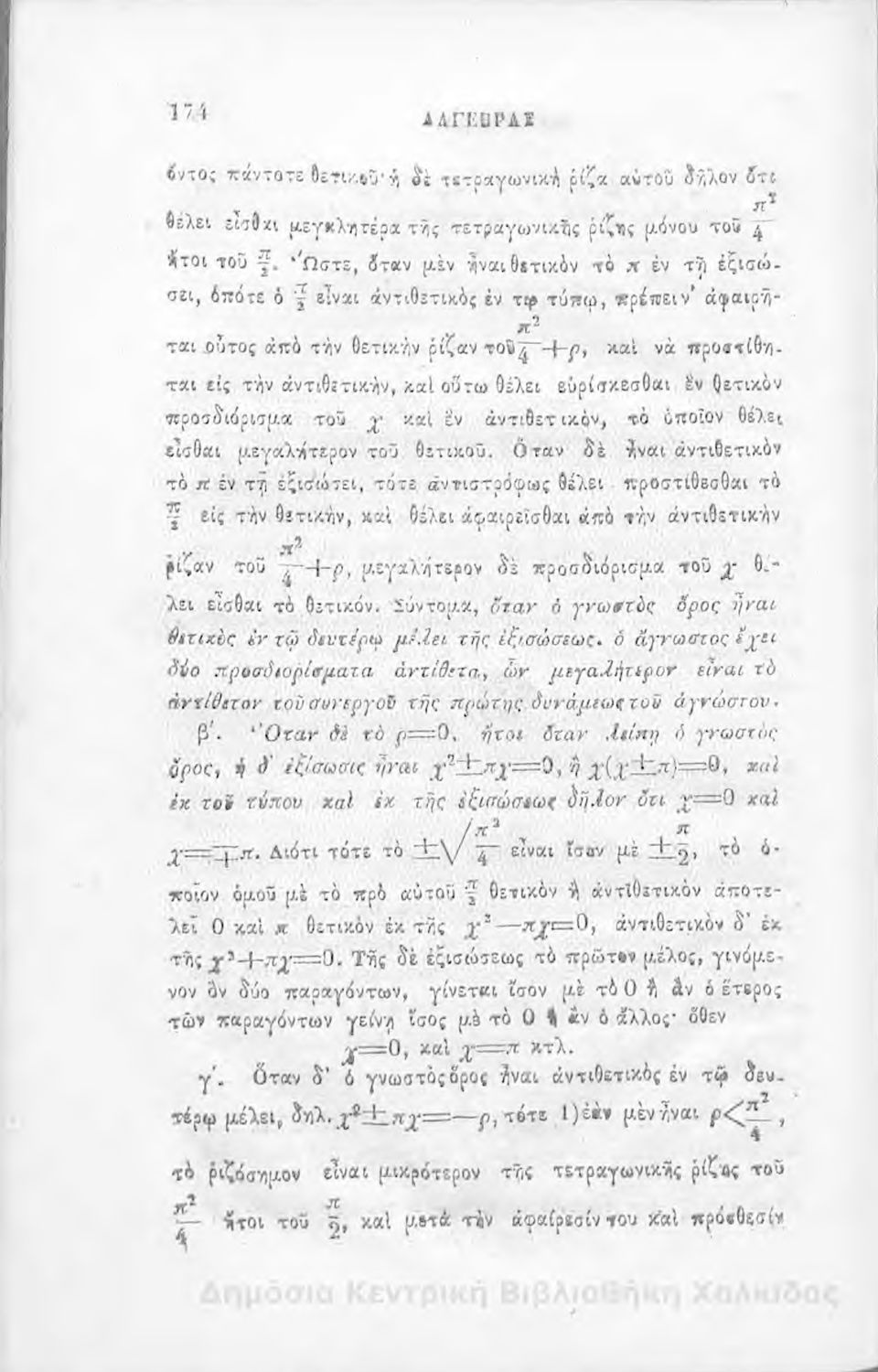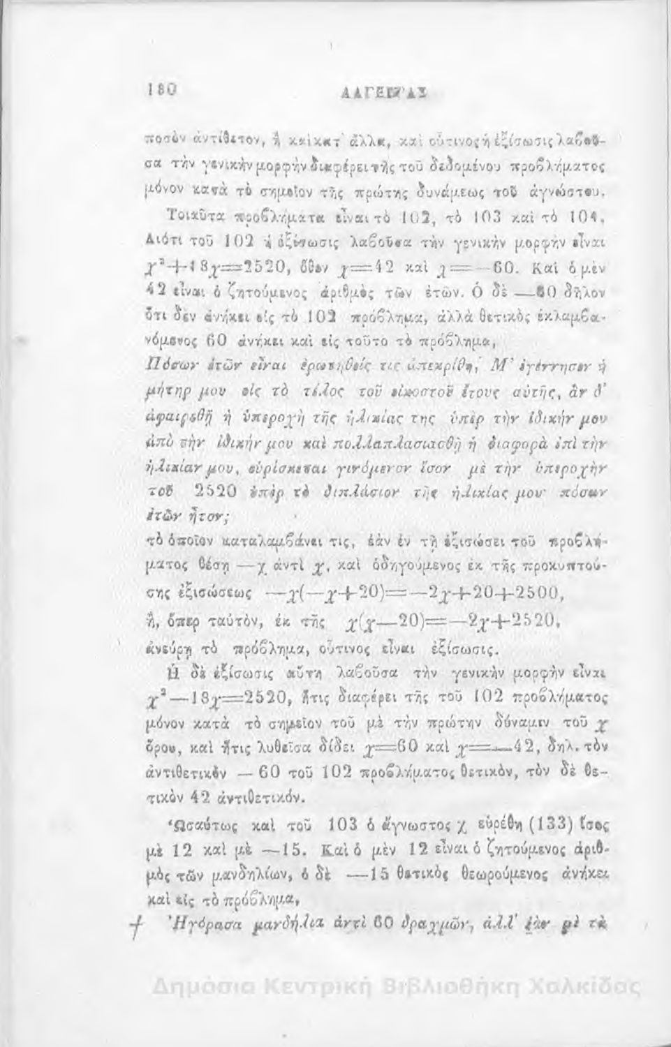 Βαθμίδα εκπαίδευσης: Δευτεροβάθμια Μάθημα: Άλγεβρα Γλώσσα: Καθαρεύουσα |