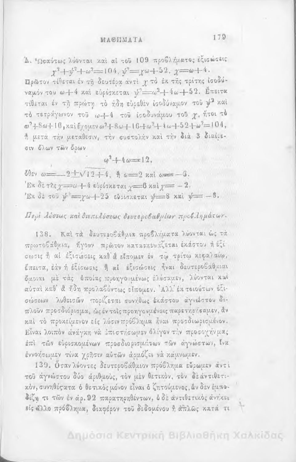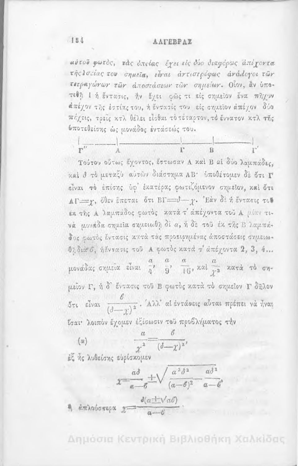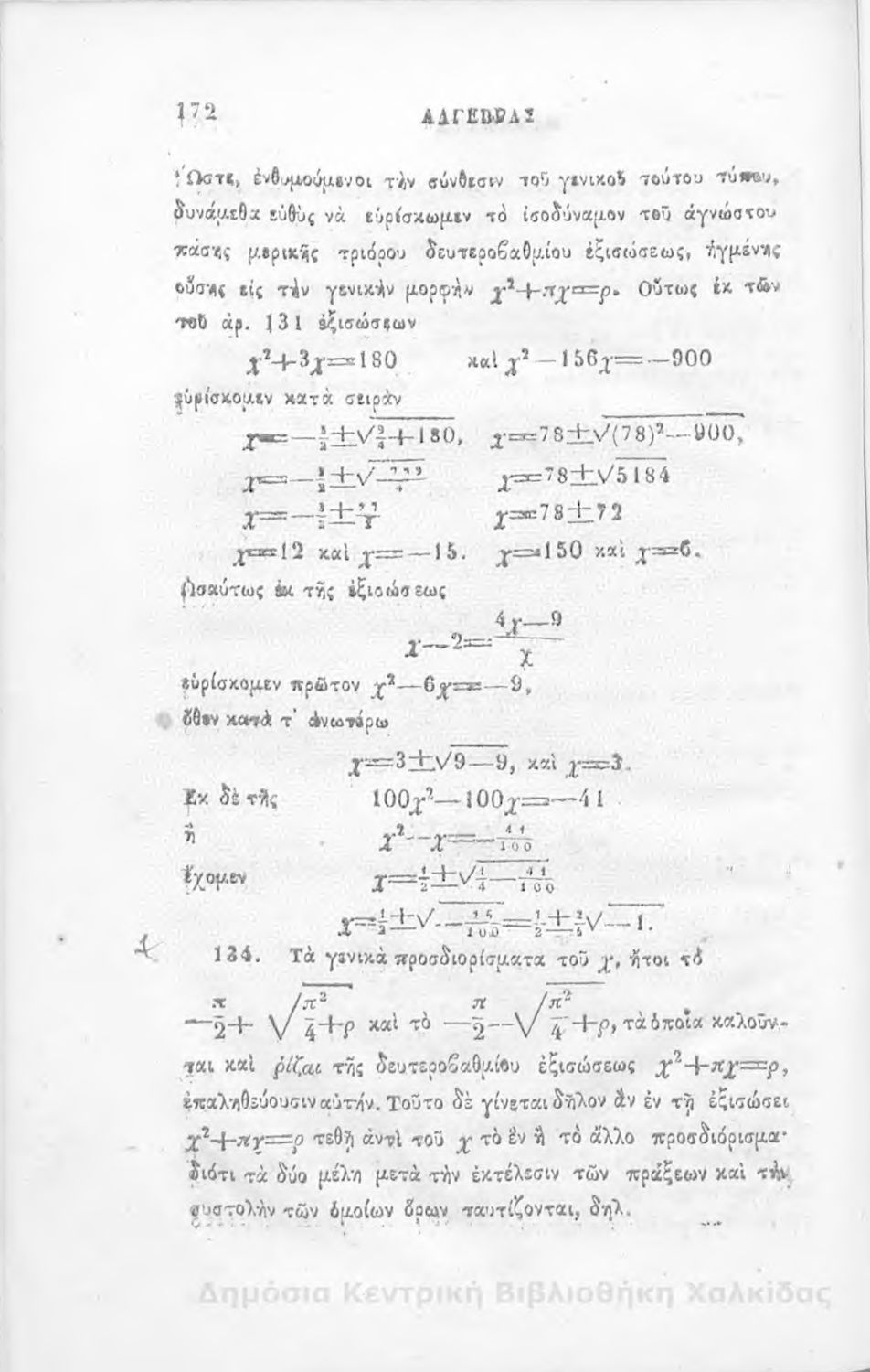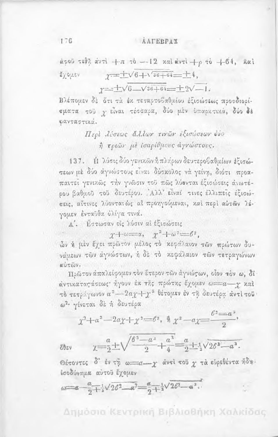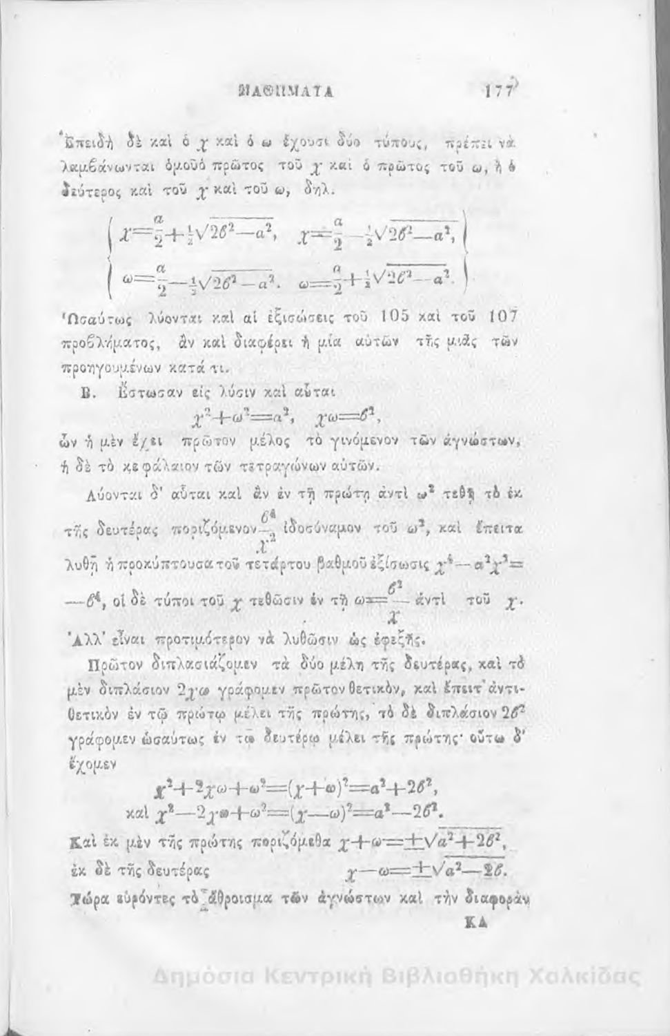 Βαθμίδα εκπαίδευσης: Δευτεροβάθμια Μάθημα: Άλγεβρα Γλώσσα: Καθαρεύουσα |