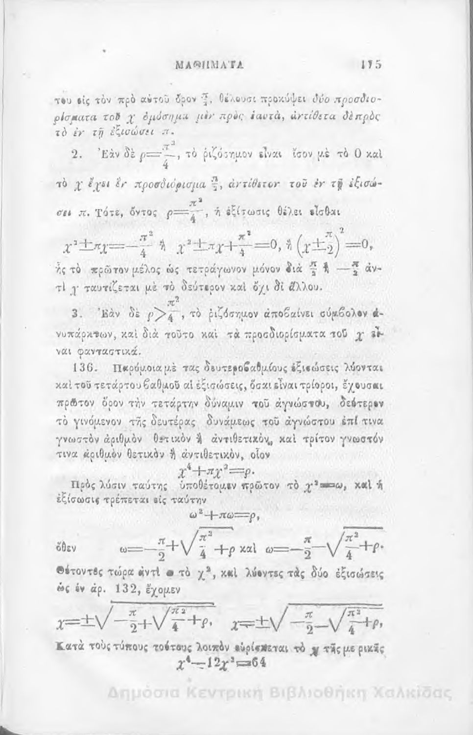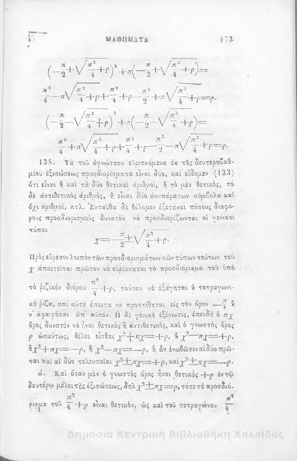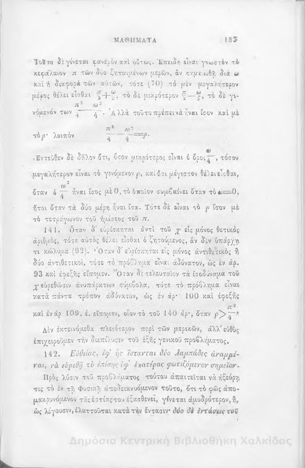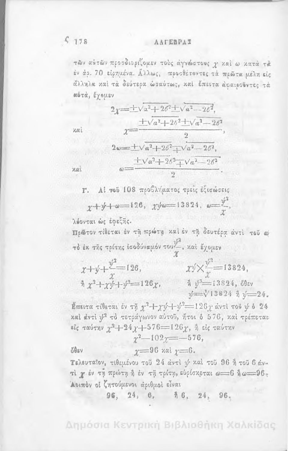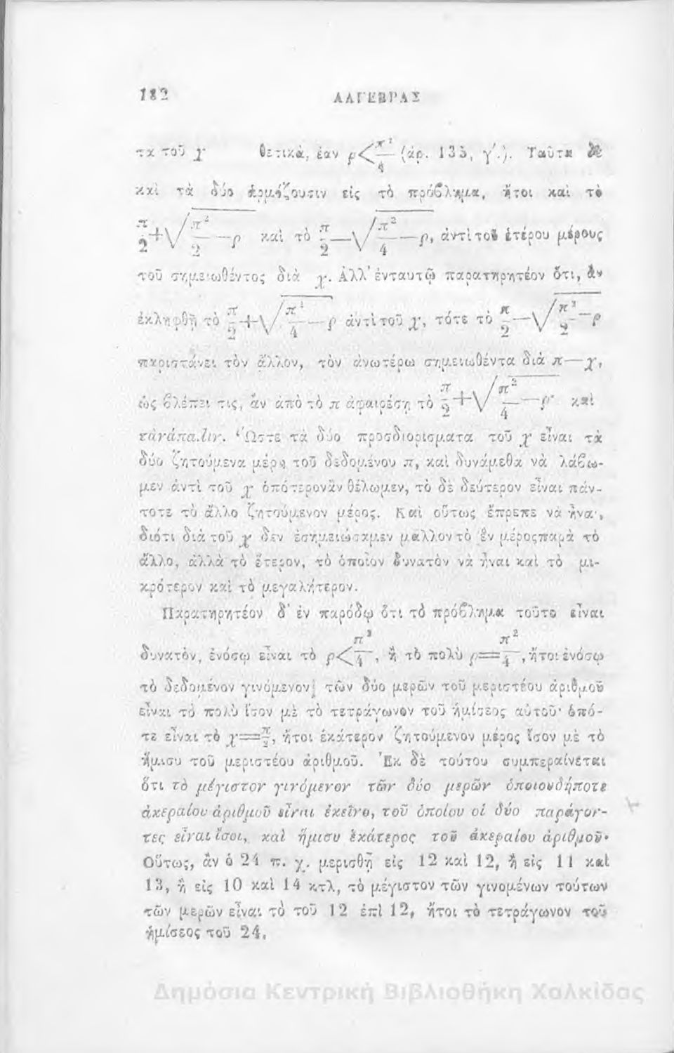 Βαθμίδα εκπαίδευσης: Δευτεροβάθμια Μάθημα: Άλγεβρα Γλώσσα: Καθαρεύουσα |