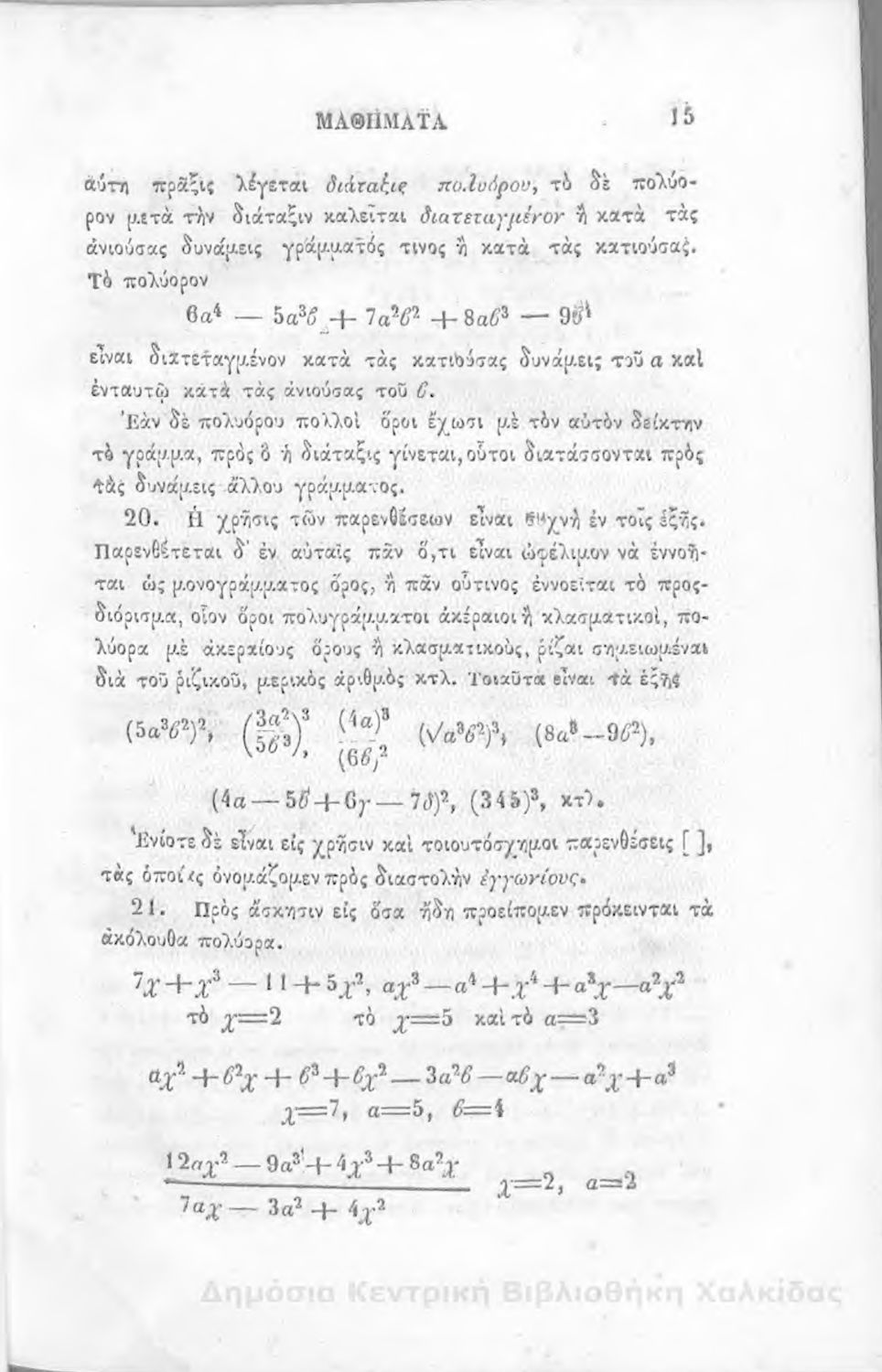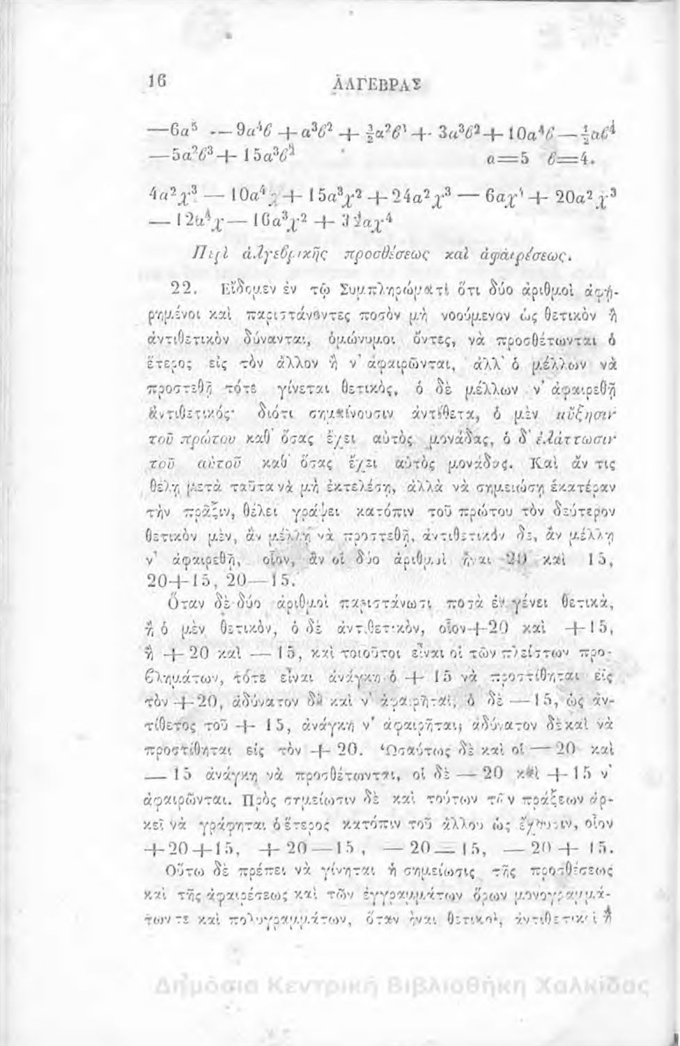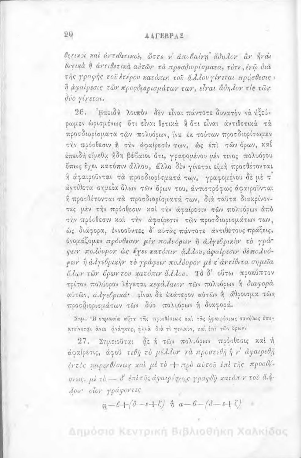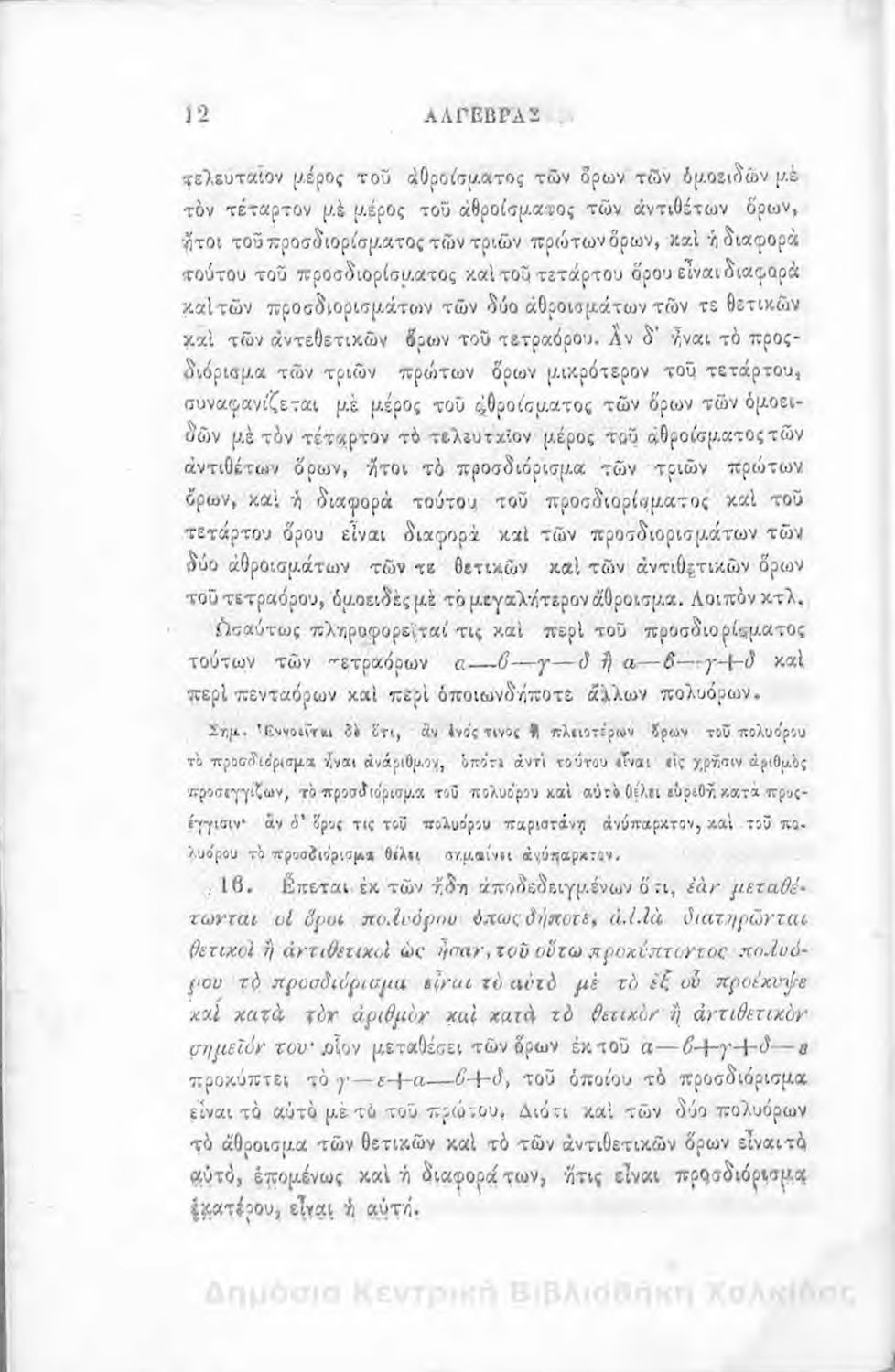 Τίτλος: Άλγεβρας μαθήματα : τα του πρώτου και του δευτέρου βαθμού. Προς χρήσιν των μαθητευόντων εν τοις γυμνασίοις της Ελλάδος