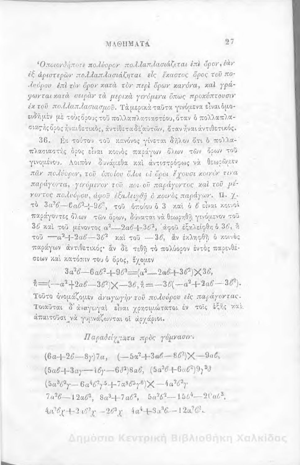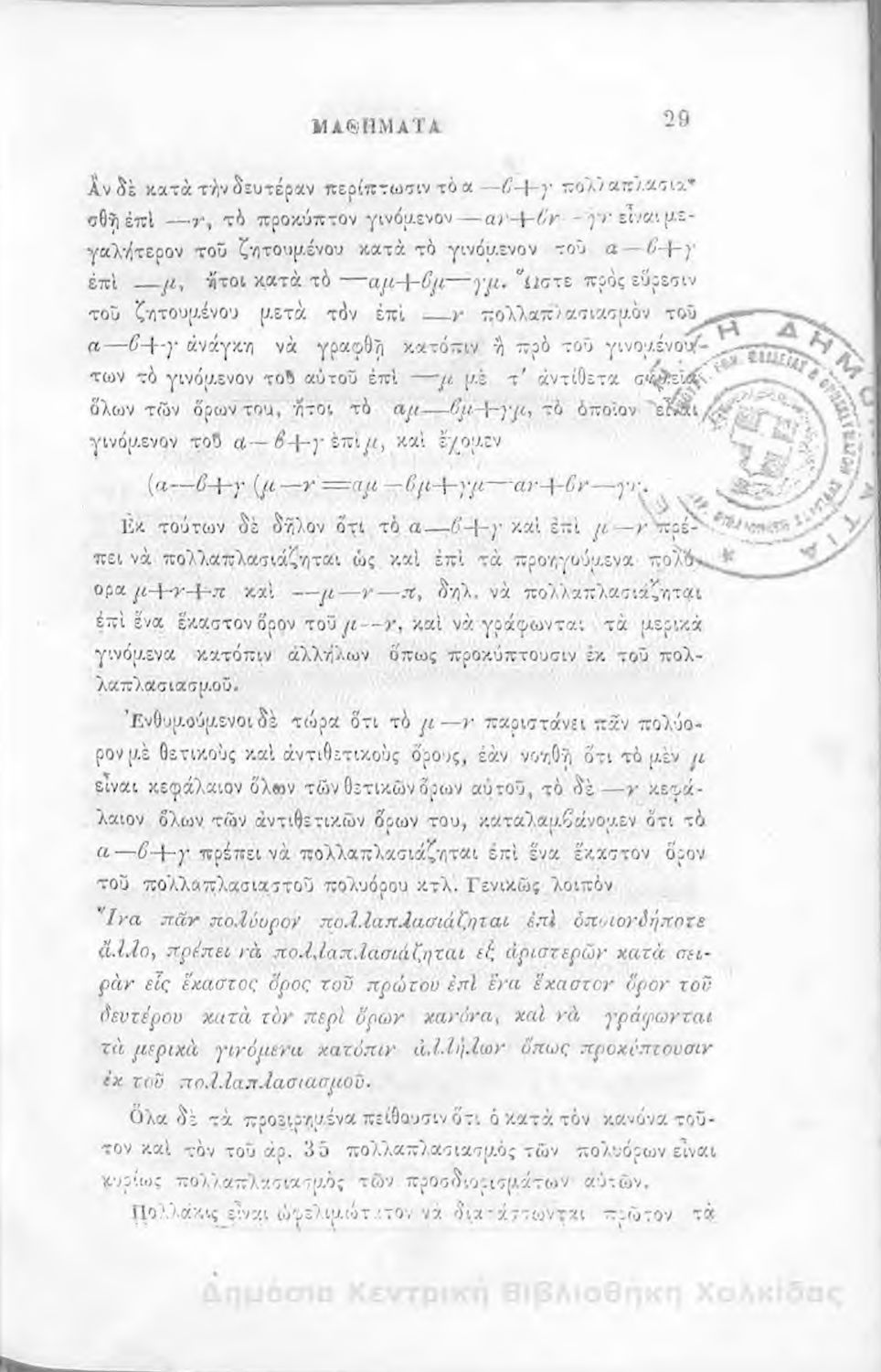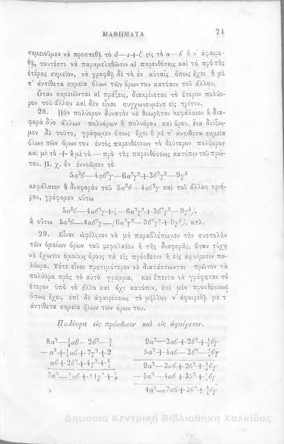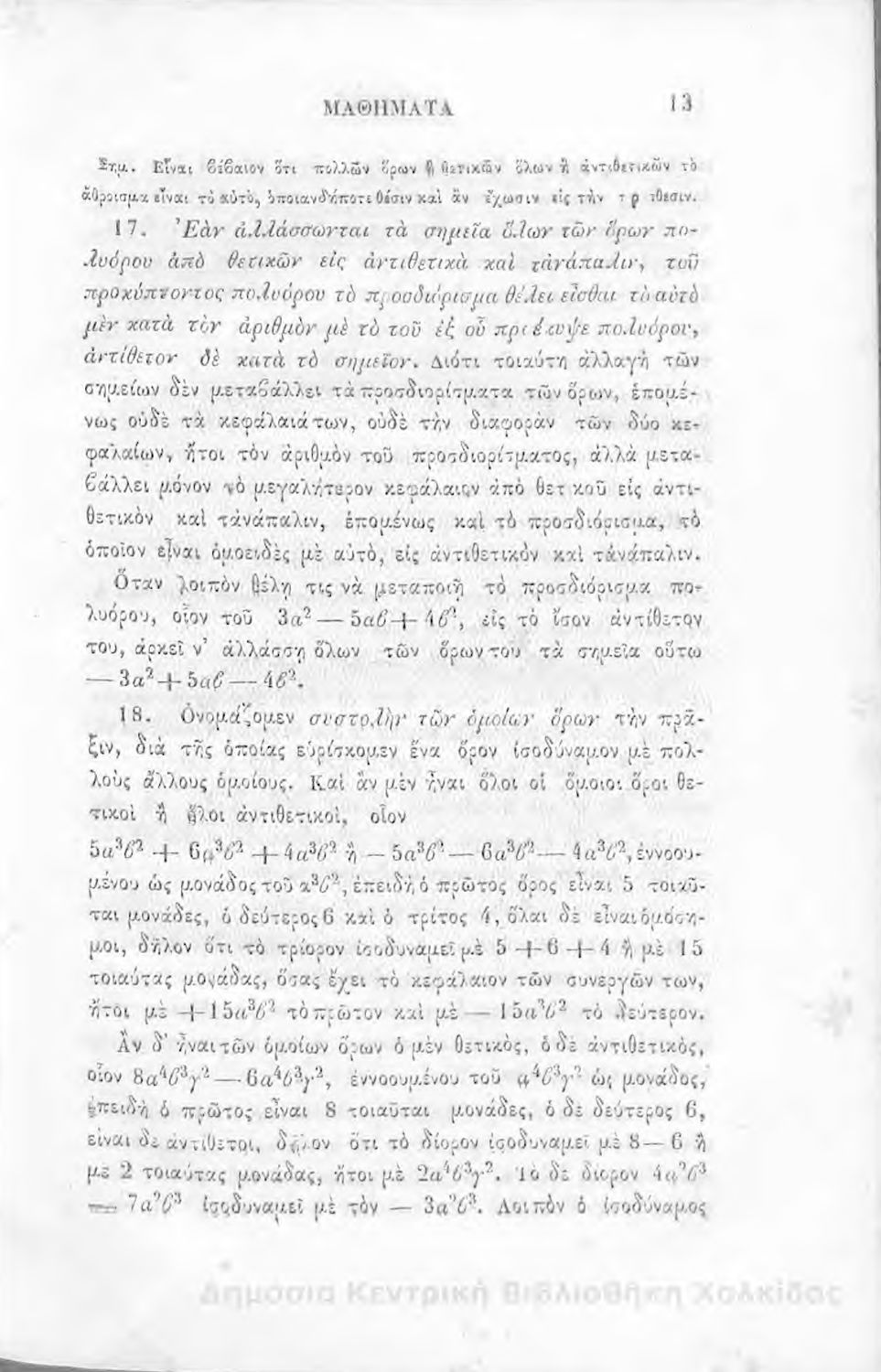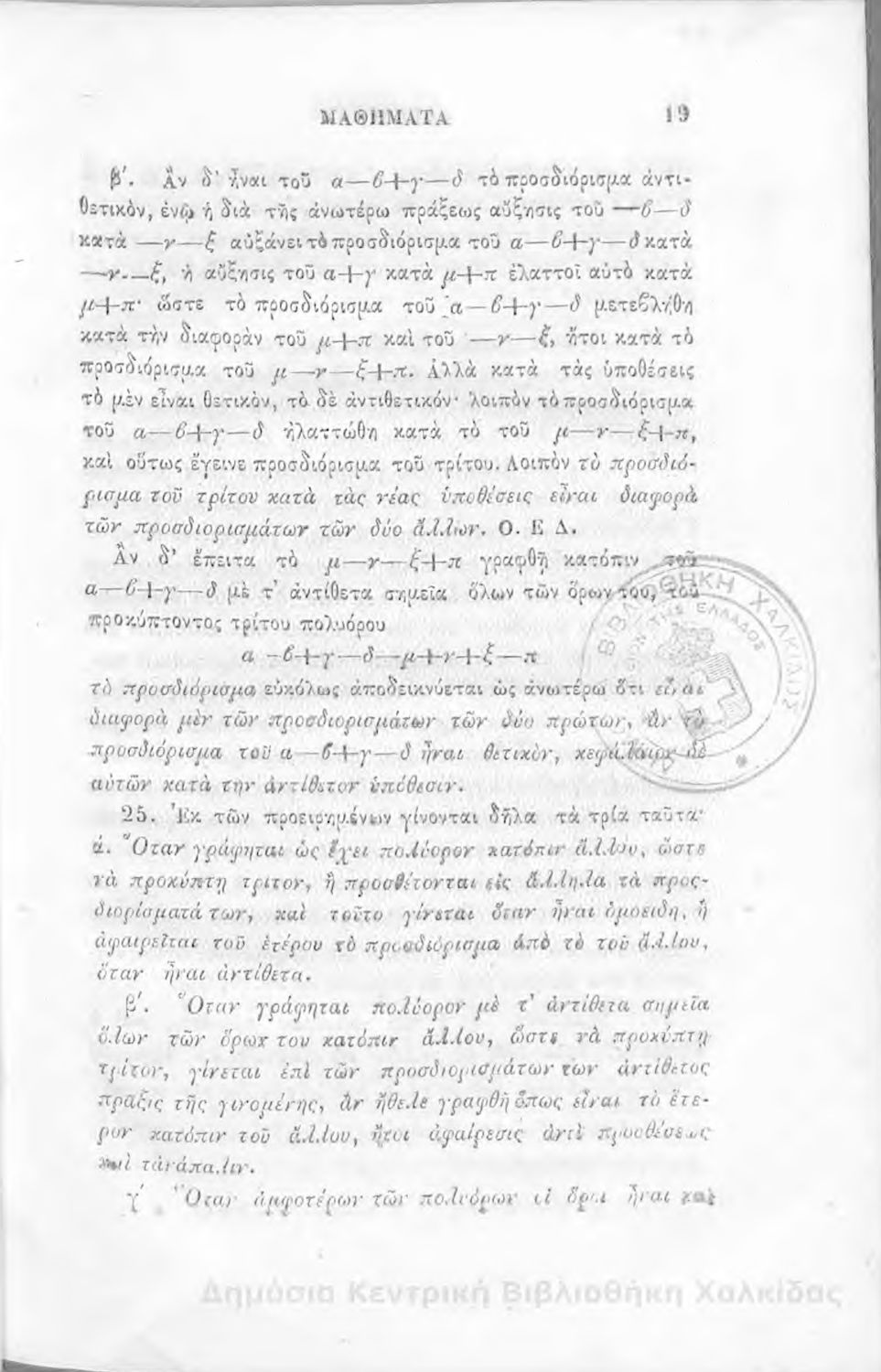 Τίτλος: Άλγεβρας μαθήματα : τα του πρώτου και του δευτέρου βαθμού. Προς χρήσιν των μαθητευόντων εν τοις γυμνασίοις της Ελλάδος